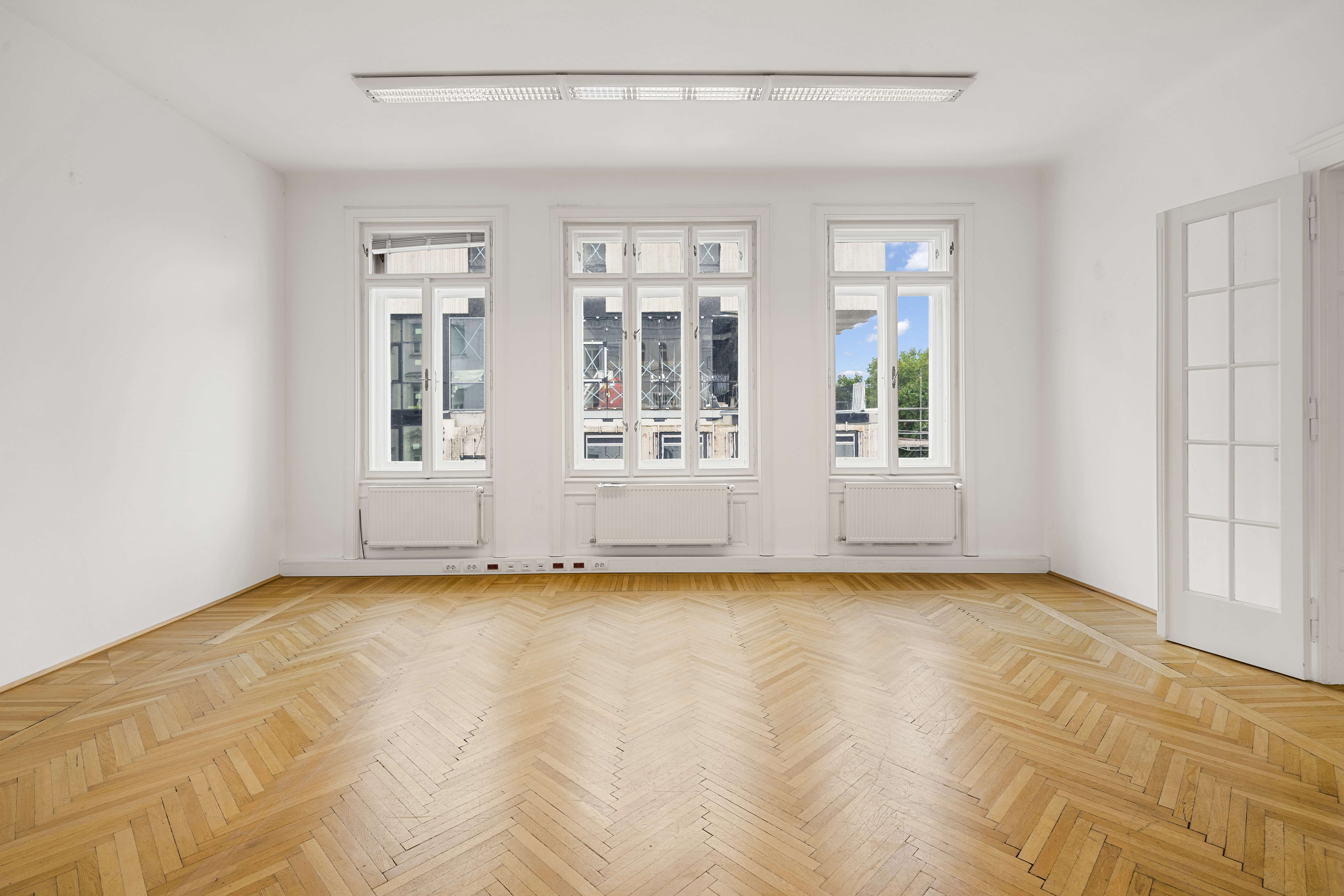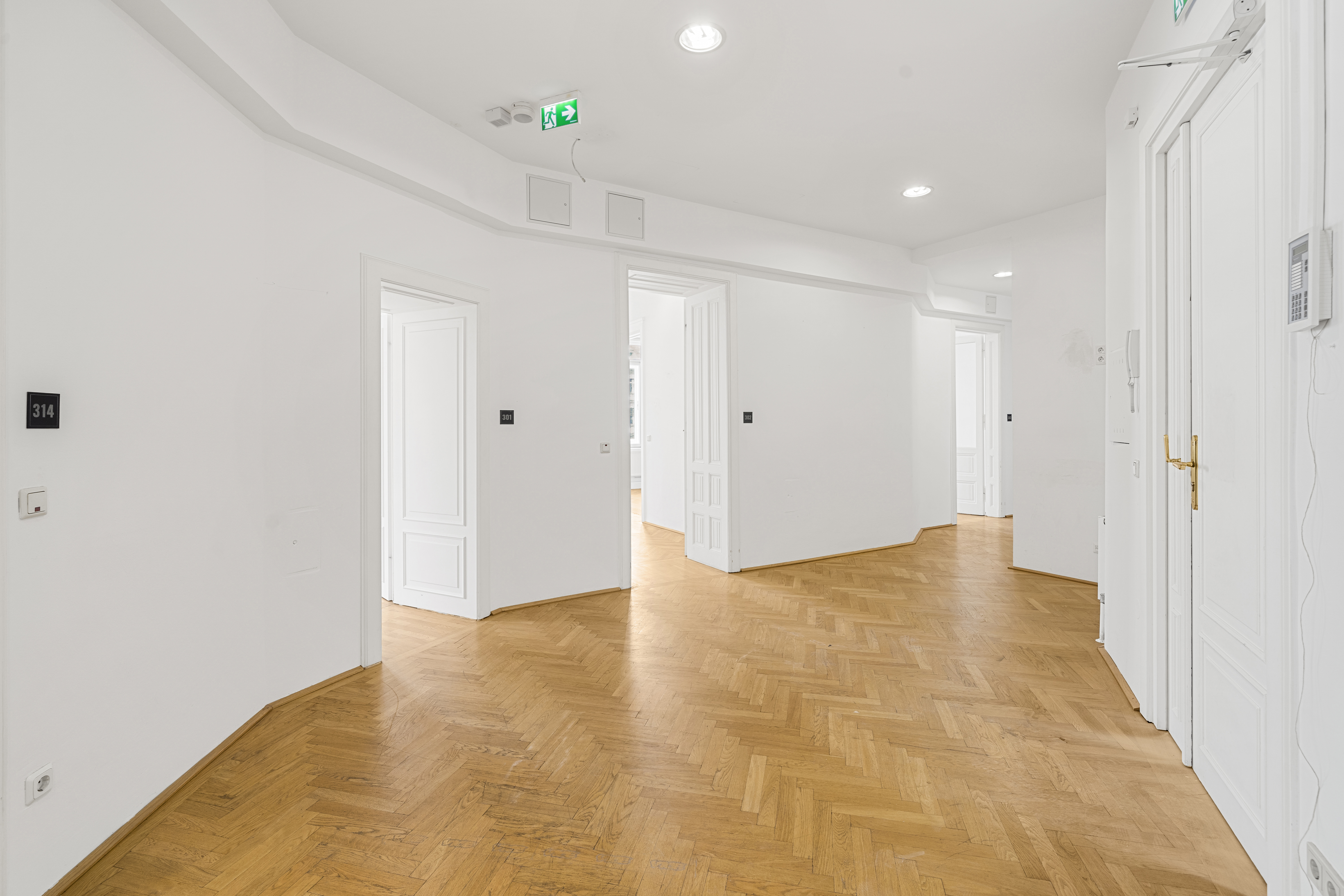 Fischgrätparkett in allen Büroräumen
