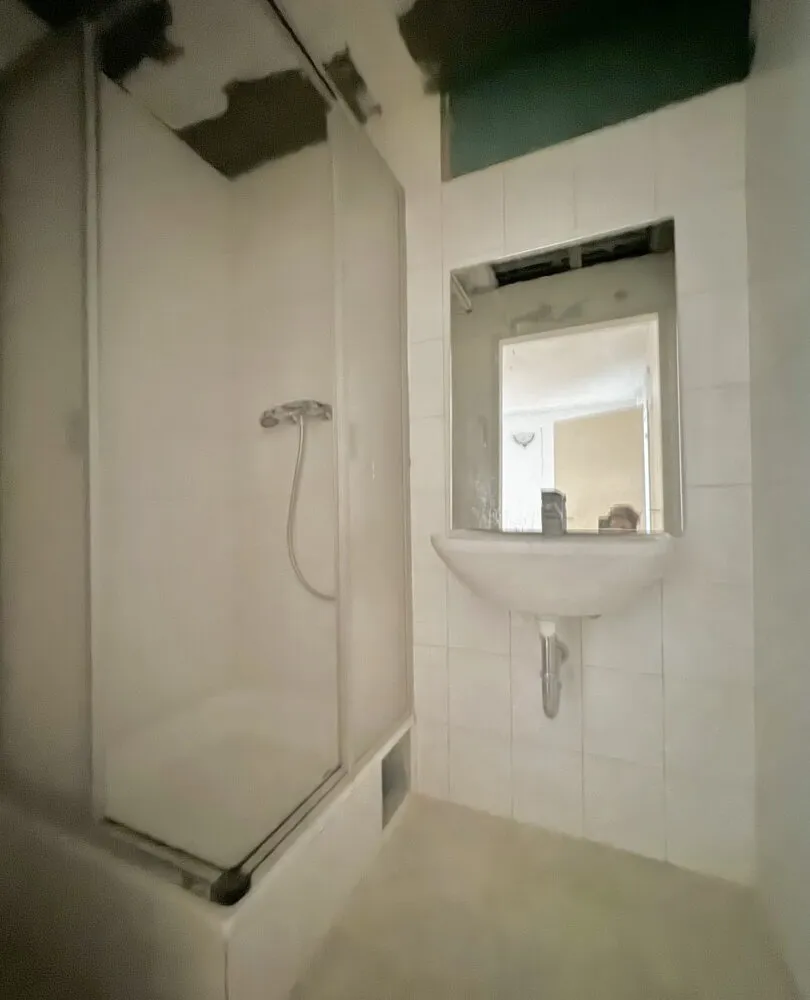 Eine kleines Bad mit Dusche und Anschlüsse für Toiletten und Küchen sind vorhanden.