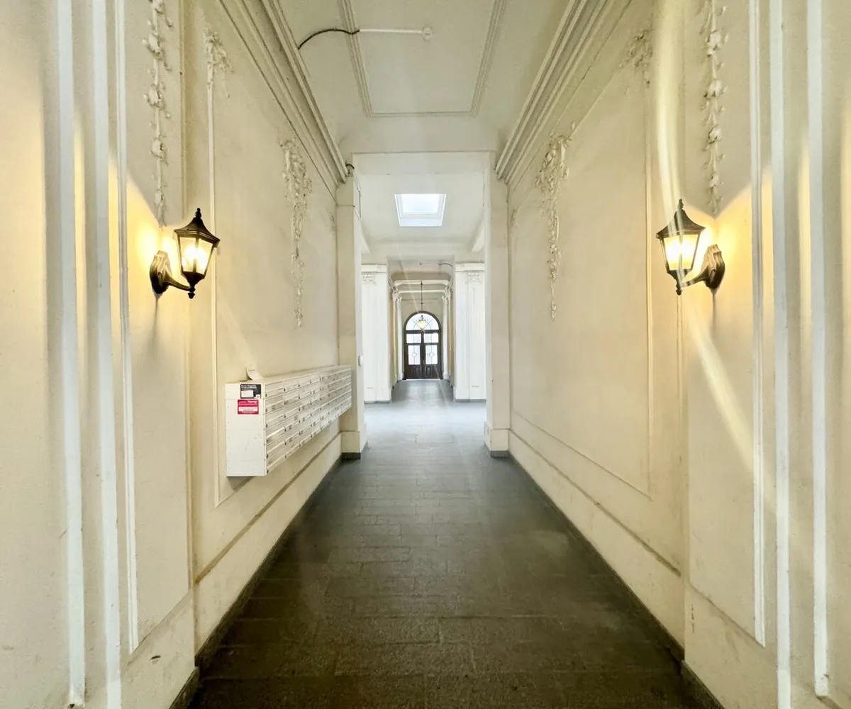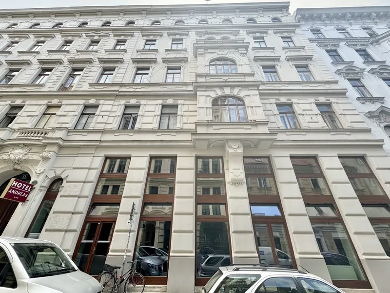 Die Räumlichkeiten im 1. Stock mit ca. 196 qm sind über das Erdgeschoß oder über das Stiegenhaus zu erreichen und sind hof- sowie straßenseitig ausgerichtet.