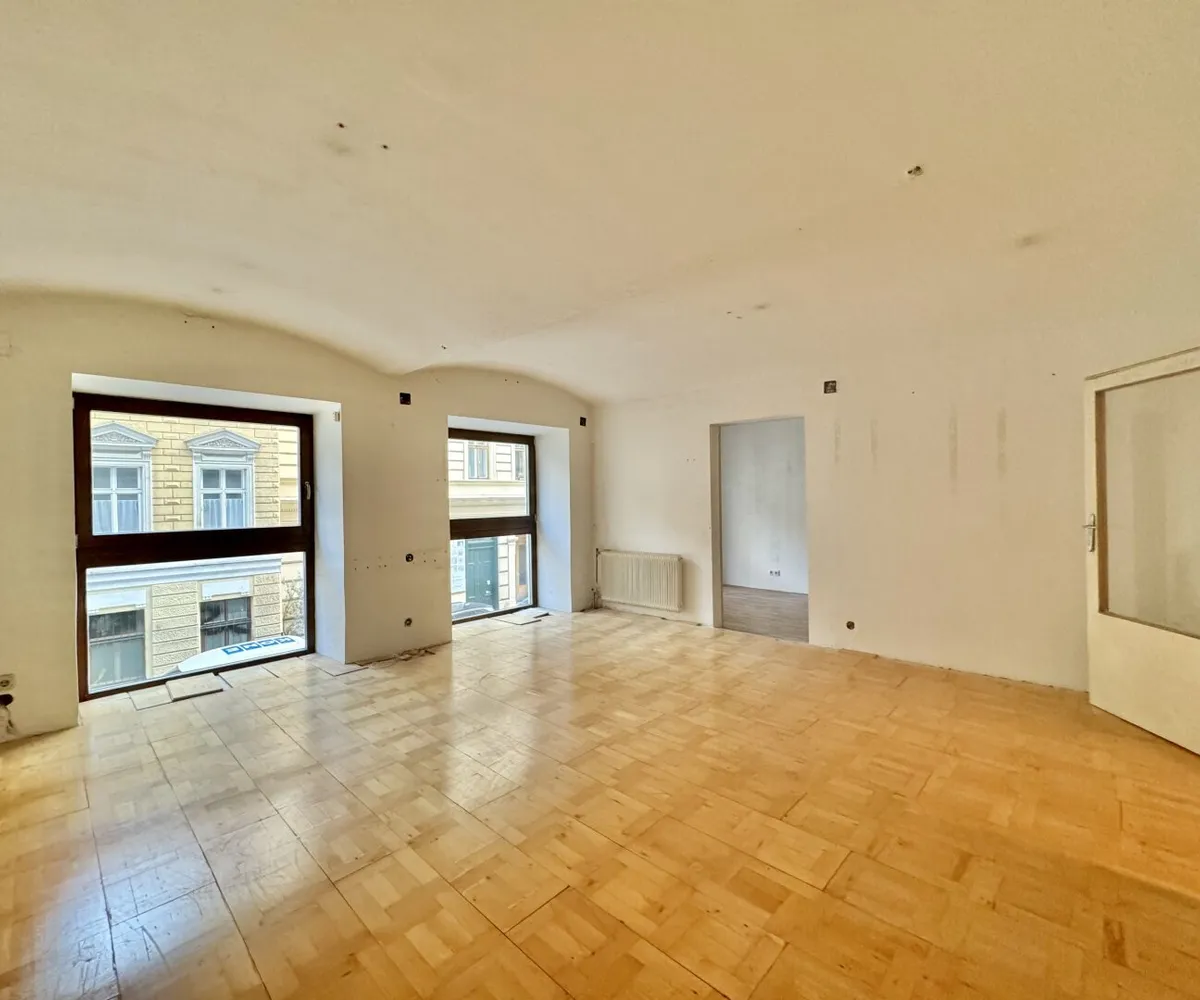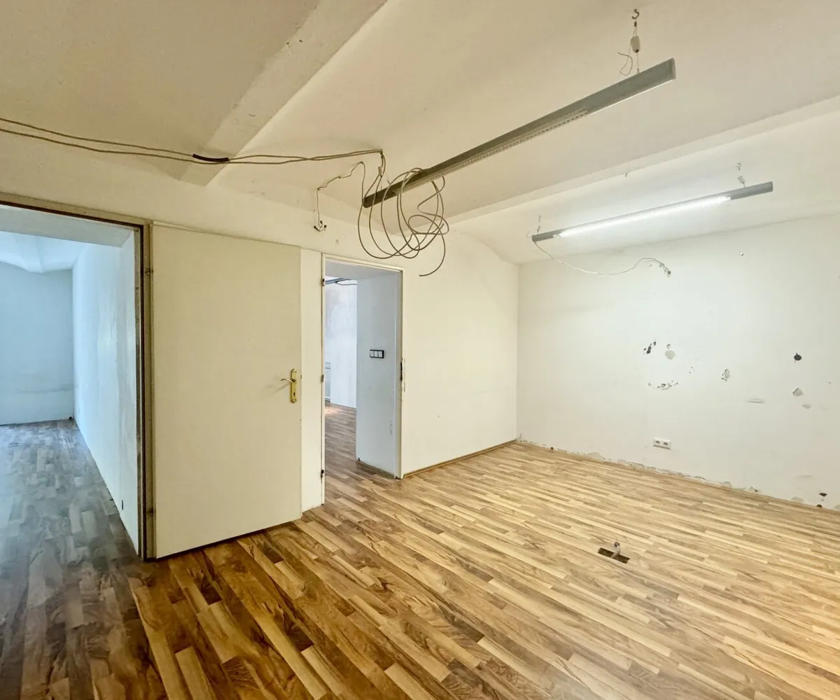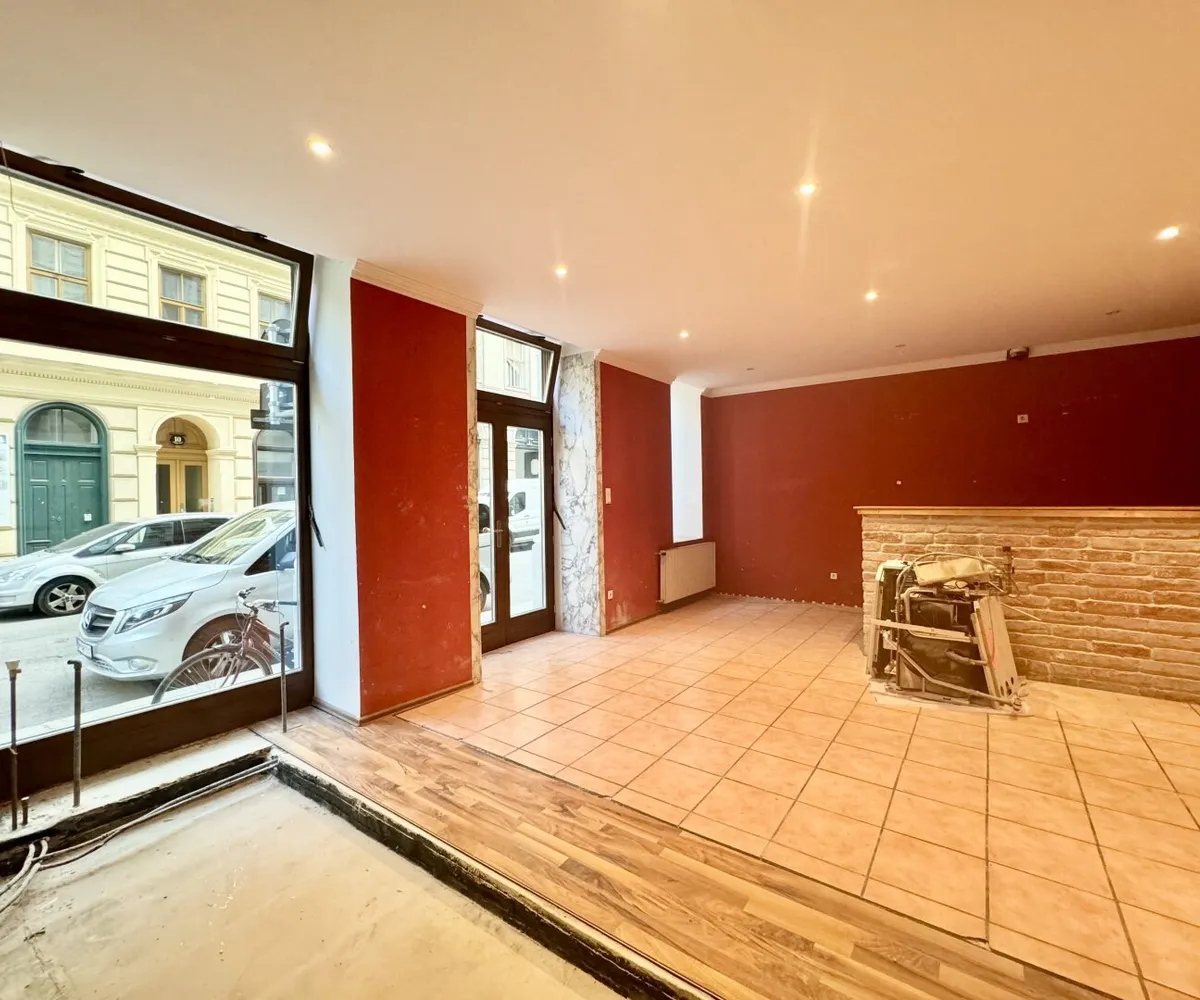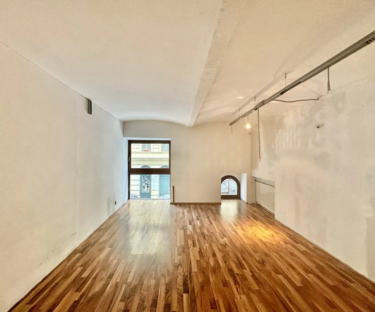 Das Erdgeschoß bietet ca. 157 qm mit großen Fensterfronten auf die Schlösselgasse und direkten Straßenzugang und Zugang zum privaten Innenhof.