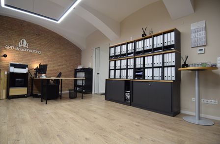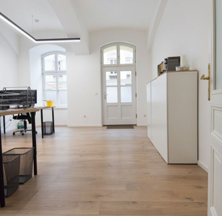 Vor wenigen Jahren saniert, bieten sich auf 120 m2 Nutzfläche 3 Büroräume, ein Besprechungszimmer mit Schiebetüren zu einem Innenhof sowie Teeküche und WC.