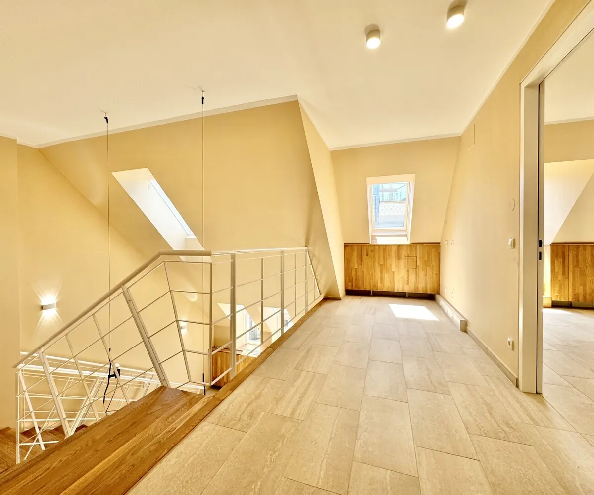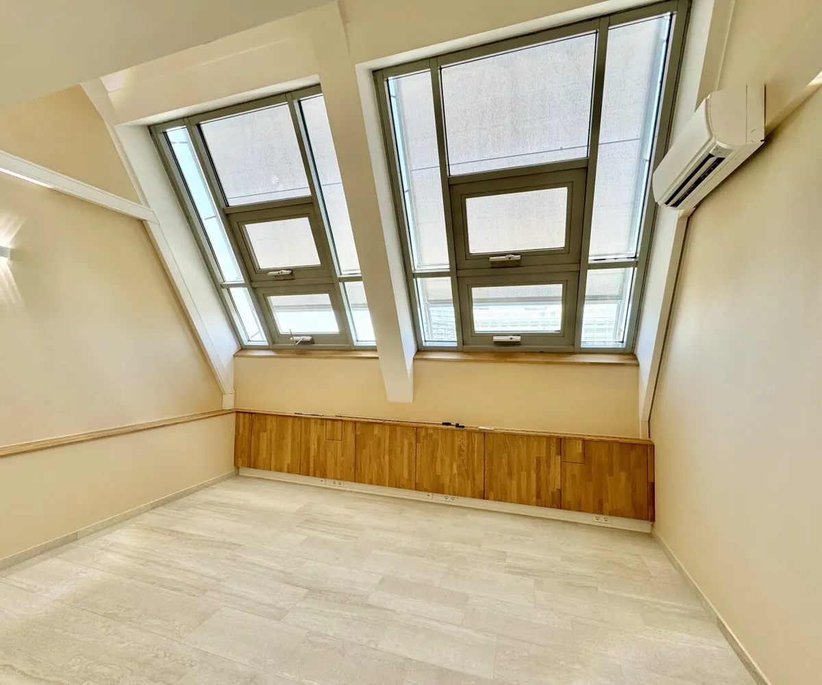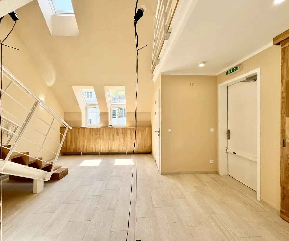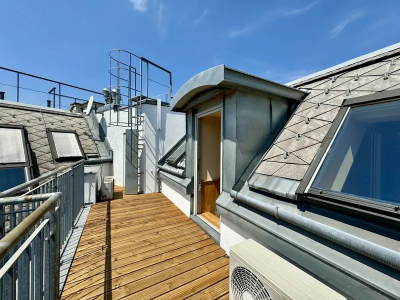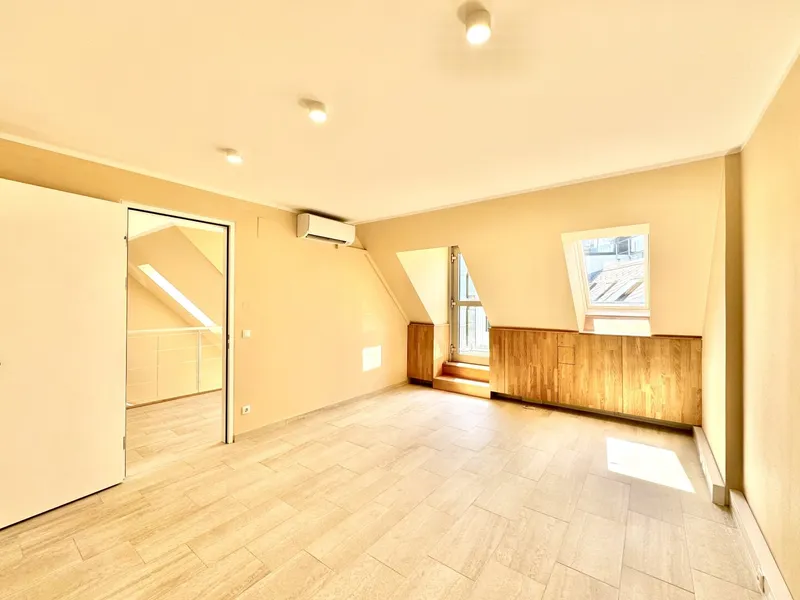 Die eben renovierte Maisonette befindet sich im ausgebauten Dachgeschoß und verfügt über rund 152 qm Bürofläche und zwei Terrassen .