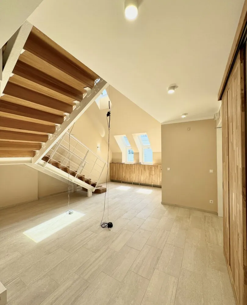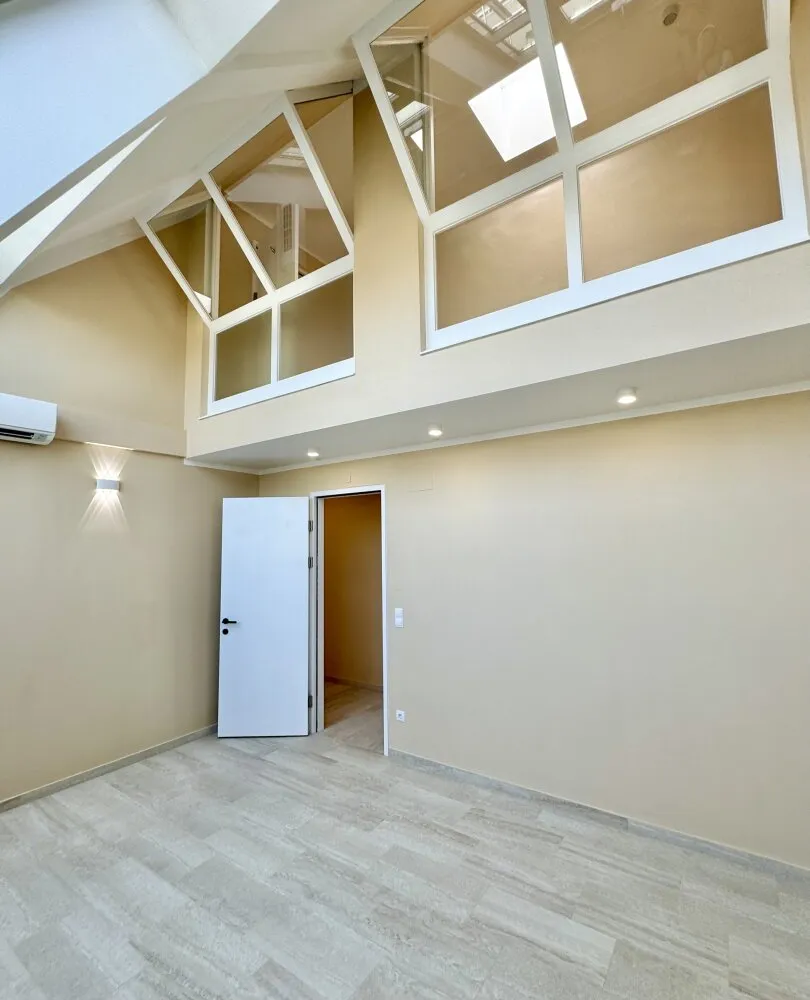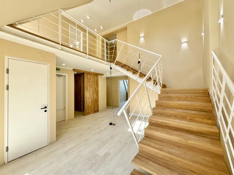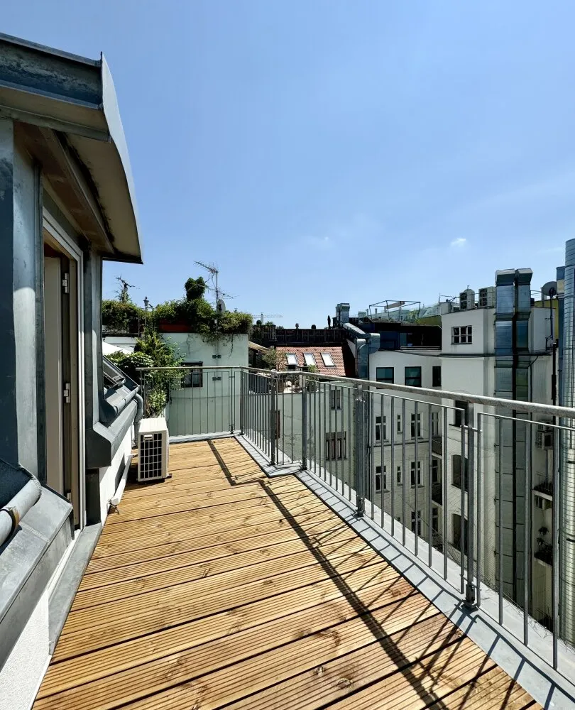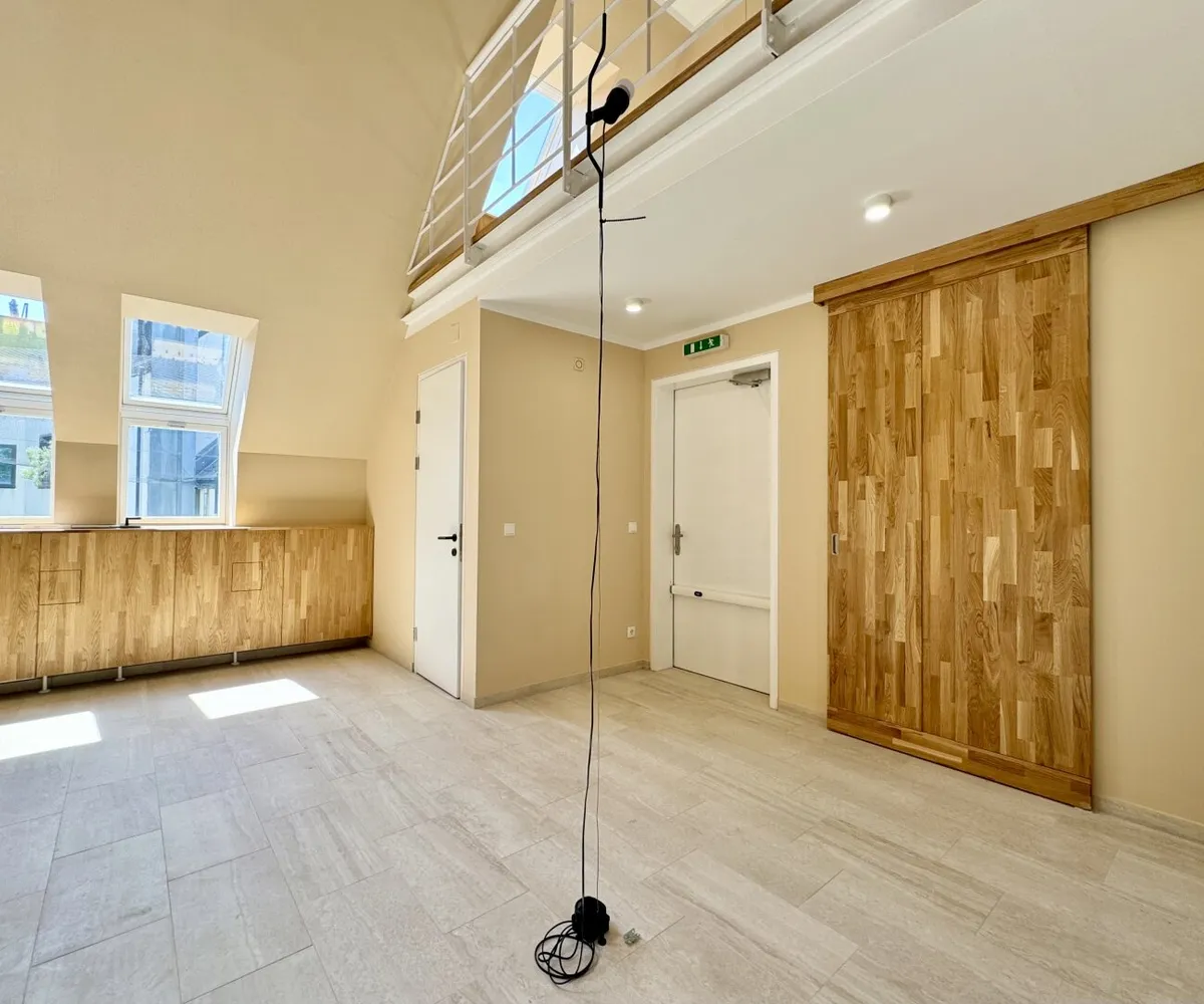 Die eben renovierte Maisonette befindet sich im ausgebauten Dachgeschoß und verfügt über rund 152 qm Bürofläche und zwei Terrassen .