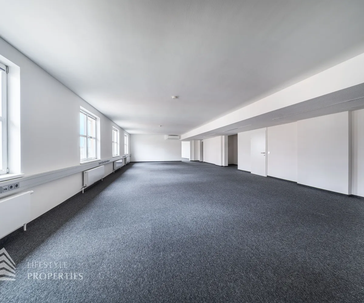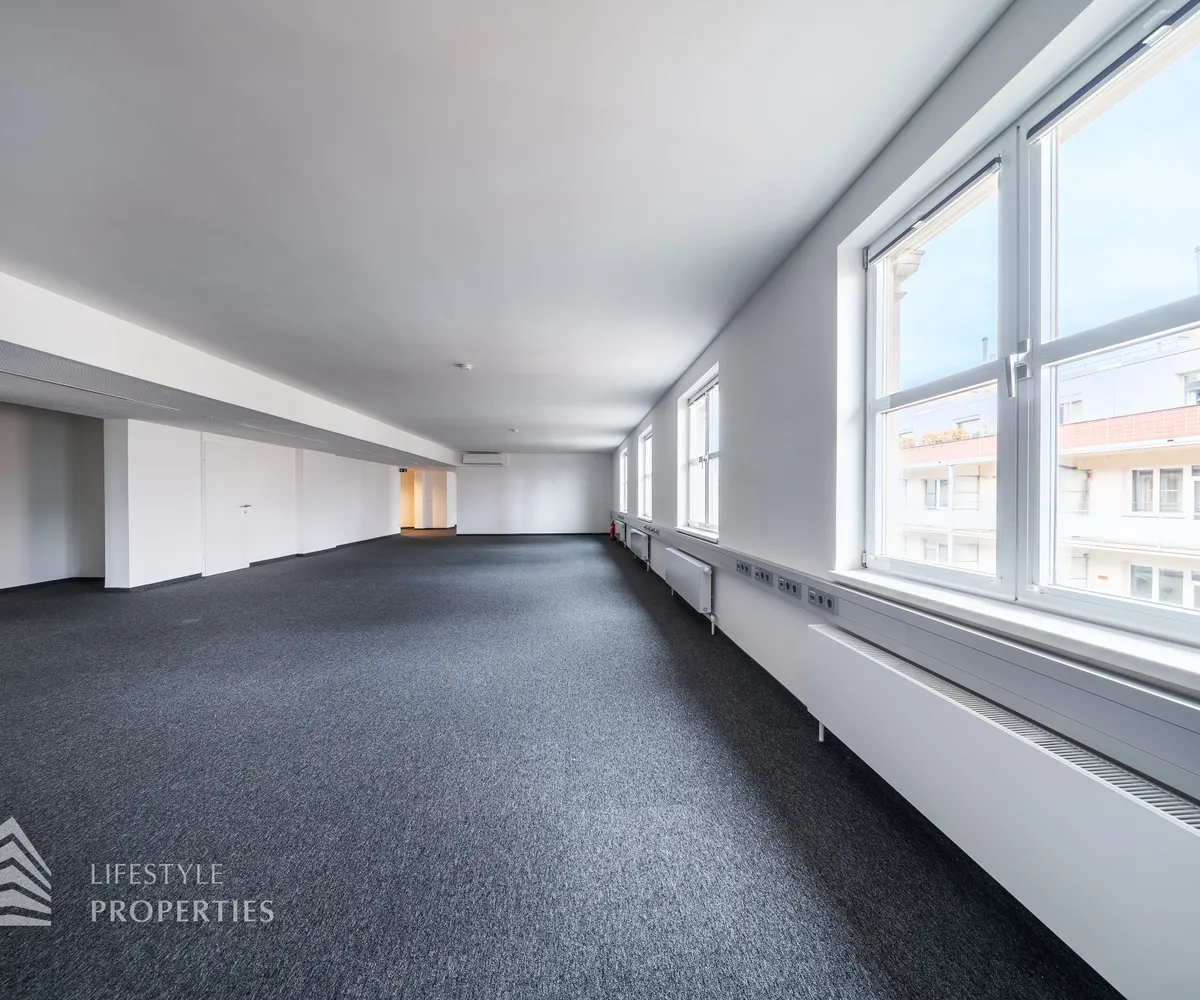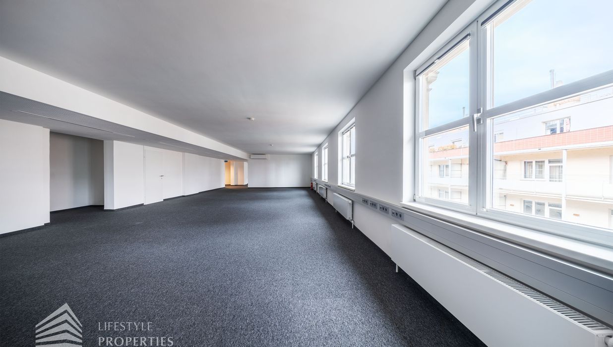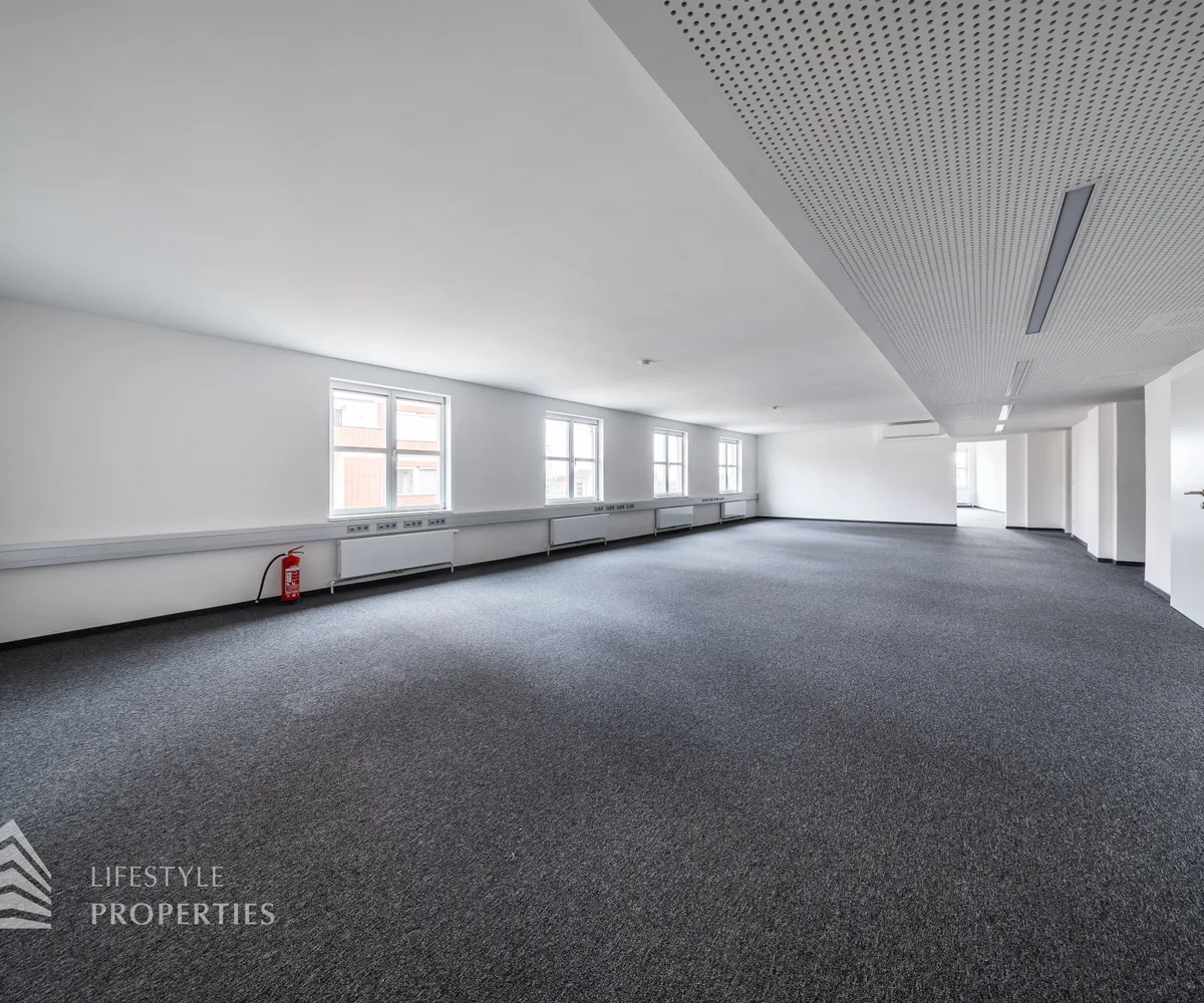 Das Büro verfügt über eine Nutzfläche von ca. 229 m² und befindet sich im 5. OG eines im Jahre 1897 erbauten Altbauhauses, welches sich in einem sanierten Zustand befindet.