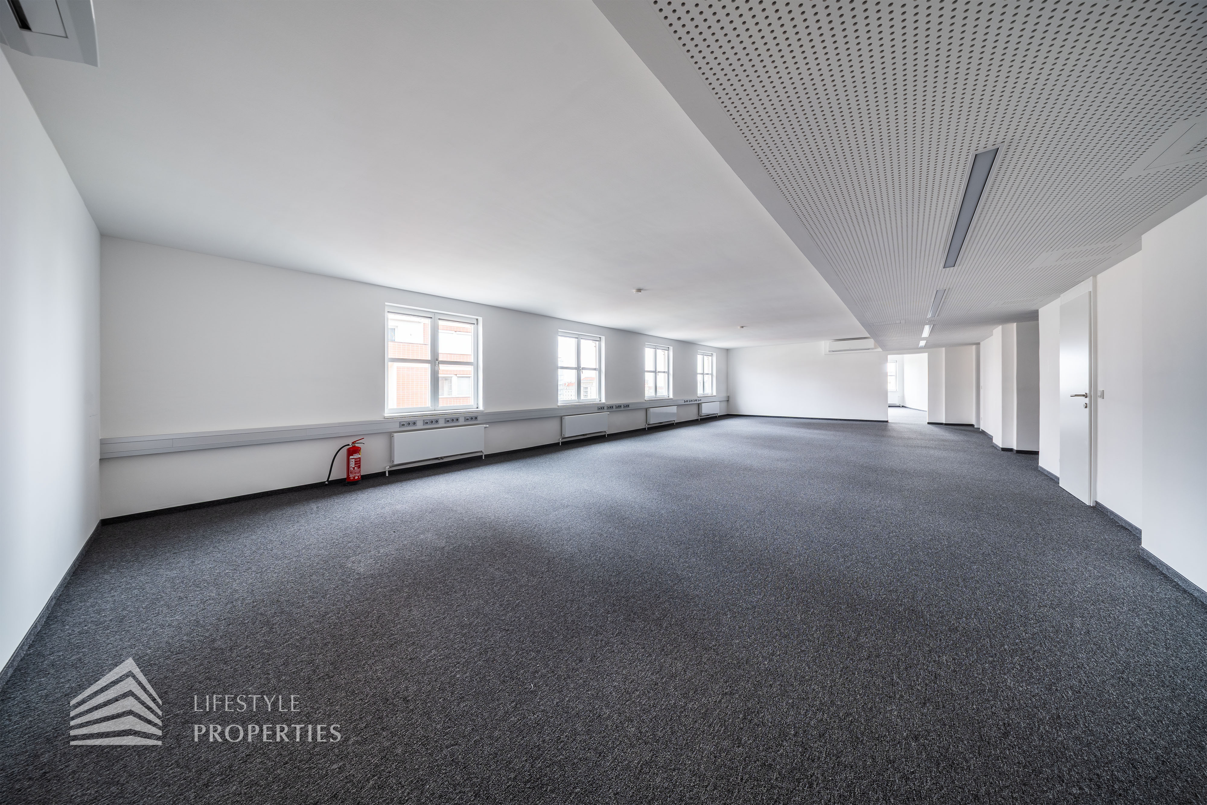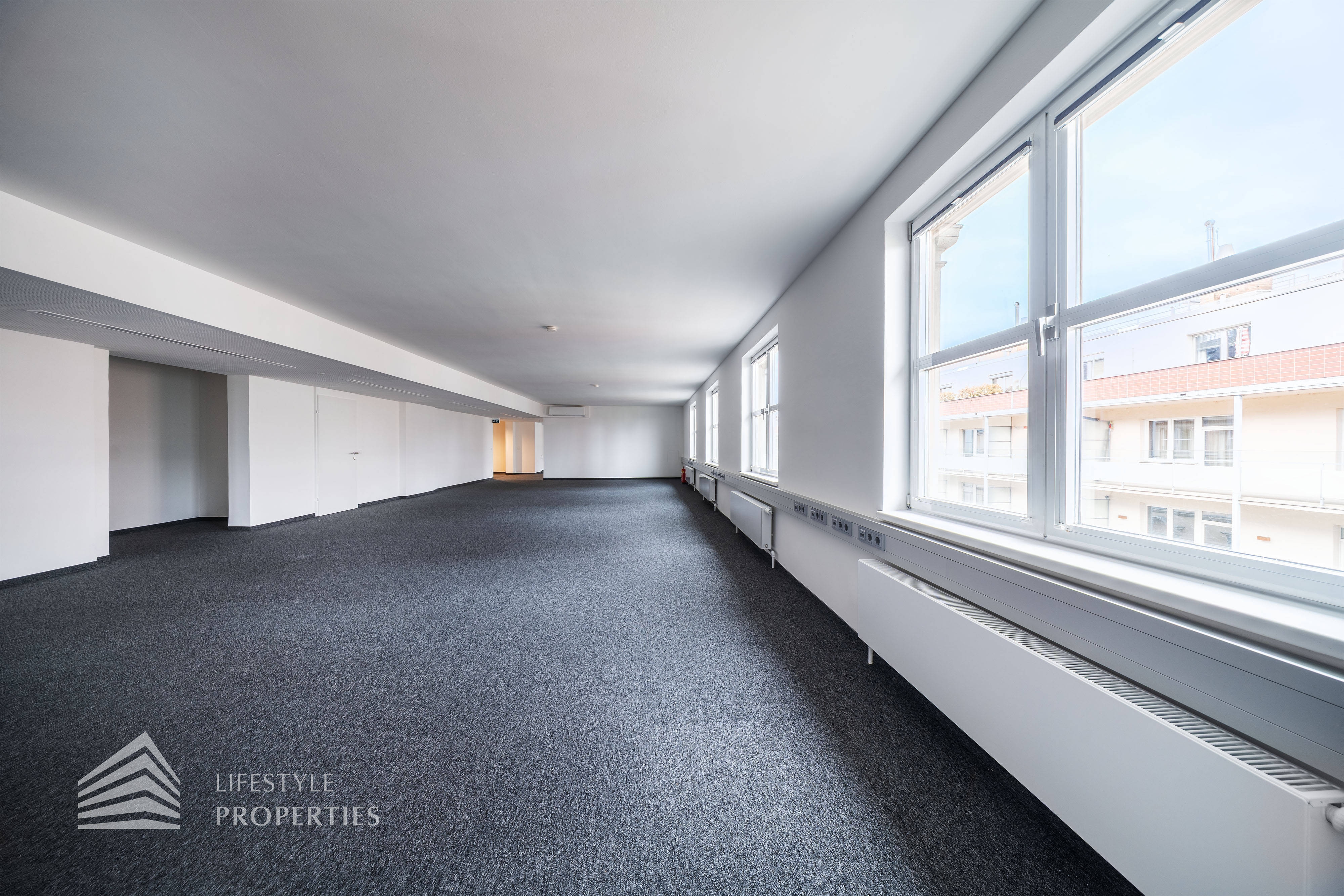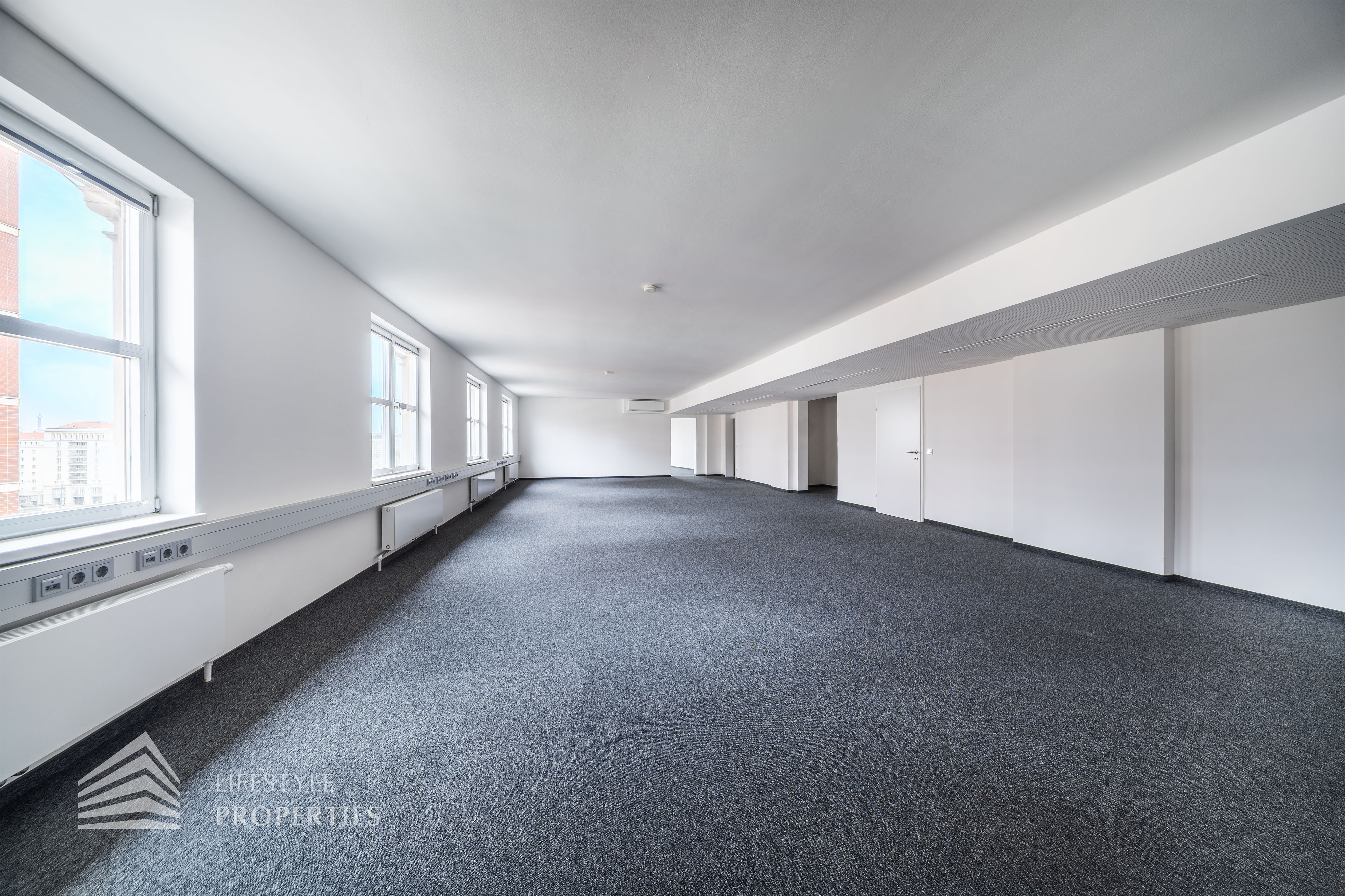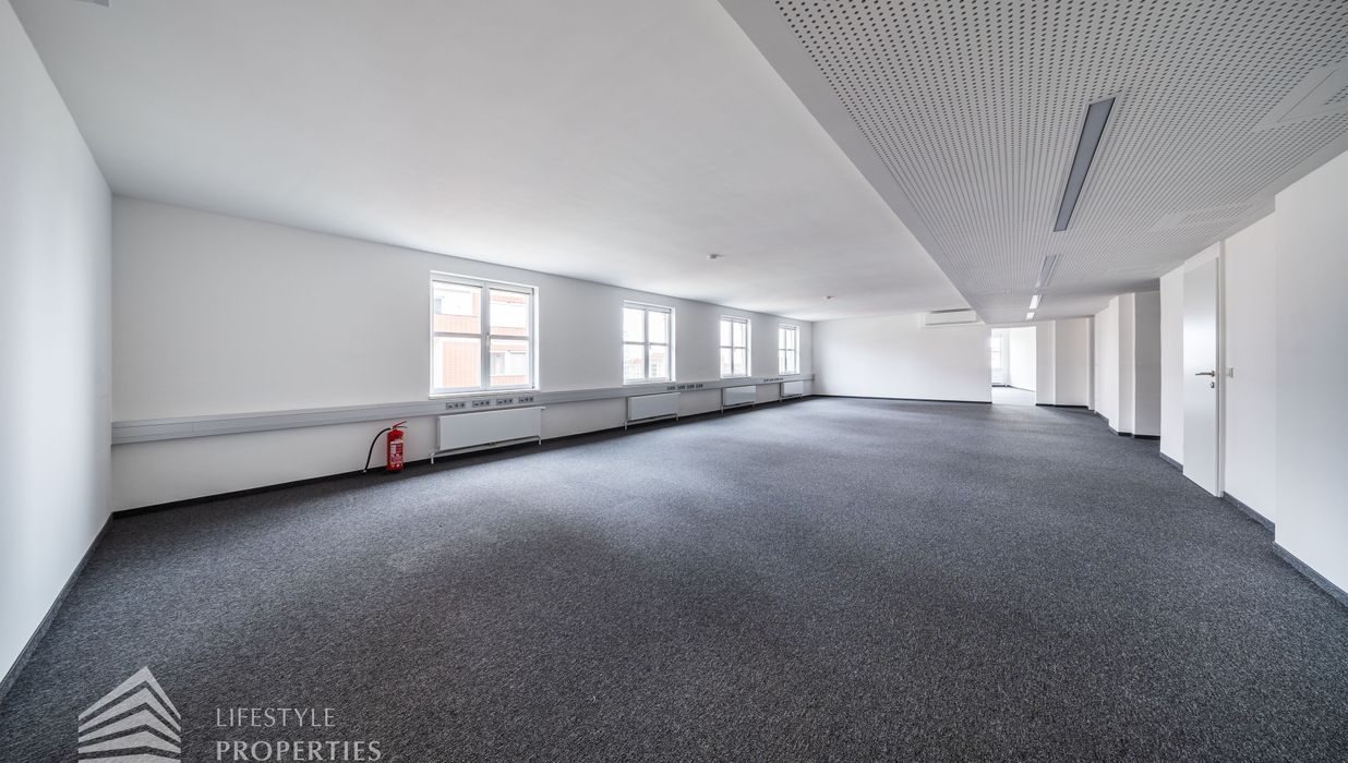 Das Büro verfügt über eine Nutzfläche von ca. 229 m² und befindet sich im 5. OG eines im Jahre 1897 erbauten Altbauhauses, welches sich in einem sanierten Zustand befindet.