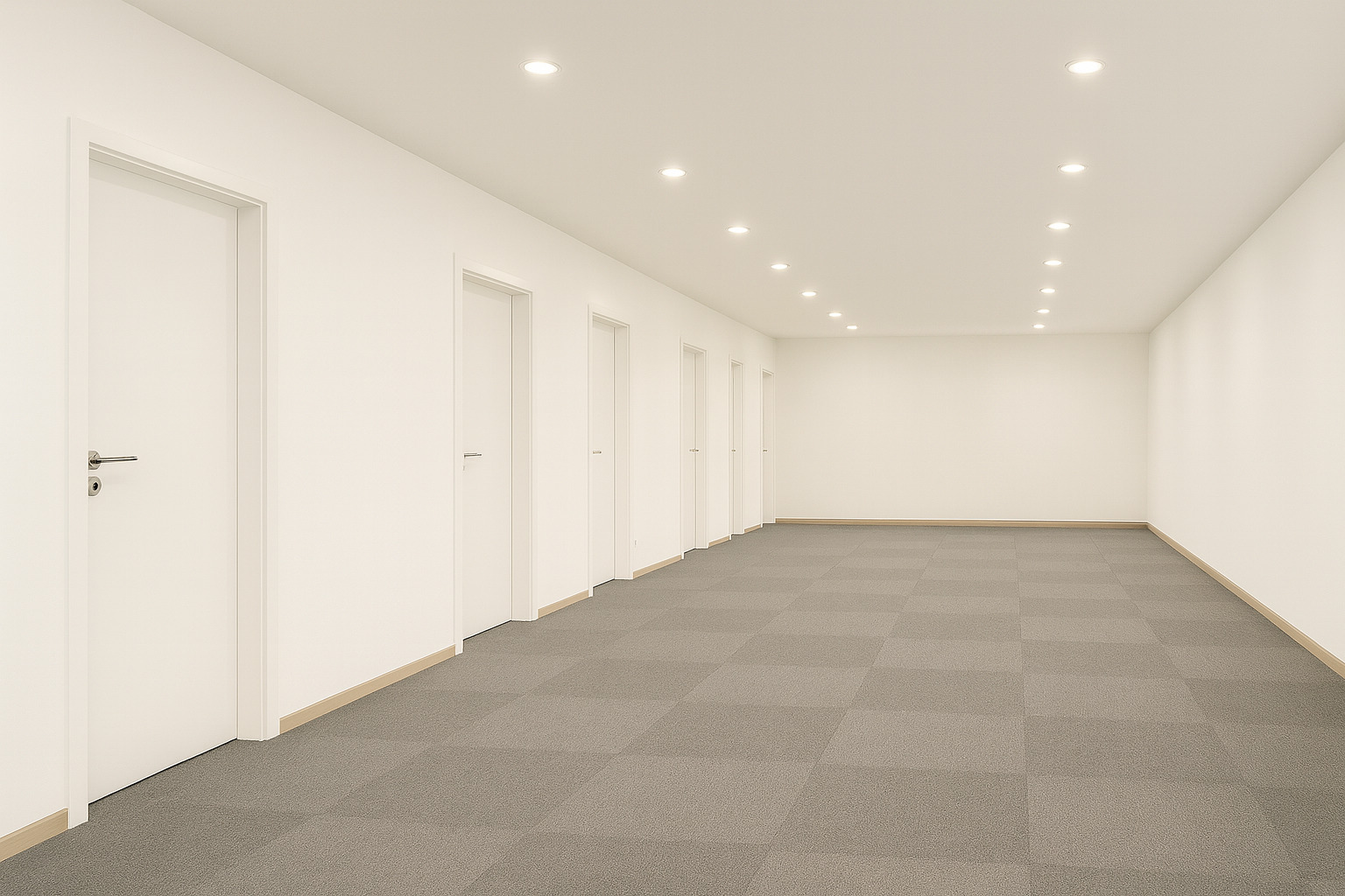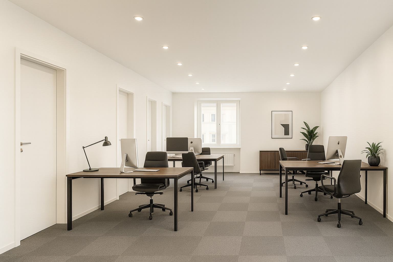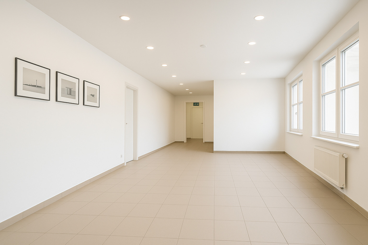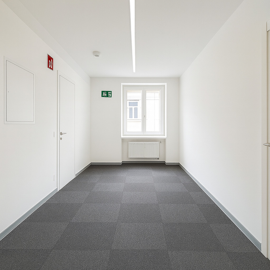 Beim Betreten des Büros steht man direkt im ca. 21 m² großen Vorraum, dieser mit dem angrenzenden Büro geteilt ist. Beim Eingang befindet sich der ca. 18 m² große Empfang. Durch einen ca. 33 m² langen Gang gelangt man zu den einzelnen Büroräumen. Auf der linken Seite des Ganges befindet sich ein Serverraum, ein Sozialraum mit einer Teeküche, die Toiletten für die Damen und Herren, ein Badezimmer, ein Kopierraum und ein Abstellraum. Die Fläche des Heizraumes wird auf vier Einheiten aufgeteilt.