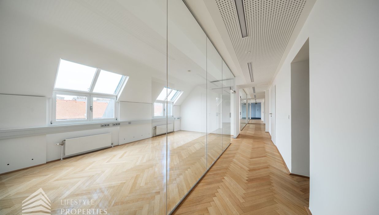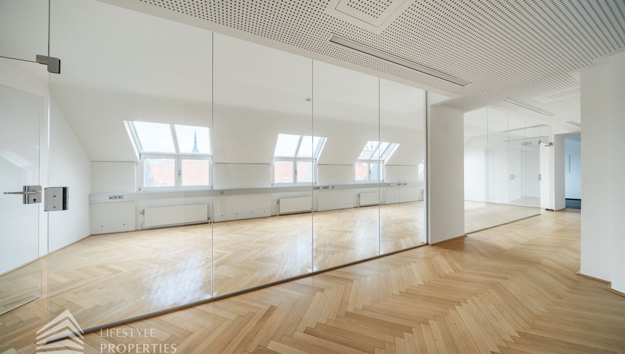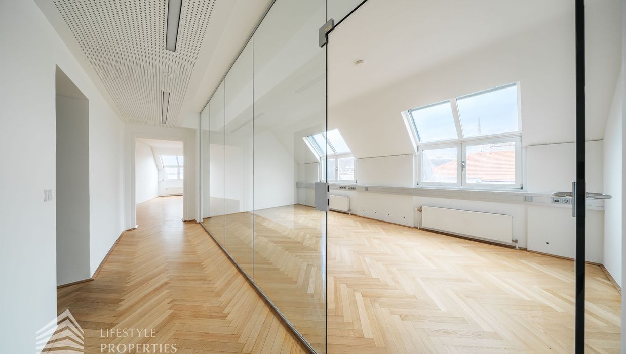 Zur Vermietung gelangt ein beeindruckendes 6-Zimmer Büro im ersten Bezirk, in der Nähe vom Schwedenplatz.