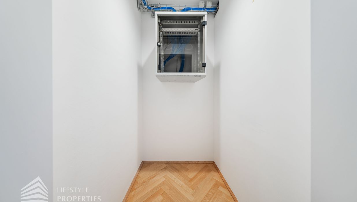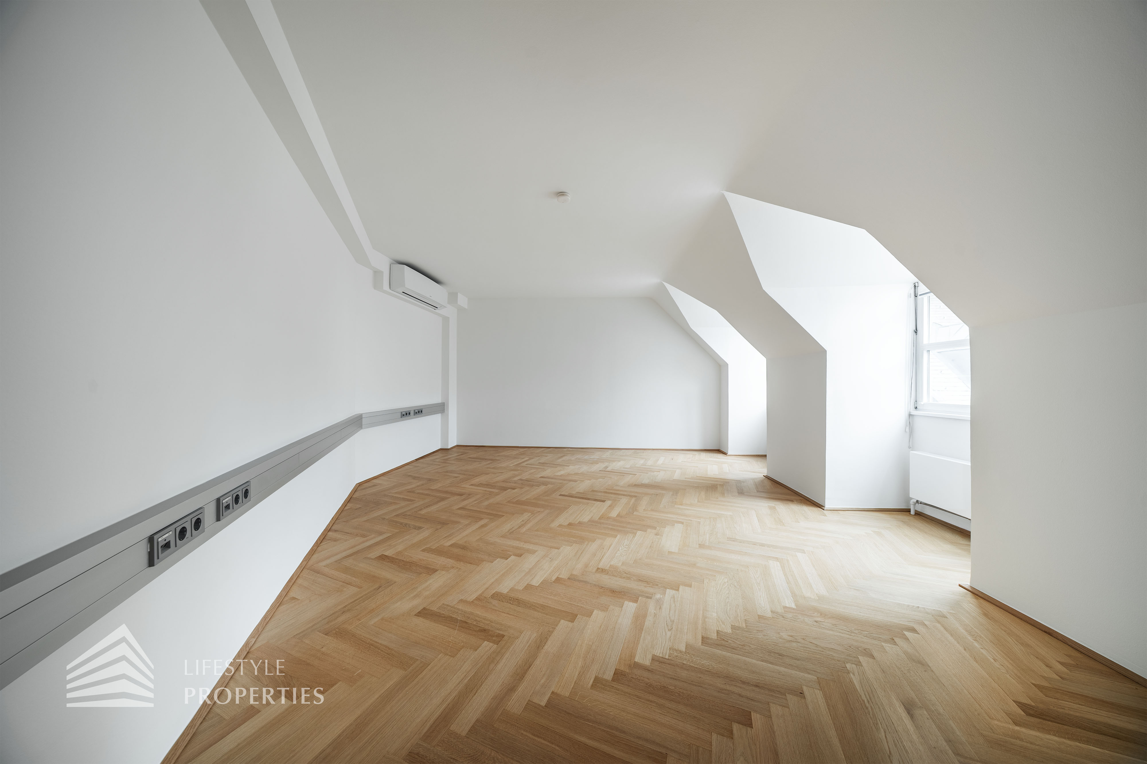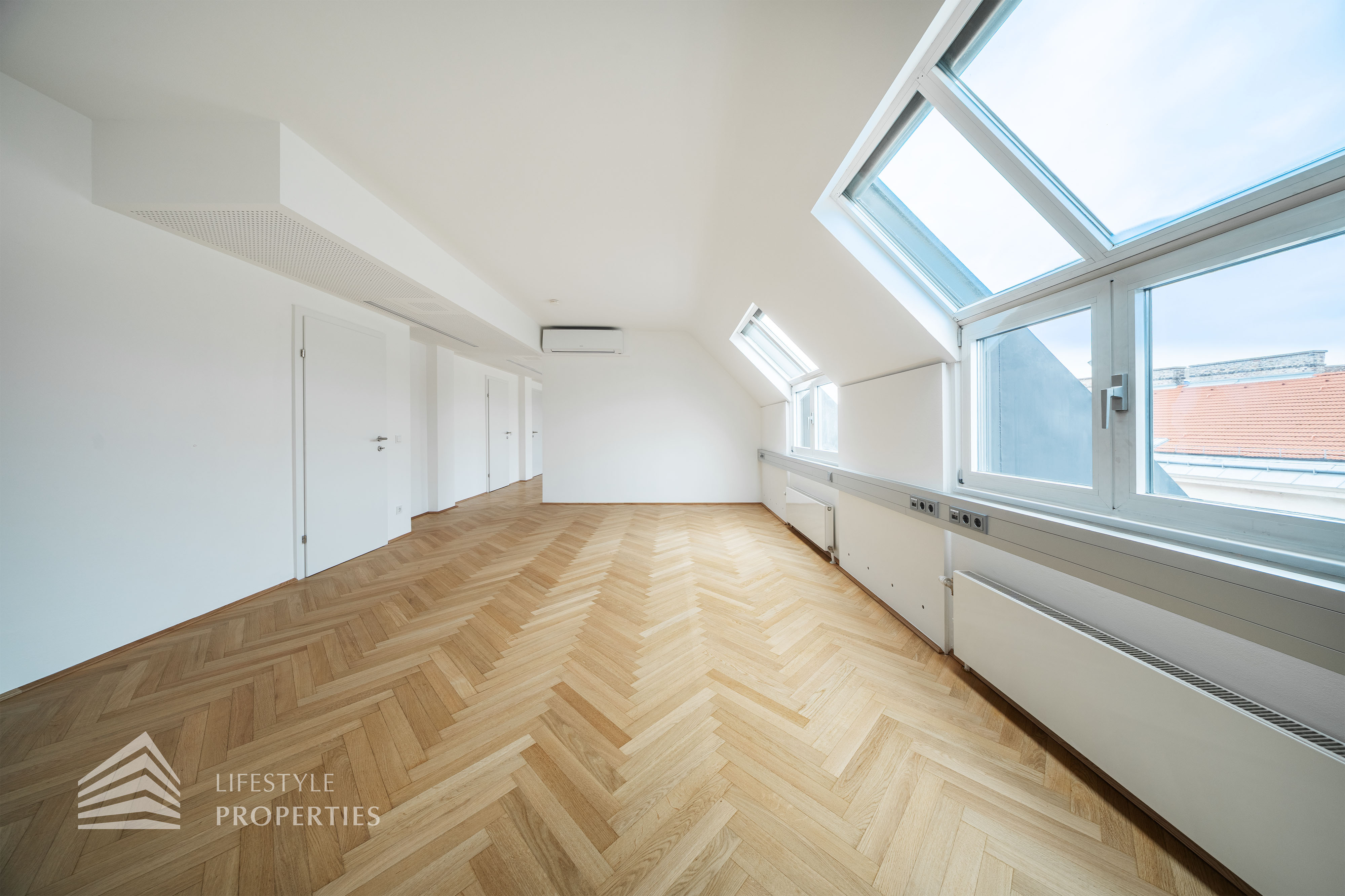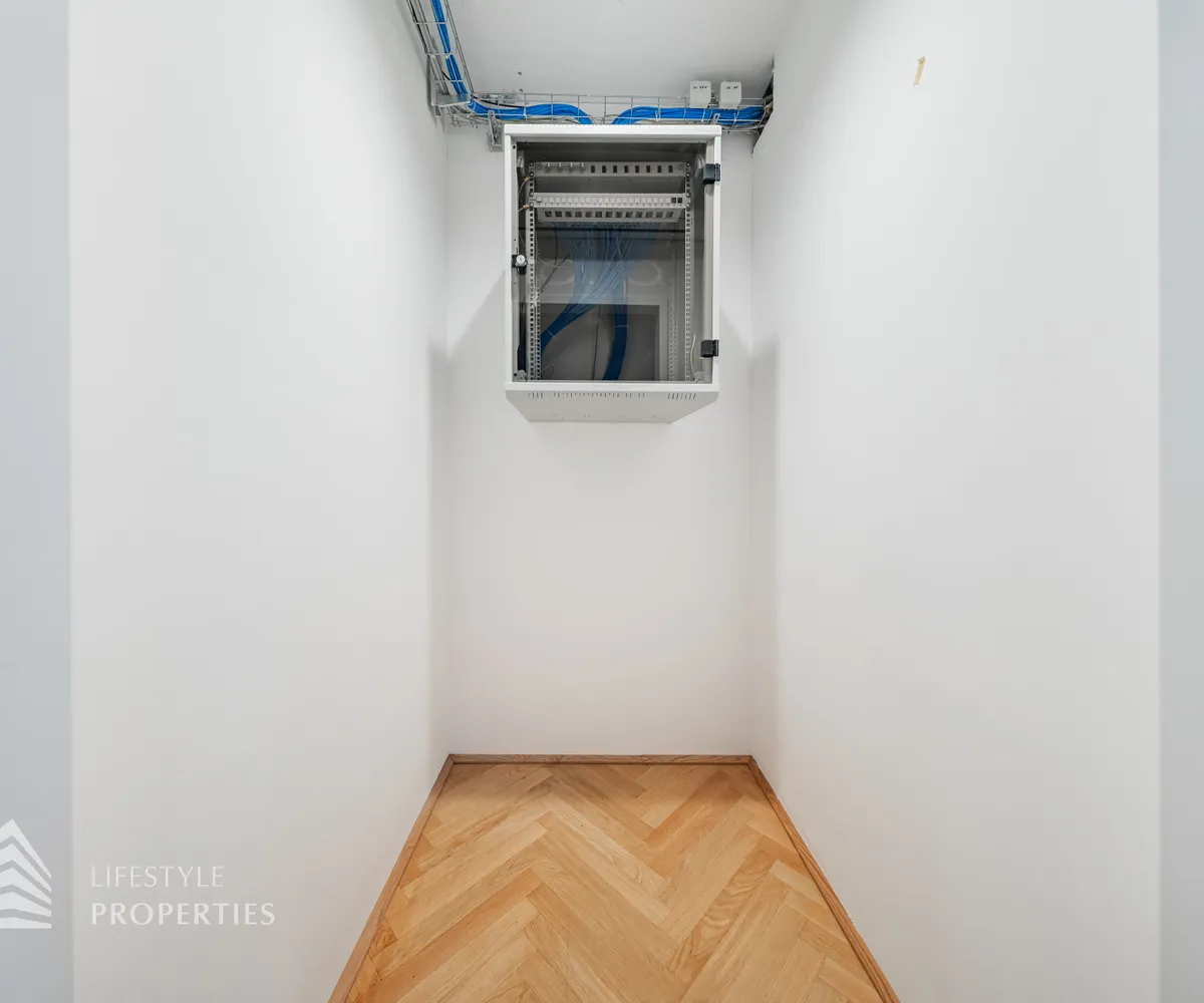 Beim Betreten des Büros steht man direkt im ca. 21 m² großen Vorraum, dieser mit dem angrenzenden Büro geteilt ist. Beim Eingang befindet sich der ca. 15 m² große Empfang. Durch einen ca. 12 m² langen Gang gelangt man zu den einzelnen Büroräumen. Auf der linken Seite des Ganges befindet sich ein Sozialraum mit einer Teeküche sowie auf der rechten Seite die Toiletten für die Damen und Herren und einen Serverraum. Die Fläche des Heizraumes wird auf vier Einheiten aufgeteilt.