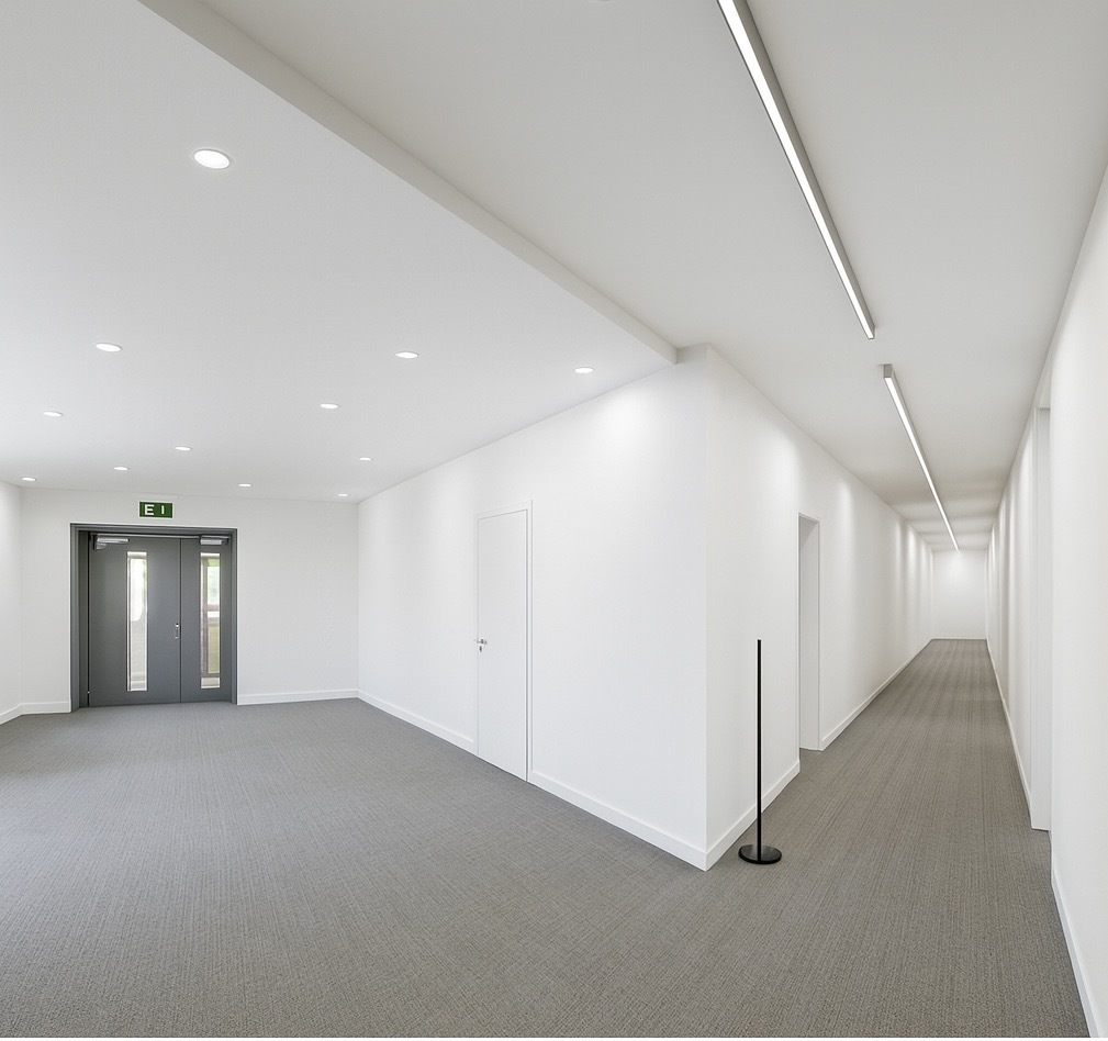 Beim Eingang befindet sich der ca. 13 m² große Empfang und ein Abstellraum. Durch einen ca. 14 m² langen Gang gelangt man zu den einzelnen Büroräumen. Am Ende des Ganges befindet sich ein Sozialraum mit einer Teeküche, die Toiletten für die Damen und Herren und ein Serverraum. Beim Empfang befindet sich zusätzlich ein Abstellraum. Die Fläche des Heizraumes wird auf vier Einheiten aufgeteilt.