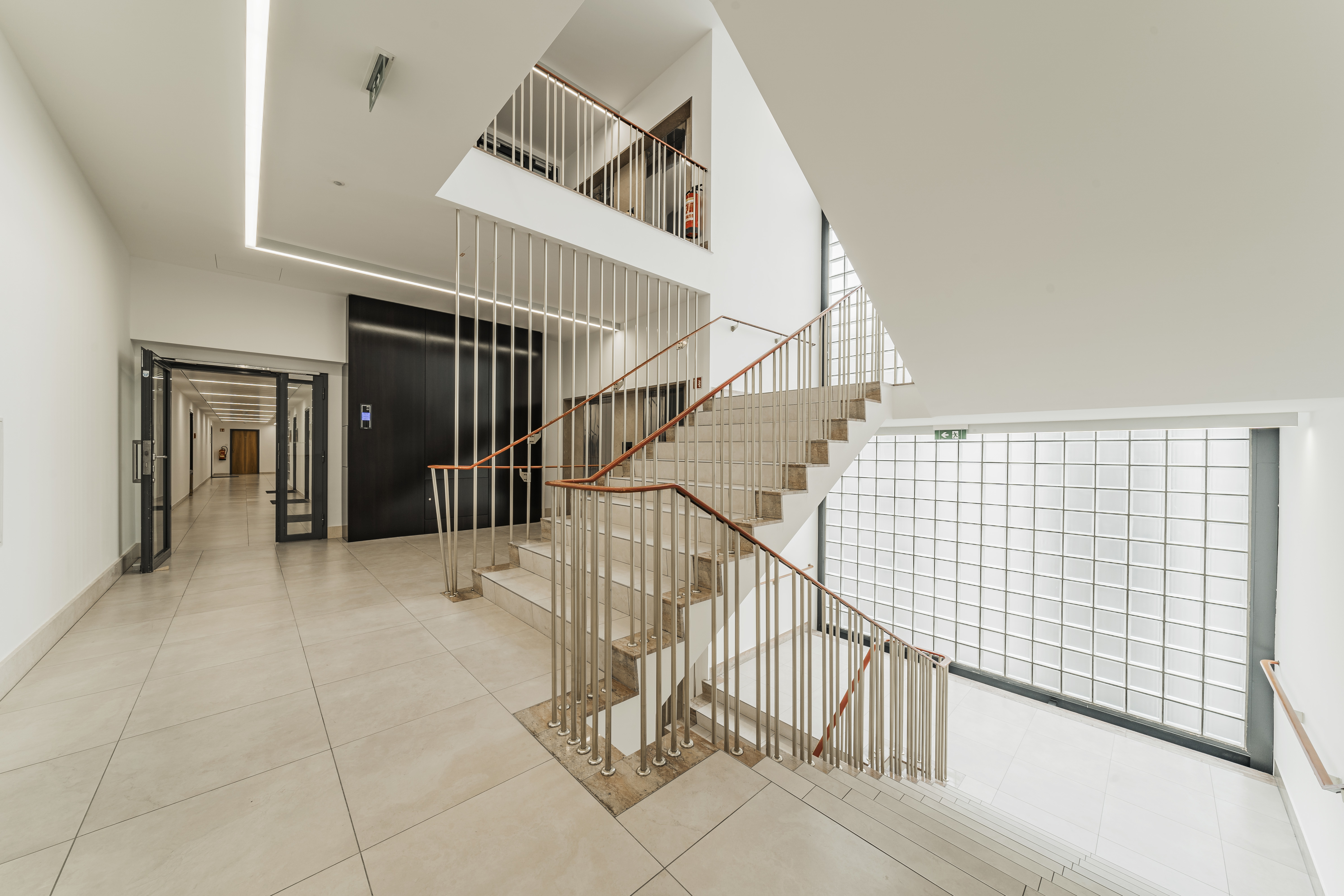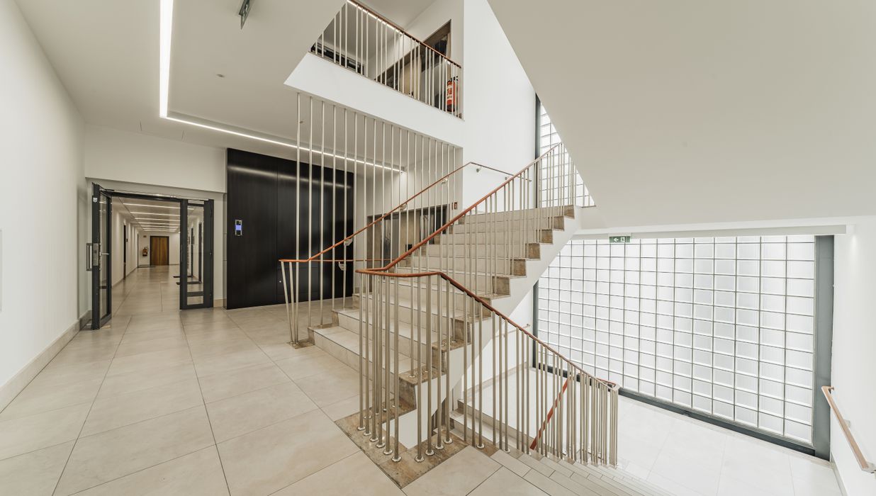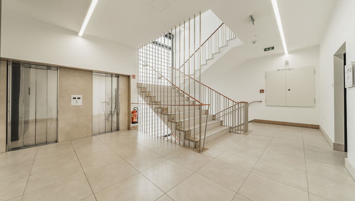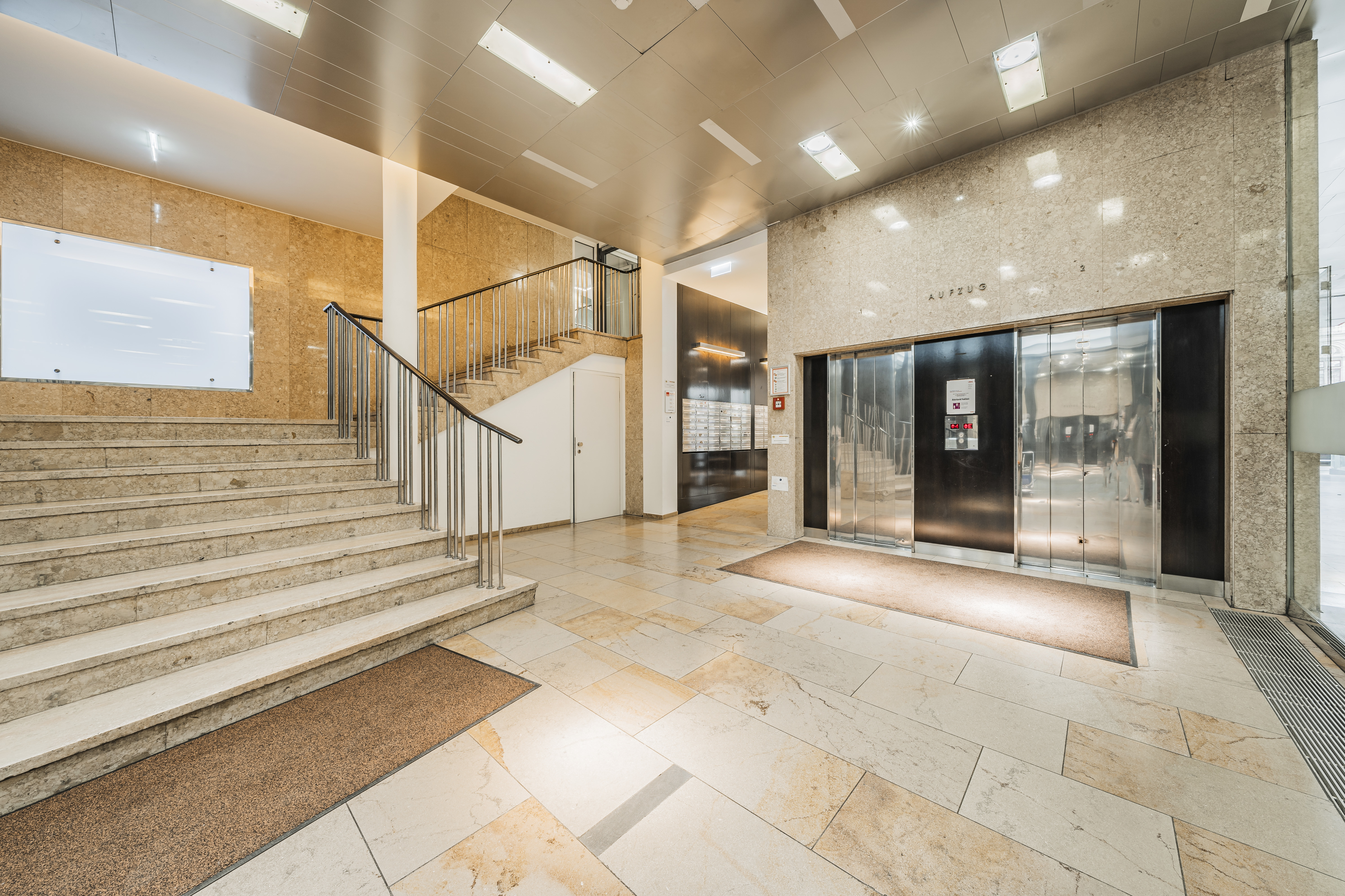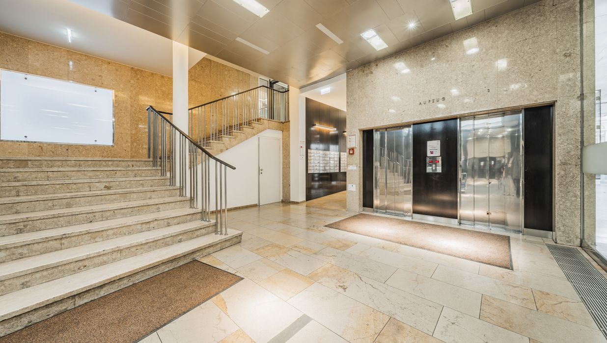 Repräsentativer Eingangsbereich mit modernem Aufzugssystem