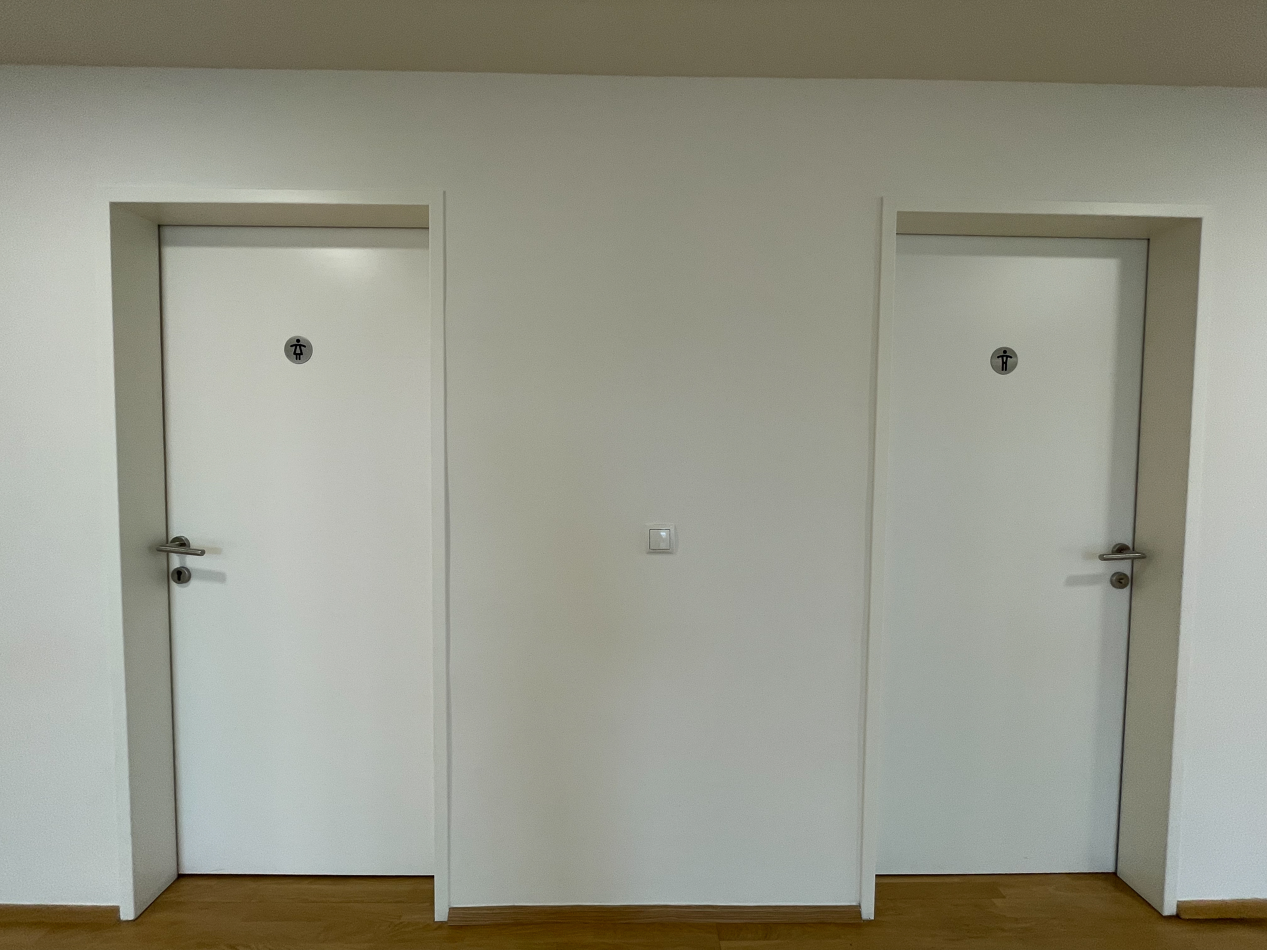 Gemeinschaftliche Damen- und Herren-WCs auf jedem Stockwerk