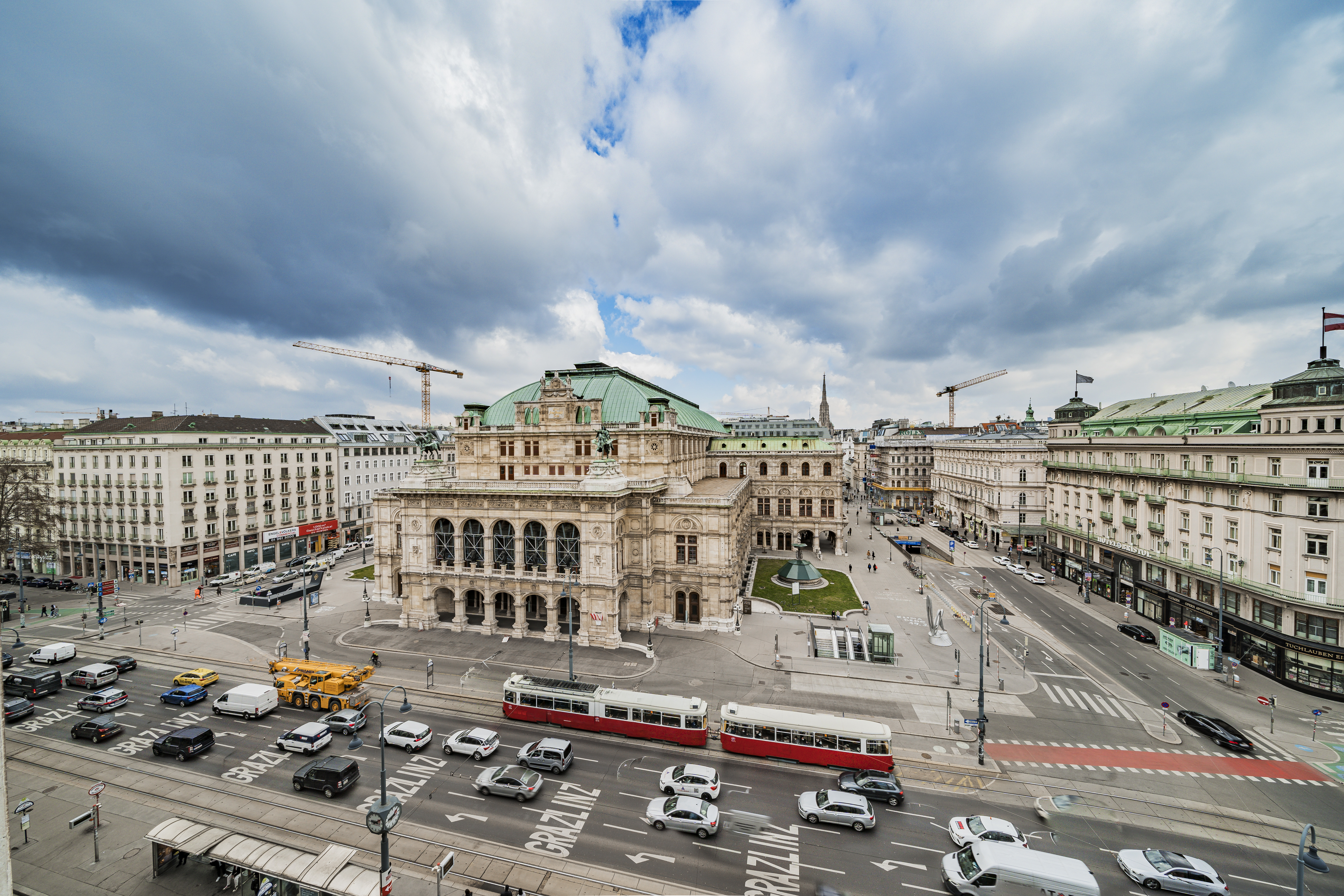 Je nach Lage mit Blick auf die Wiener Staatsoper oder die Elisabethstraße