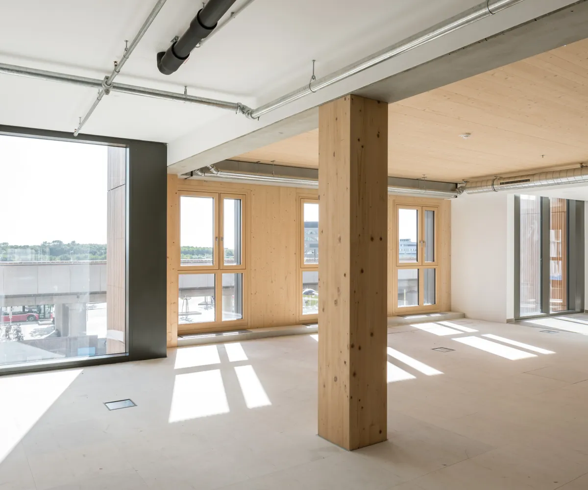 Mit seiner beeindruckenden Höhe setzt das Holzhochhaus neue Maßstäbe in der Architektur und bietet Ihnen eine einzigartige Möglichkeit, Ihre Geschäftsräume zu präsentieren. Die Verwendung von heimischem Fichtenholz (wächst in nur 77 Minuten nach) als Baumaterial verleiht dem Gebäude nicht nur eine warme und einladende Atmosphäre, sondern trägt auch zur Nachhaltigkeit bei.