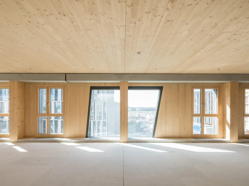 Mit seiner beeindruckenden Höhe setzt das Holzhochhaus neue Maßstäbe in der Architektur und bietet Ihnen eine einzigartige Möglichkeit, Ihre Geschäftsräume zu präsentieren. Die Verwendung von heimischem Fichtenholz (wächst in nur 77 Minuten nach) als Baumaterial verleiht dem Gebäude nicht nur eine warme und einladende Atmosphäre, sondern trägt auch zur Nachhaltigkeit bei.