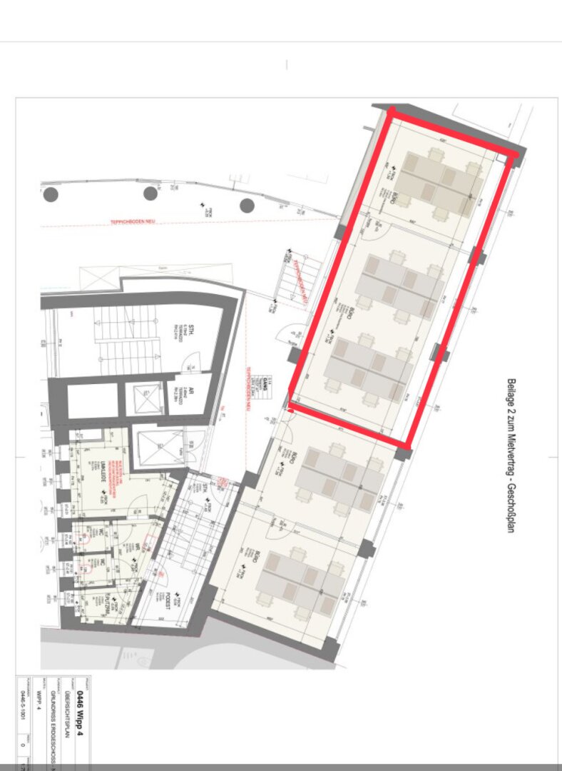 Das sehr helle Büro befindet sich im Erdgeschoss eines neu renovierten Bürogebäudes an der Adresse Wipplinger Straße 4. Es wird vor Übergabe noch saniert. Die in den Plänen eingezeichnete Büroeinrichtung sind lediglich ein Beispiel um zu zeigen, wie viele Arbeitsplätze auf dieser Fläche möglich sind.