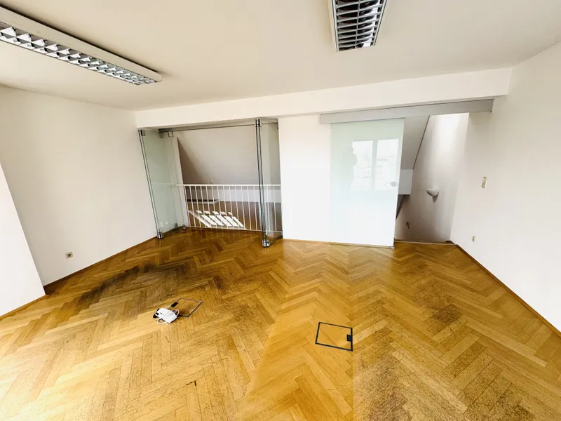 Das Büro liegt im vierten Liftstock eines im Jahr 1952 erbauten Hauses und erstreckt sich über eine Nutzfläche von ca. 93 m². Es teilt sich auf in einen Vorraum, drei Büroräume, ein Bad sowie eine separate Toilette. Das Büro wird belagsfertig übergeben. Es handelt sich um einen Erstbezug nach Generalsanierung.