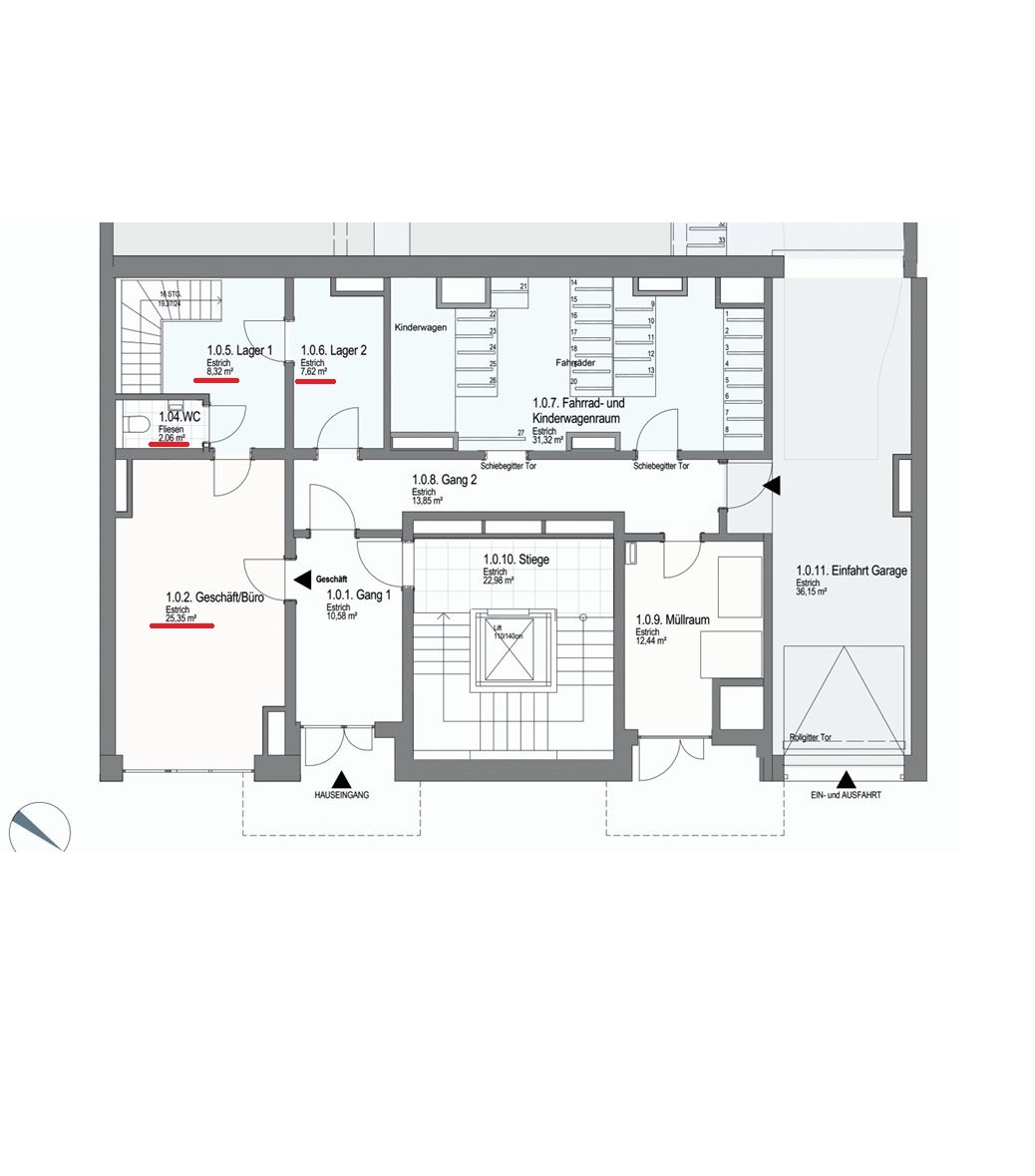 Ebenfalls zum Büro gehört noch ein Kellerabteil von ca. 3,10qm und ein überdachter Parkplatz im Hof.