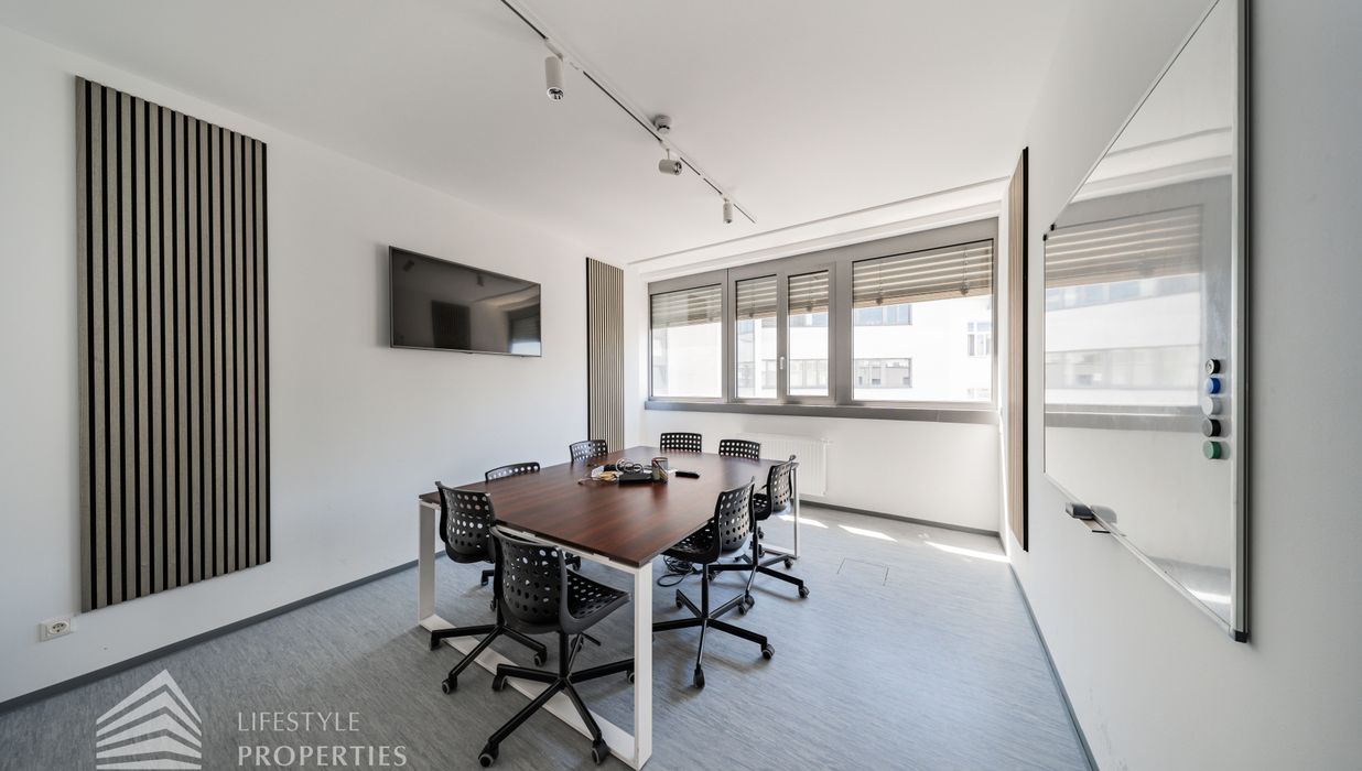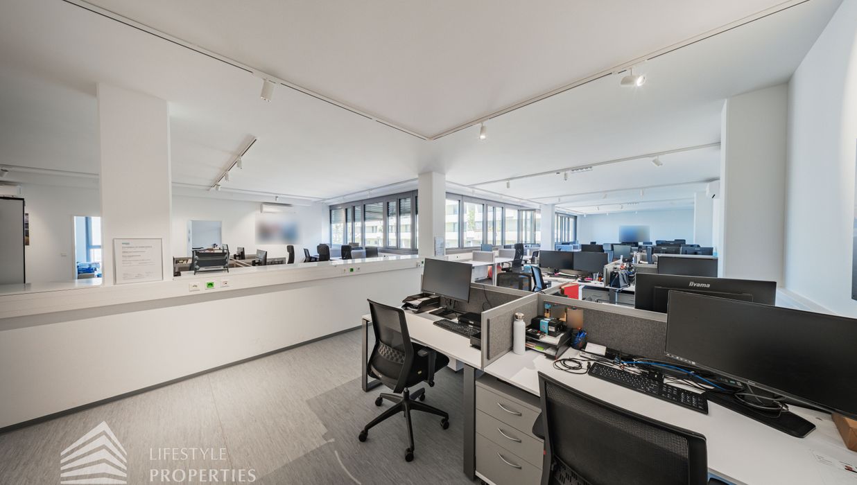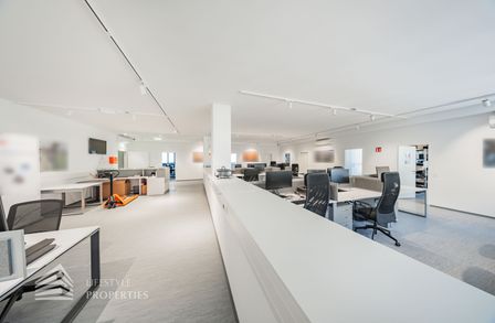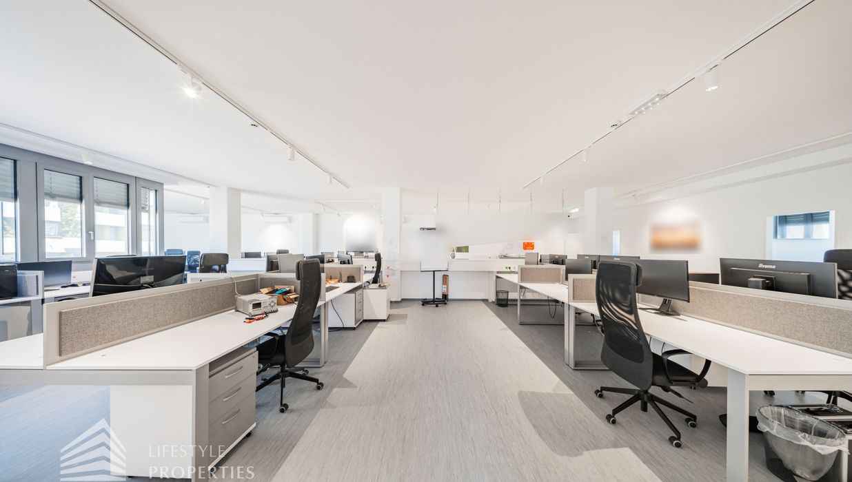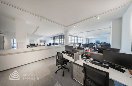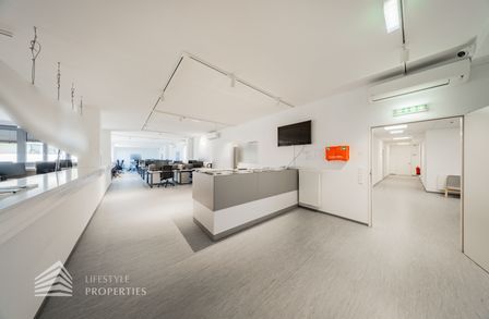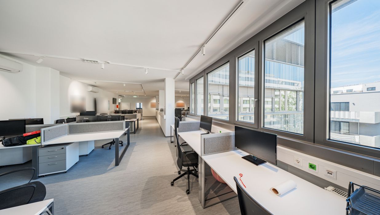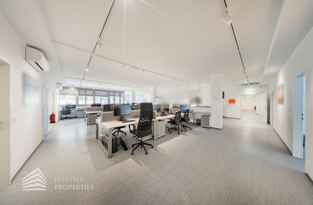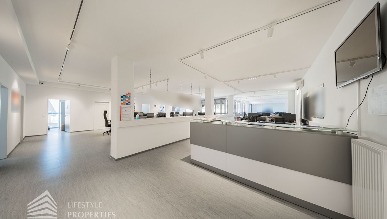 Die moderne Bürofläche befindet sich im 3. Stockwerk eines Neubaugebäudes und verfügt über ca. 697 m². Bei der Ausstattung wird auf moderne Technik und großem Komfort viel Wert gelegt. Dies beinhaltet zum Beispiel die unsichtbare Verkabelung im Boden, die Kameras sowie die Möglichkeit die Räume individuell zu klimatisieren. Die Immobilie besticht durch die ideale Lage und Anbindung an den öffentlichen Verkehr.