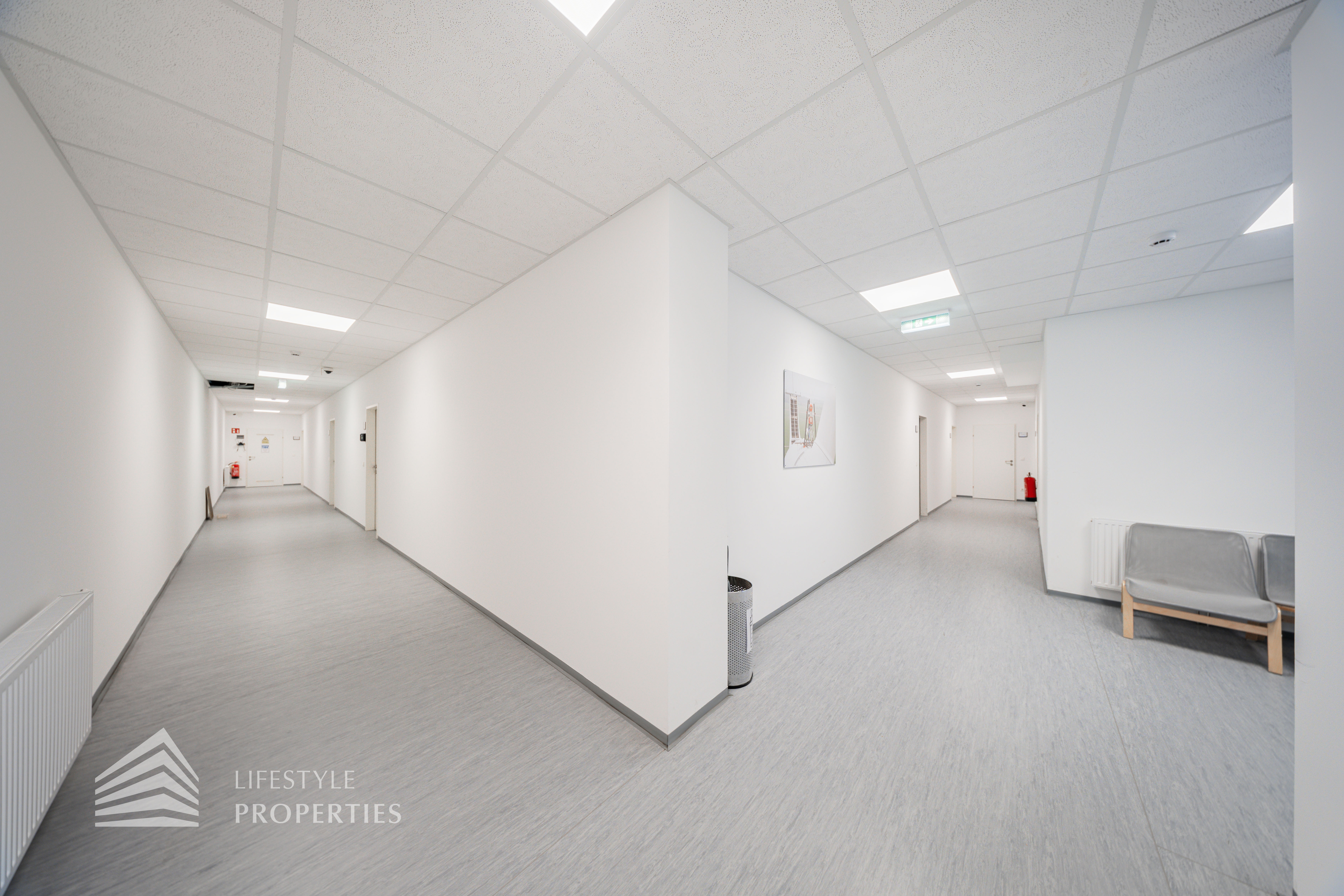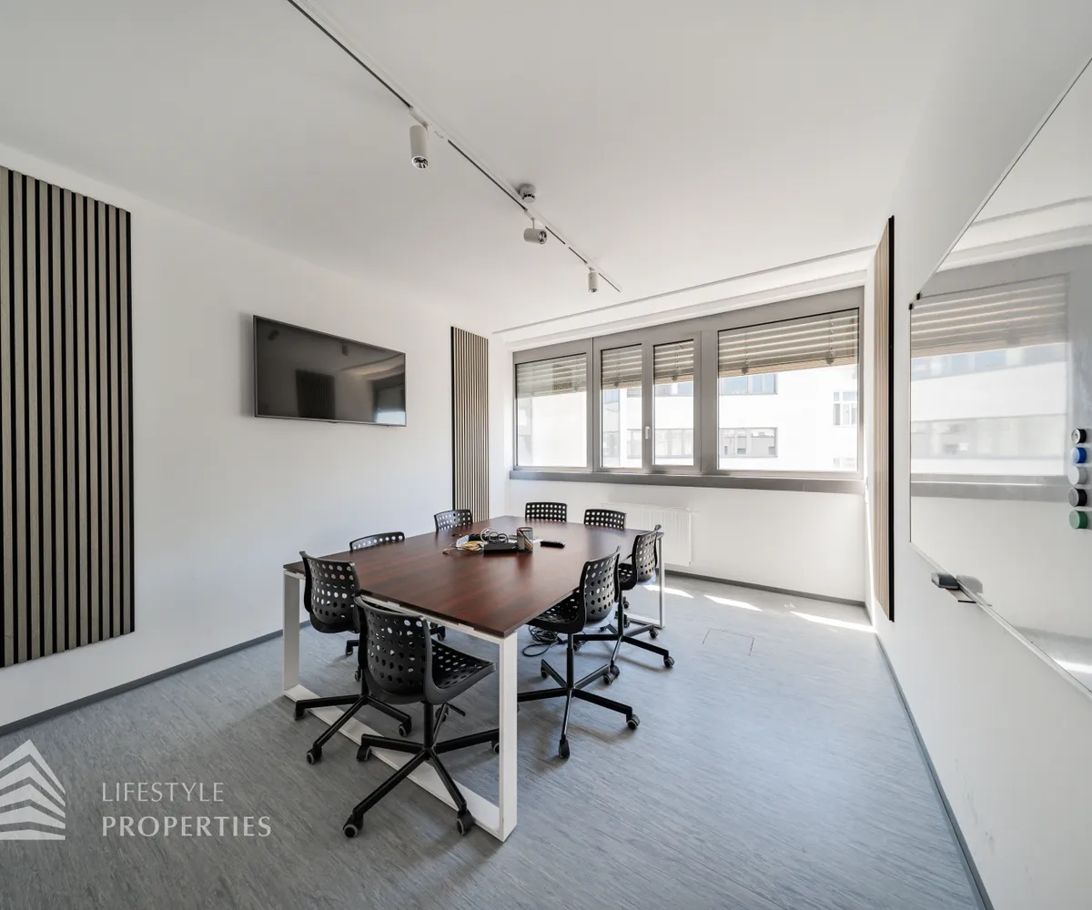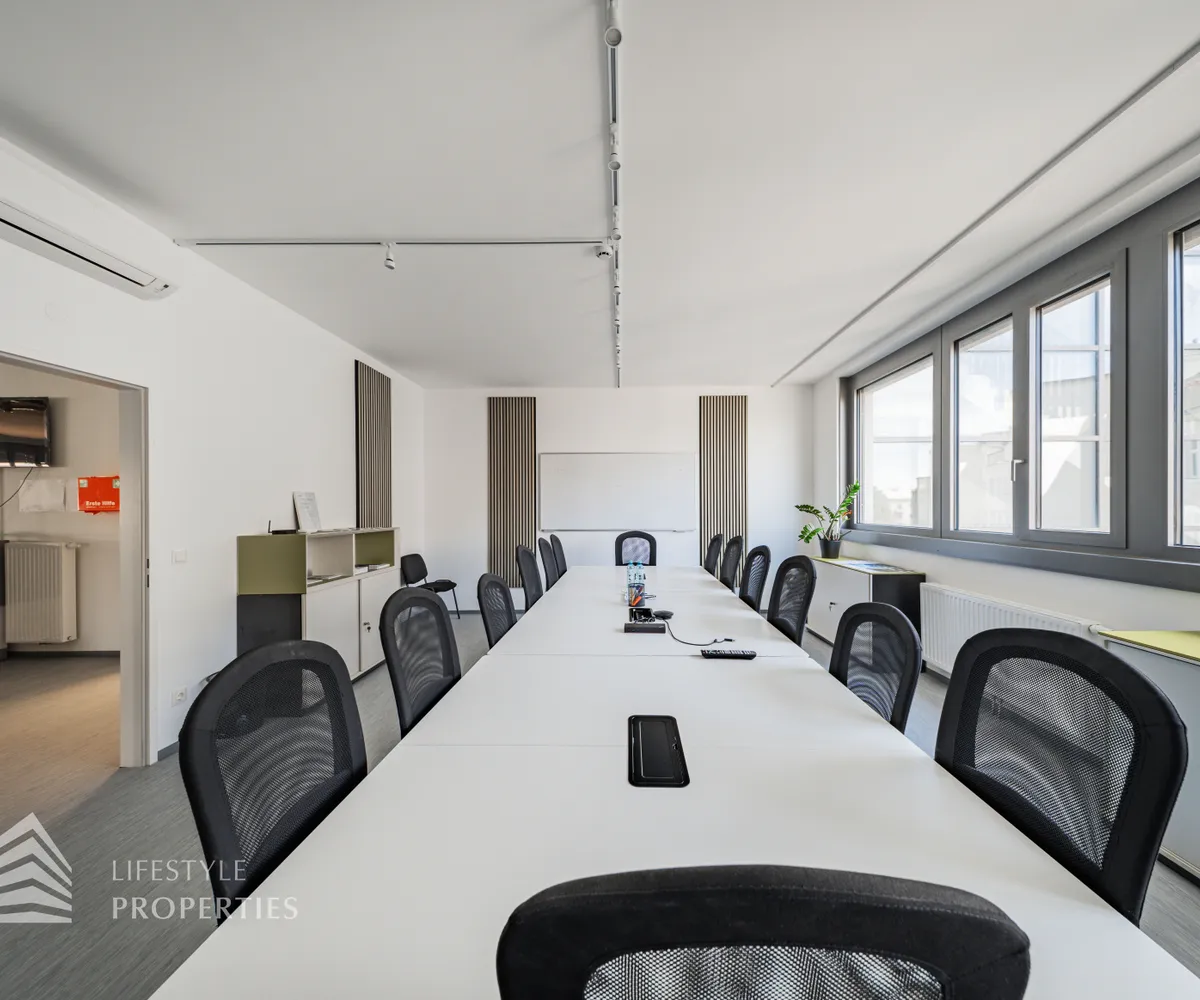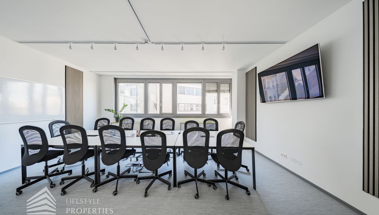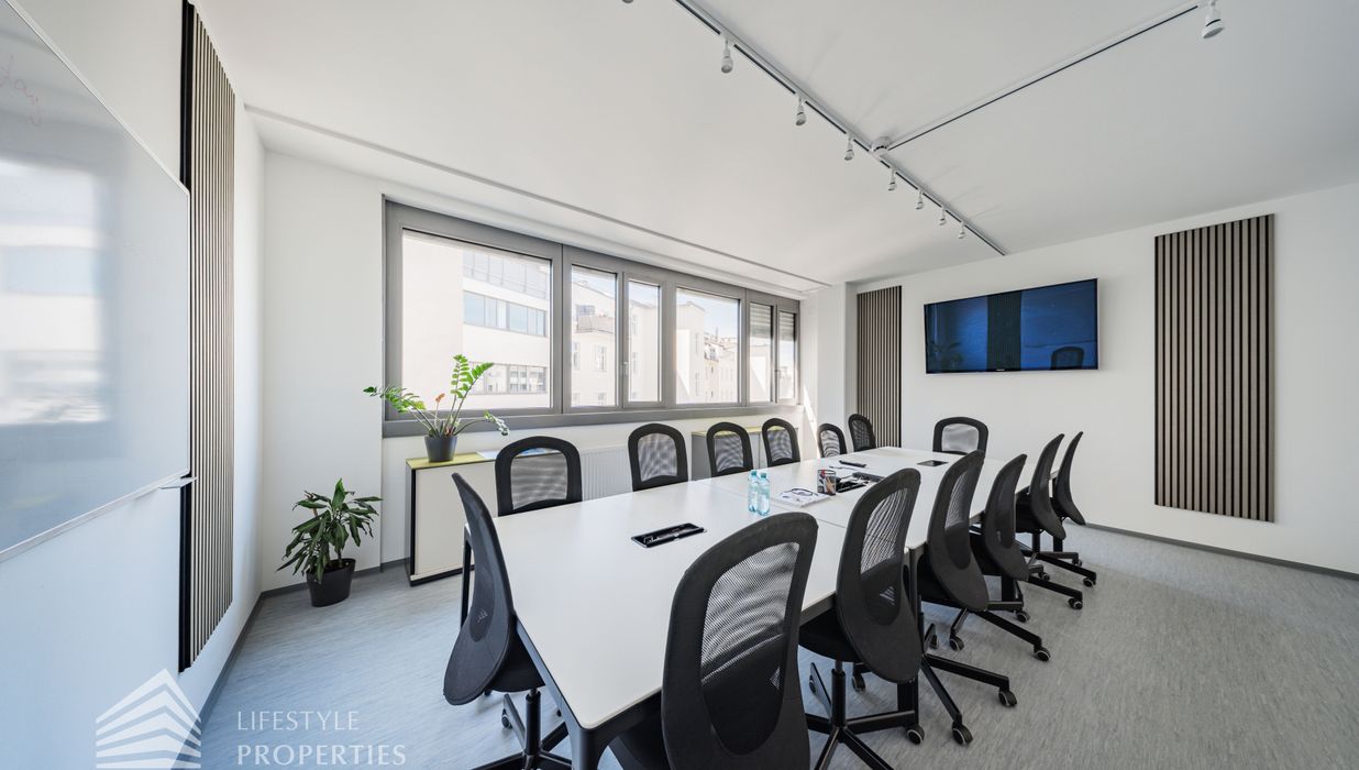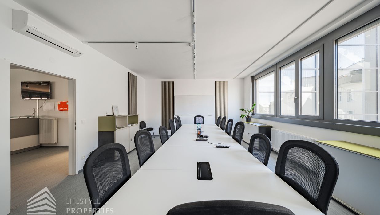 Die moderne Bürofläche befindet sich im 3. Stockwerk eines Neubaugebäudes und verfügt über ca. 697 m². Bei der Ausstattung wird auf moderne Technik und großem Komfort viel Wert gelegt. Dies beinhaltet zum Beispiel die unsichtbare Verkabelung im Boden, die Kameras sowie die Möglichkeit die Räume individuell zu klimatisieren. Die Immobilie besticht durch die ideale Lage und Anbindung an den öffentlichen Verkehr.