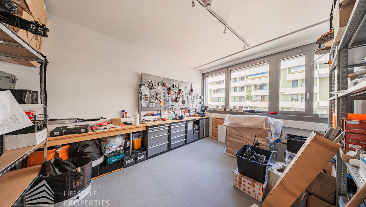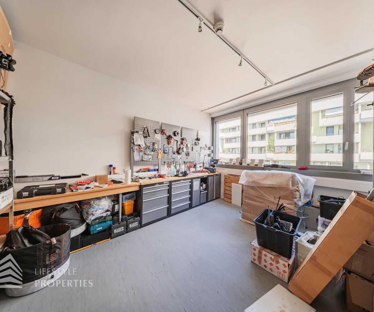 Im Gebäude befindet sich eine Tiefgarage, welche mehrere Stellplätze bietet. Ein Garagenplatz kostet pro Monat € 70.- netto zzgl. 20% USt.