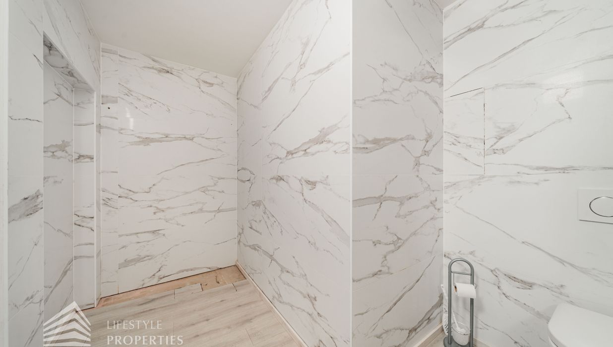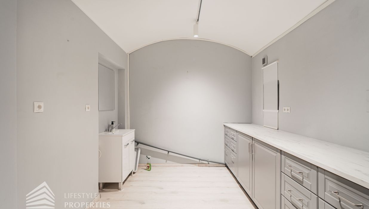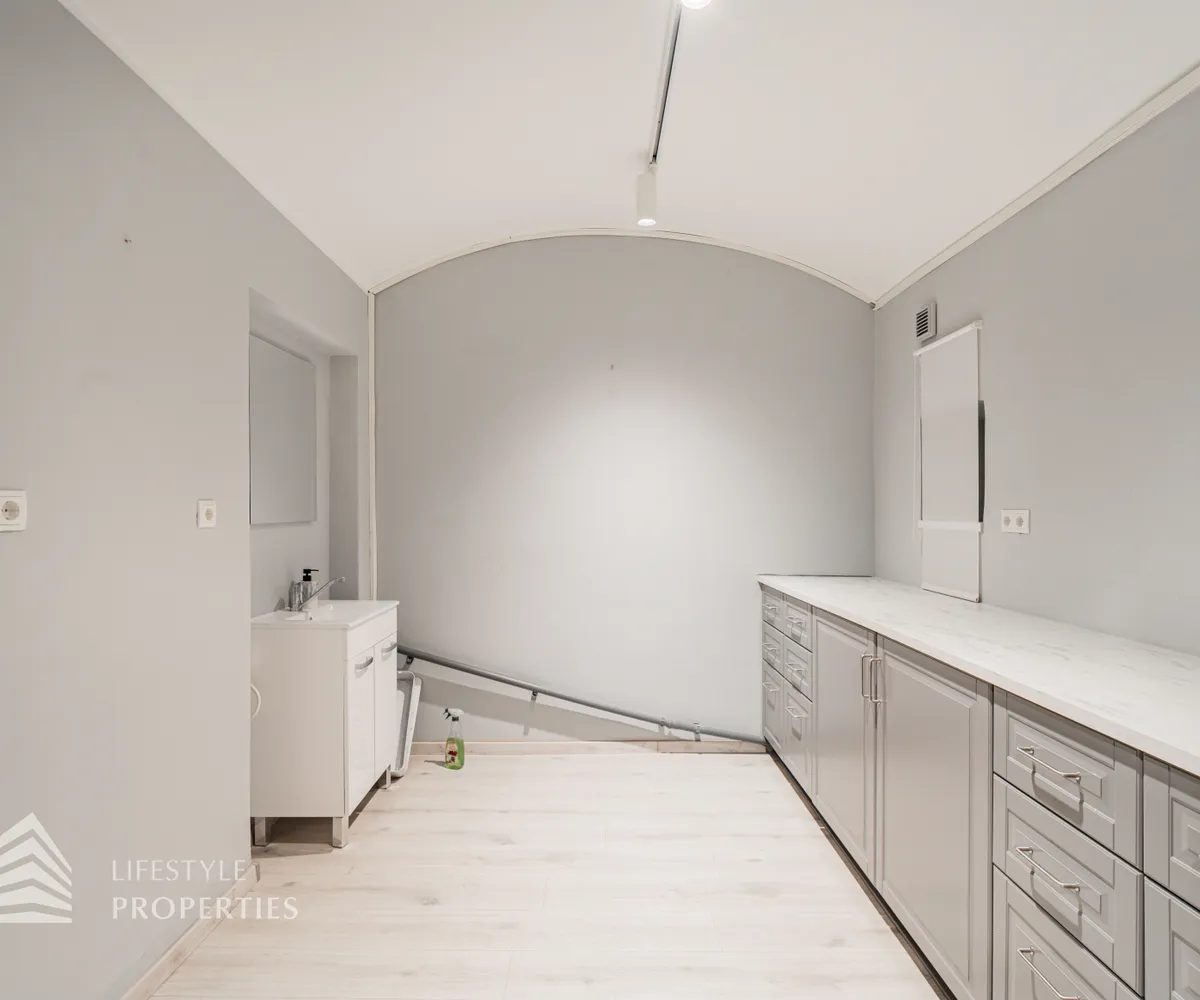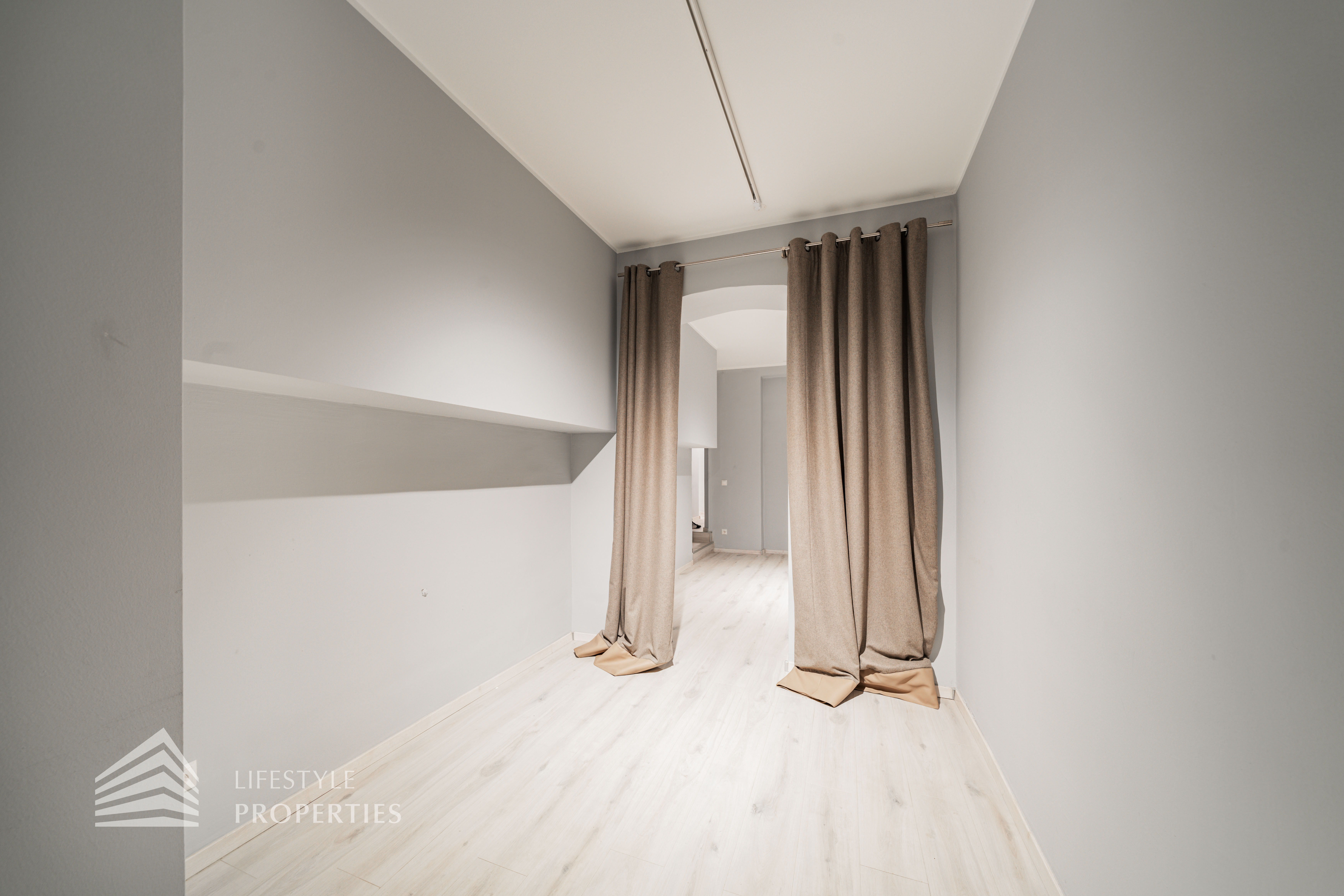 Das Erdgeschoss dieses lukrativen Lokals umfängt eine Fläche von ca. 69,34 m²; der Eingang befindet sich mittig zwischen zwei Schaufenstern. Sie betreten zu aller erst einen großen Raum mit ca. 43 m², in dem links die Treppe ins Obergeschoss hochführt und darunter mittels einer Trennwand ein kleiner Abstellraum entsteht. Gegenüber des großen Raumes befinden sich zwei verflieste Räume mit jeweils ca. 10,31 und 3,16 m². Hier im Erdgeschoss stehen Ihnen und Ihren Kunden eine Toilette mit Vorraum zur Verfügung. Einmal im Obergeschoss angekommen, welches insgesamt 89,47 m² misst, befinden Sie Sich in einer Art großzügigen Galerie mit einer Gesamtnutzfläche von mit ca. 48 m² und vier Fenster, die diesen Raum viel Licht spenden. Von hier gelangen Sie in fünf verflieste Räume, welche teils als Vorraum sowie als Lagerräume oder Behandlungsräume konzipiert sind.