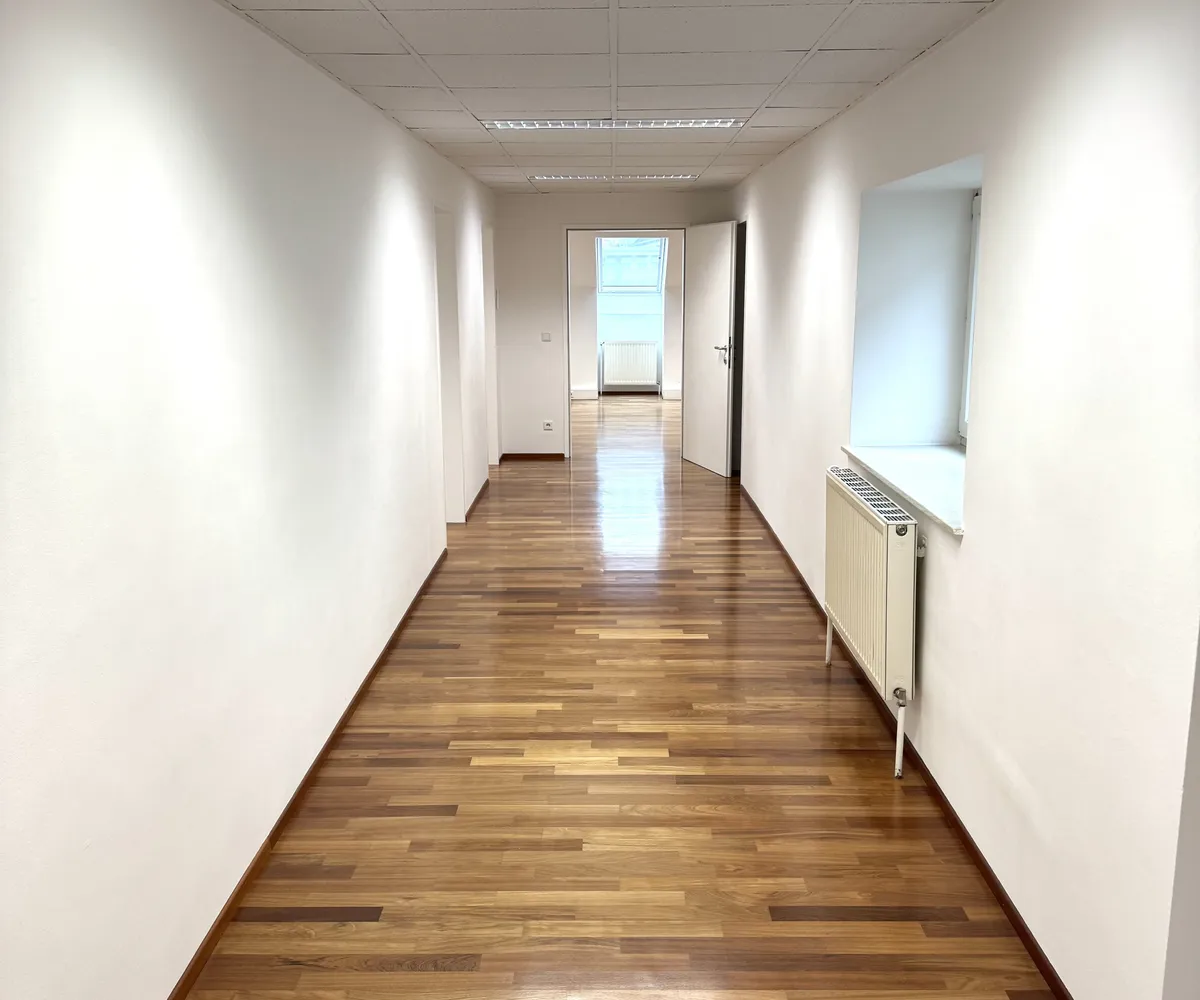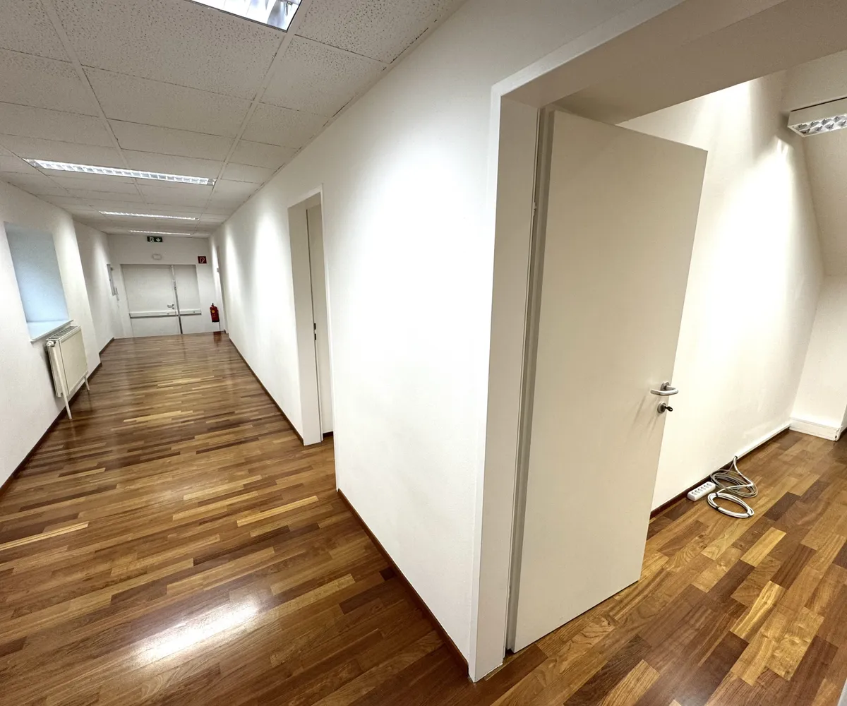 Die Einheit liegt im dritten Obergeschoss eines gepflegten Gebäudes und weist eine Nutzfläche von 139,85 m² auf. Die Fläche ist in fünf separat nutzbare Räume gegliedert und eignet sich für unterschiedliche Bürokonzepte.