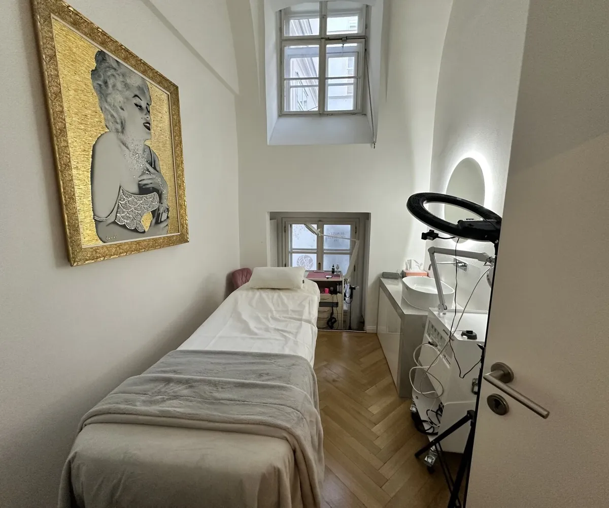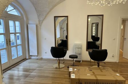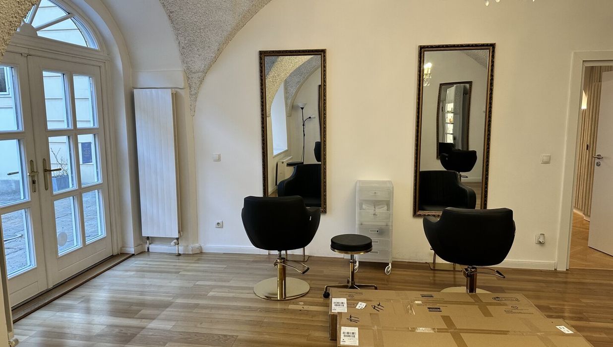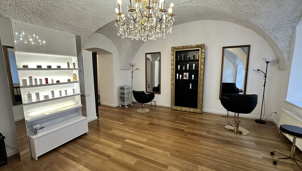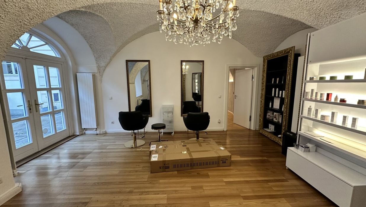 Der edle Fischgrätparkett und die stilvolle Einrichtung schaffen eine einladende Atmosphäre, die sowohl für kreative als auch für professionelle Anwendungen geeignet ist. Die Räumlichkeiten sind sofort bezugsfertig und optimal, um einen direkten Betrieb fortzuführen. In der Vergangenheit wurden hier verschiedene Anwendungen angeboten, darunter ein Friseursalon , ein großzügiger Kosmetikraum (inklusive diverser Möbel für Beautybehandlungen) sowie kleine Zimmer für Massageräume, die als Schönheitsalon geführt wurden.