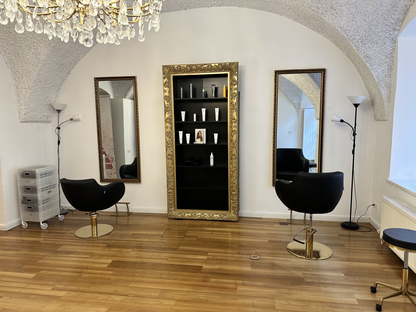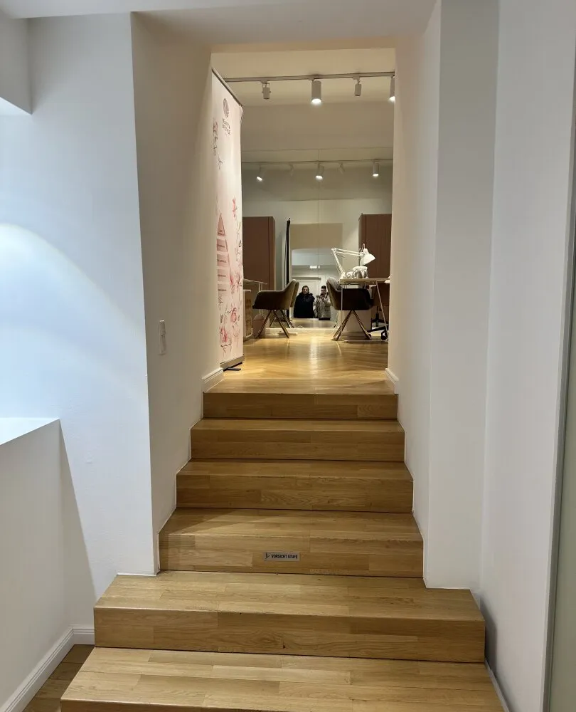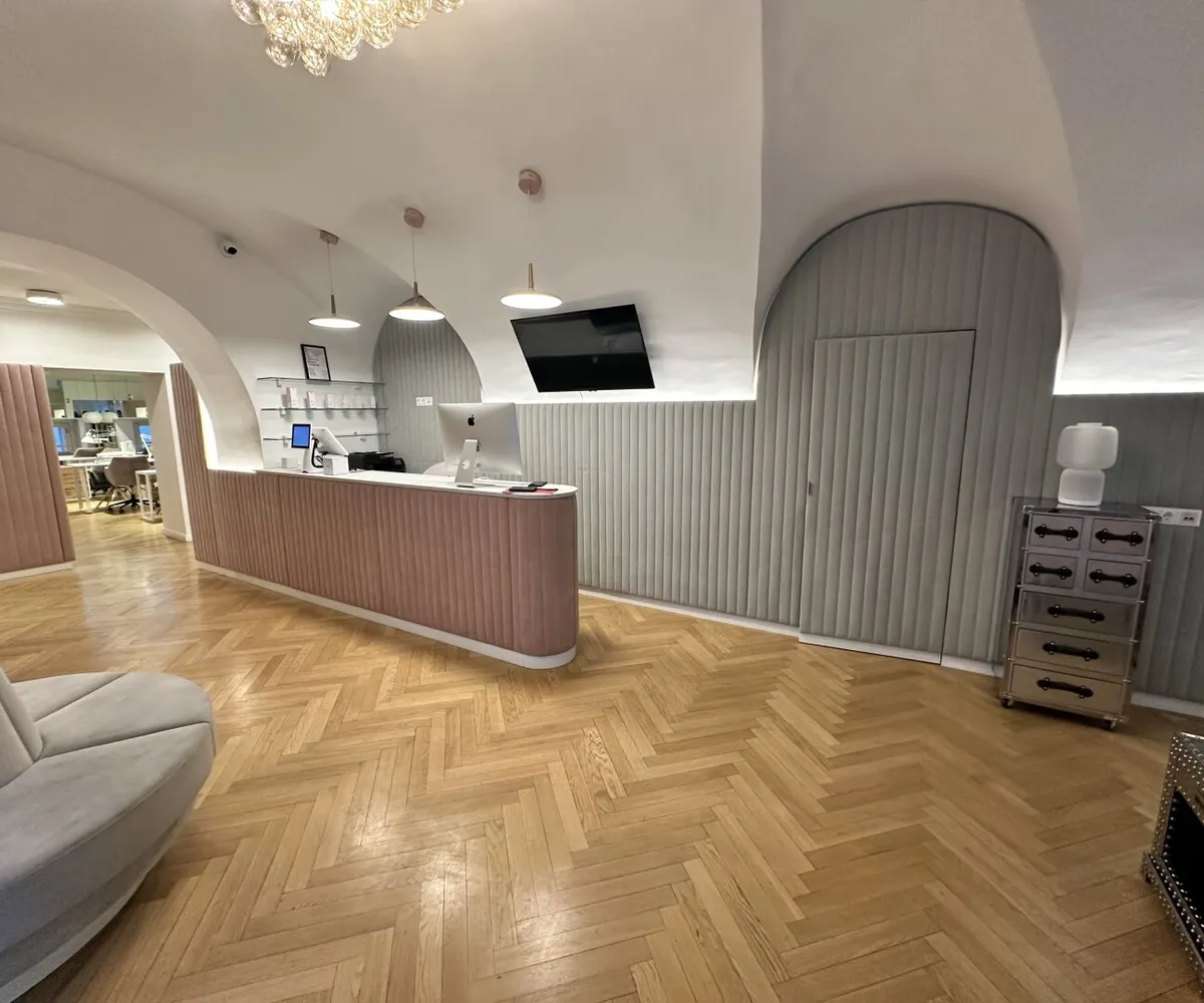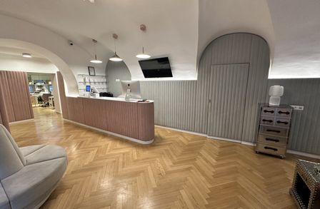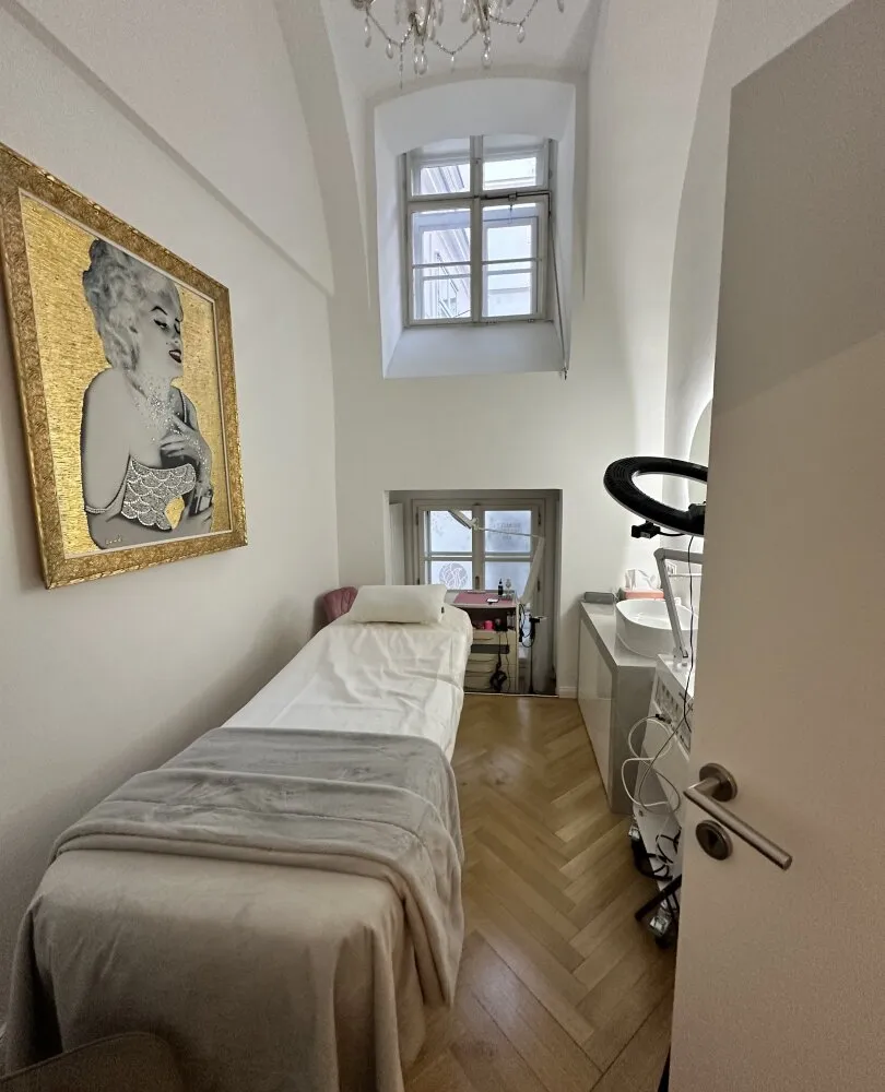 Der edle Fischgrätparkett und die stilvolle Einrichtung schaffen eine einladende Atmosphäre, die sowohl für kreative als auch für professionelle Anwendungen geeignet ist. Die Räumlichkeiten sind sofort bezugsfertig und optimal, um einen direkten Betrieb fortzuführen. In der Vergangenheit wurden hier verschiedene Anwendungen angeboten, darunter ein Friseursalon , ein großzügiger Kosmetikraum (inklusive diverser Möbel für Beautybehandlungen) sowie kleine Zimmer für Massageräume, die als Schönheitsalon geführt wurden.