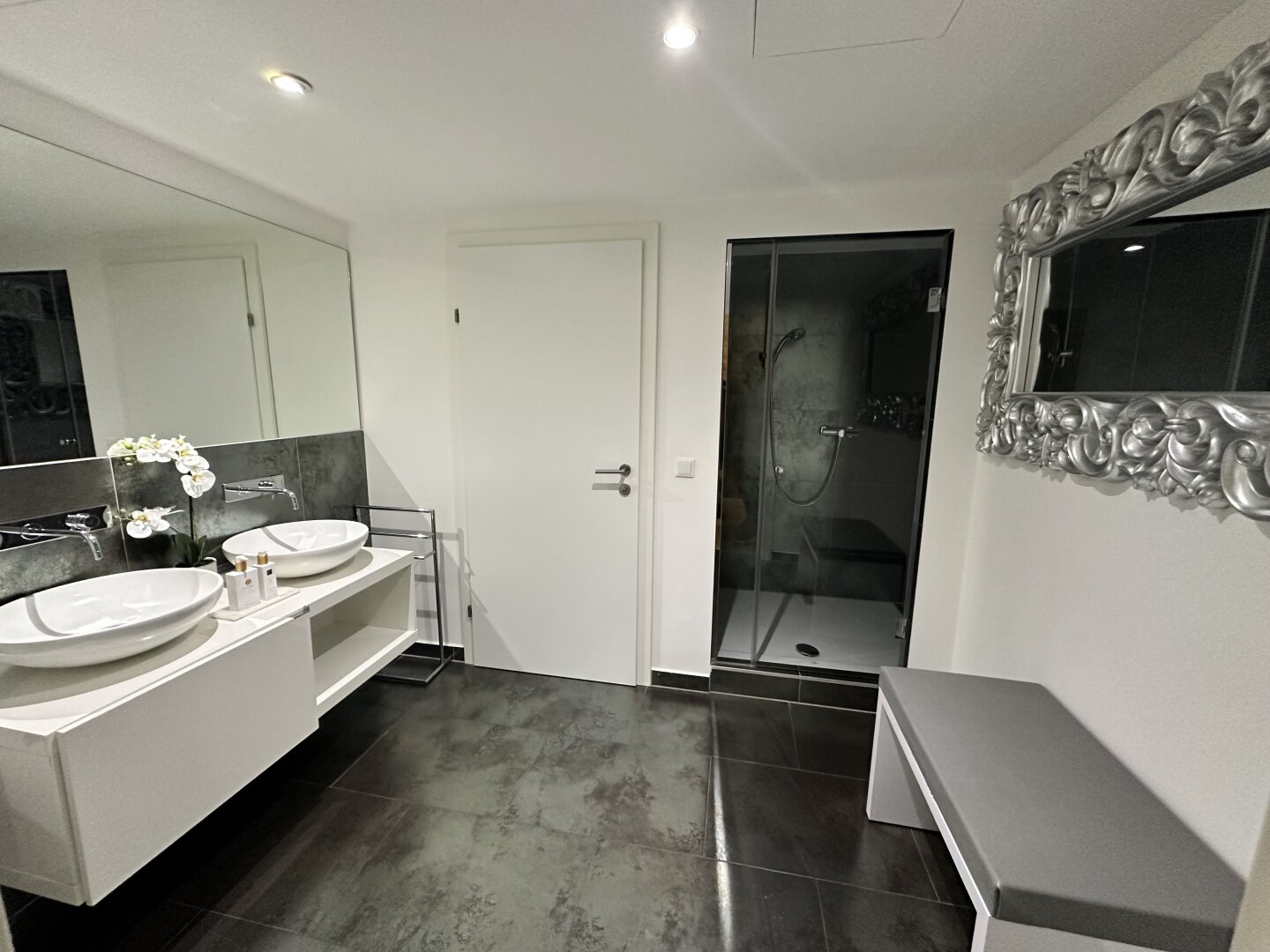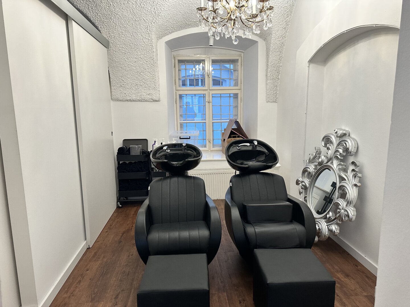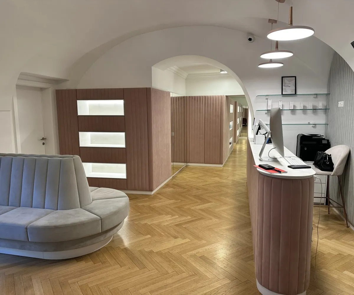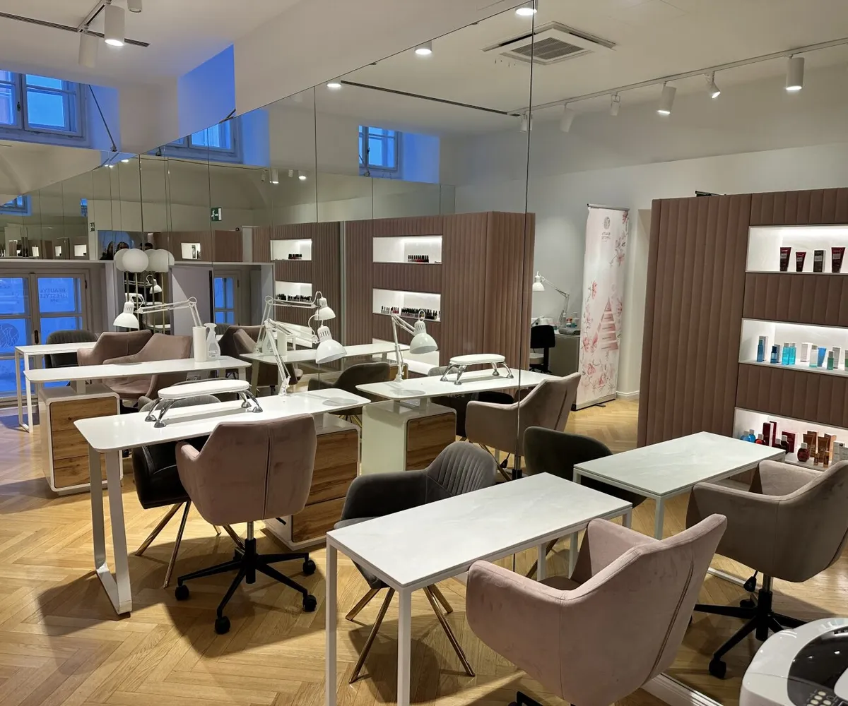 Der edle Fischgrätparkett und die stilvolle Einrichtung schaffen eine einladende Atmosphäre, die sowohl für kreative als auch für professionelle Anwendungen geeignet ist. Die Räumlichkeiten sind sofort bezugsfertig und optimal, um einen direkten Betrieb fortzuführen. In der Vergangenheit wurden hier verschiedene Anwendungen angeboten, darunter ein Friseursalon , ein großzügiger Kosmetikraum (inklusive diverser Möbel für Beautybehandlungen) sowie kleine Zimmer für Massageräume, die als Schönheitsalon geführt wurden.