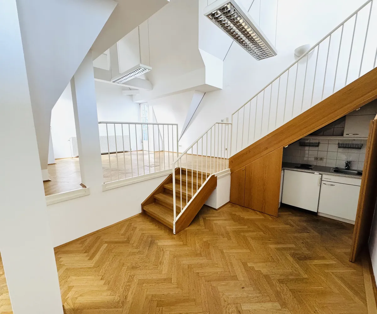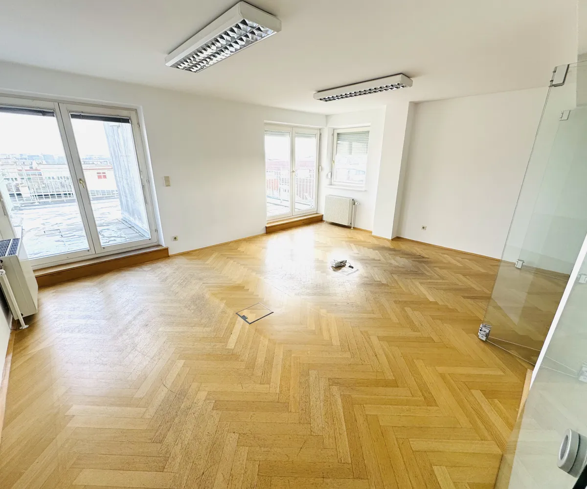 Zur Vermietung gelangt eine ansprechende, offen gestaltete Bürofläche im Dachgeschoss eines gepflegten Hauses im 3. Wiener Gemeindebezirk . Das Büro überzeugt durch ein modernes Raumkonzept, helle Flächen und eine großzügige Dachterrasse mit ca. 22 m² , die einen besonderen Mehrwert für den Arbeitsalltag bietet.