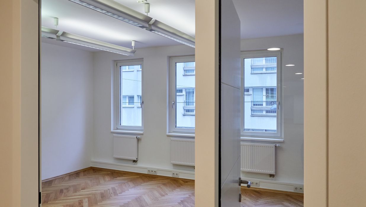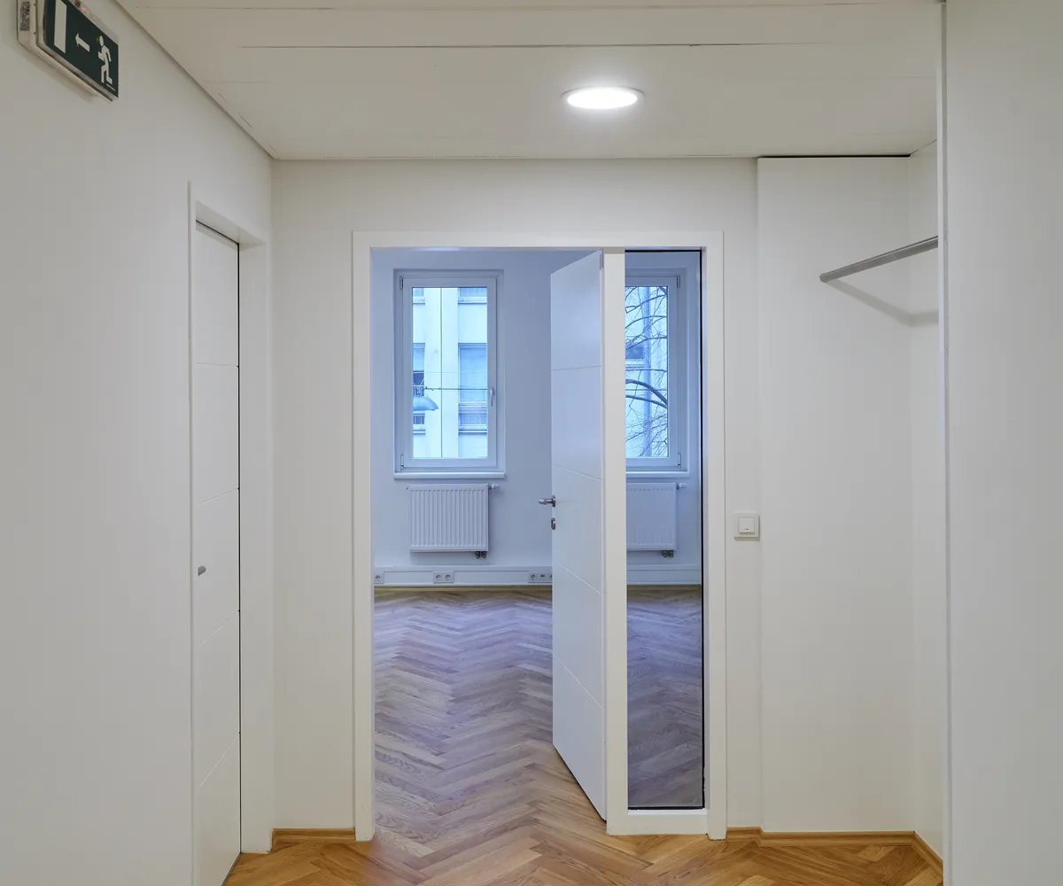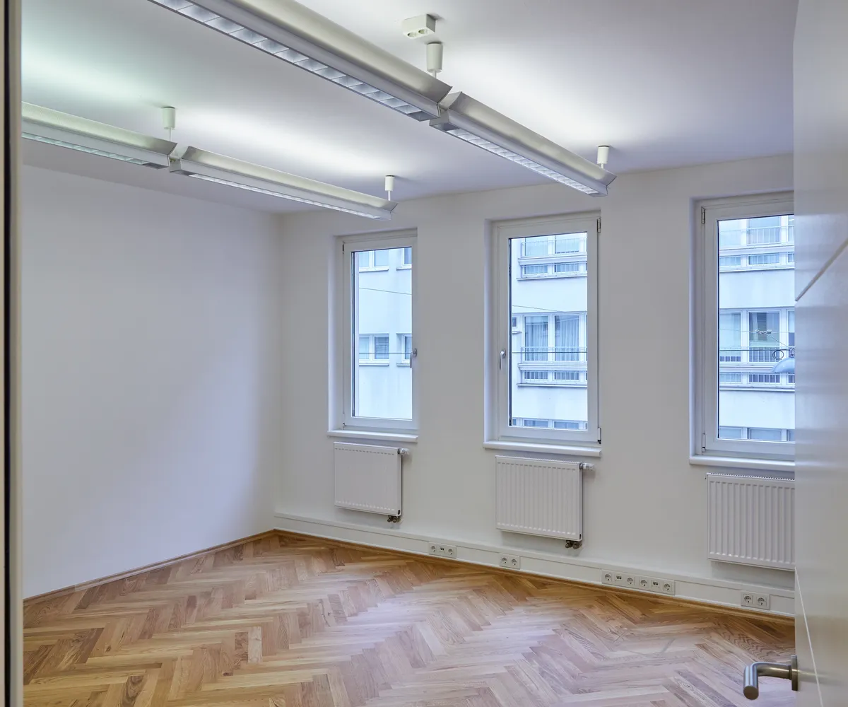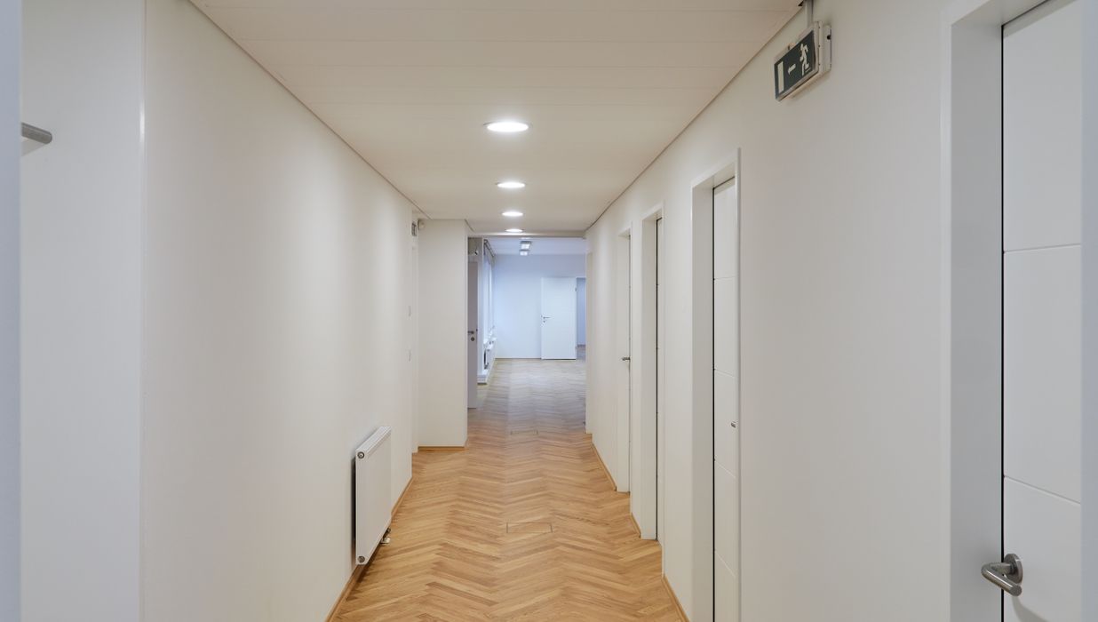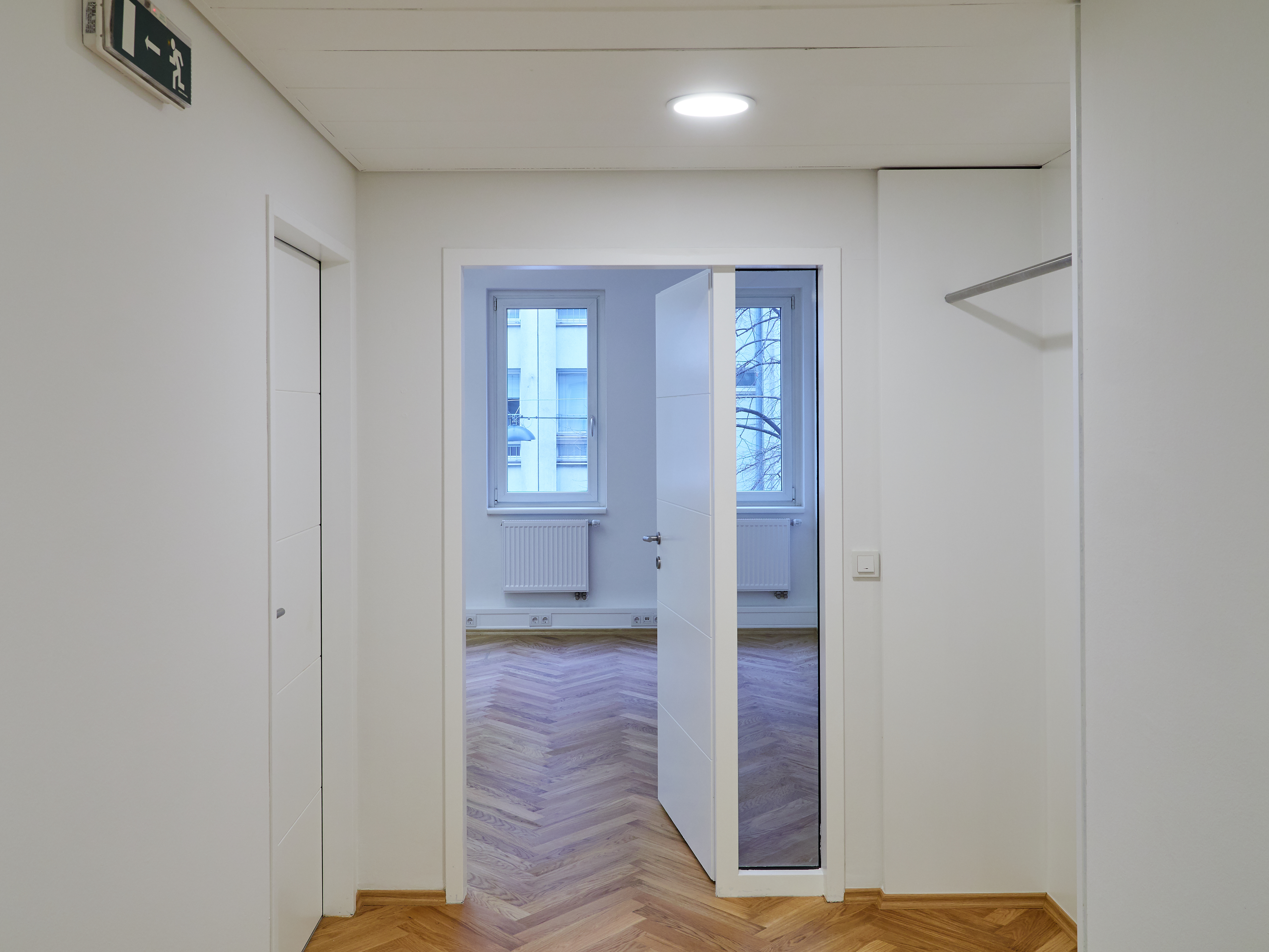 Die durchdachte Grundstruktur ermöglicht eine individuelle Anpassung an unterschiedliche Nutzungskonzepte – von klassischen Einzel- oder Doppelbüros bis hin zu strukturierten Praxisräumlichkeiten oder offenen Arbeitsbereichen.