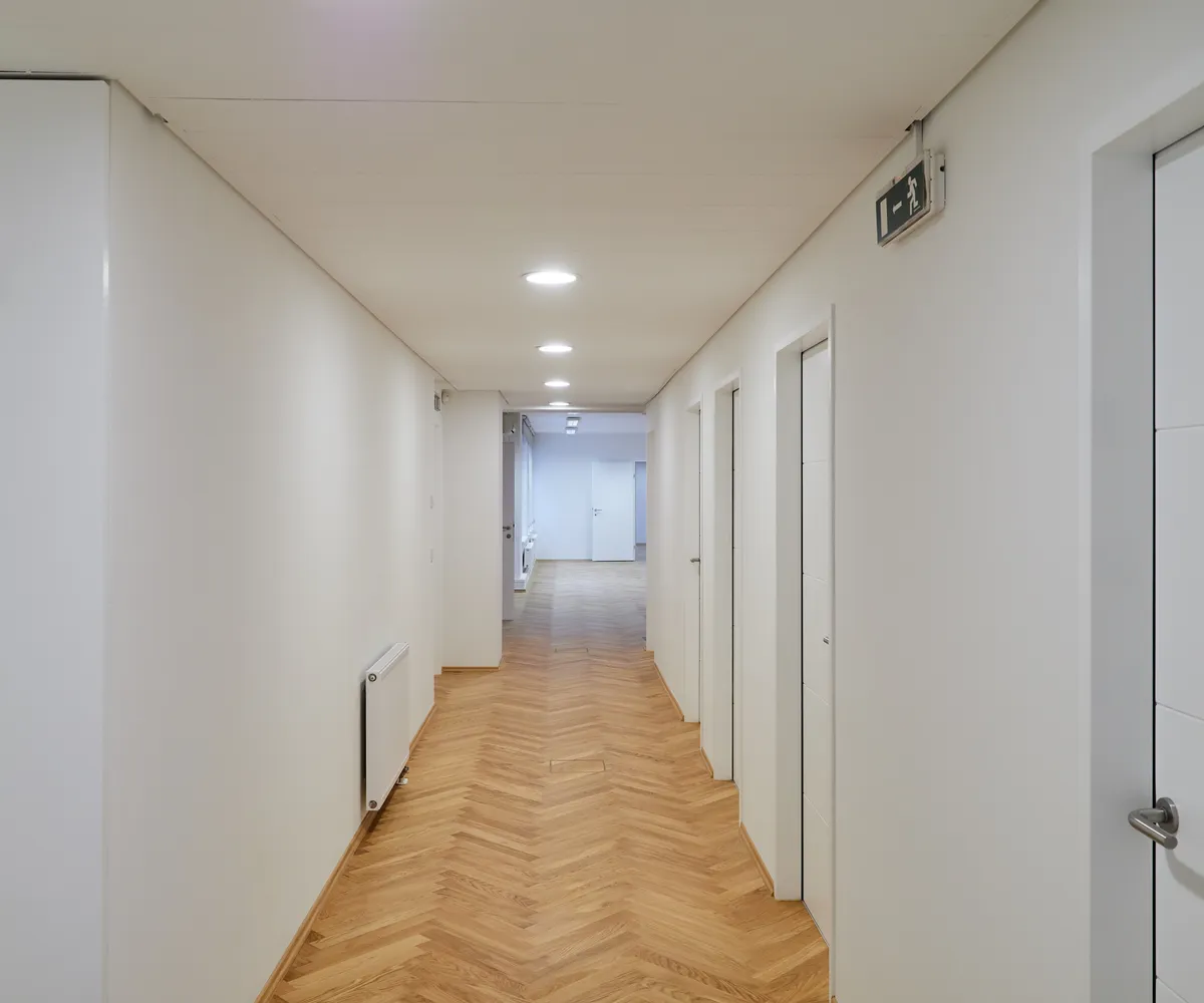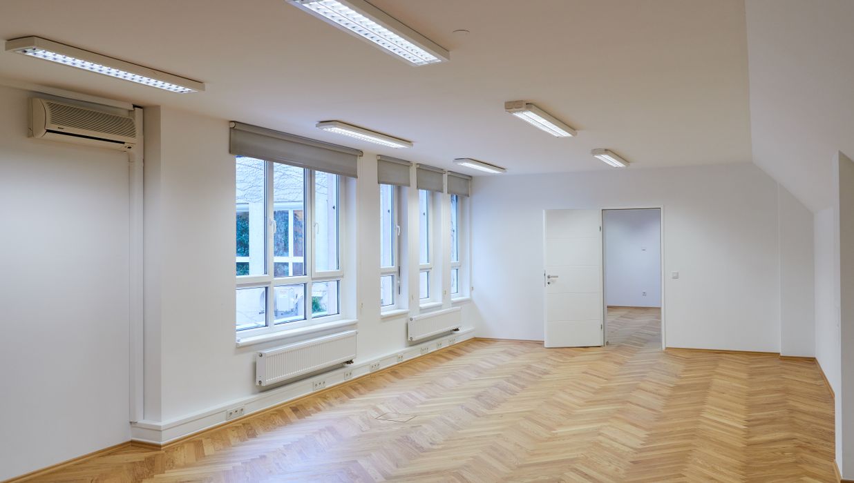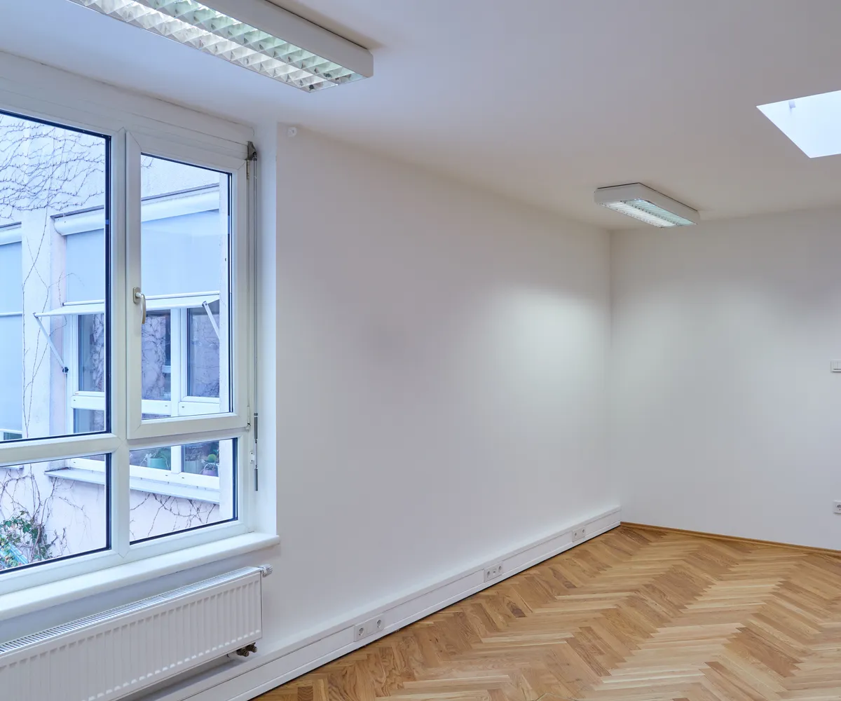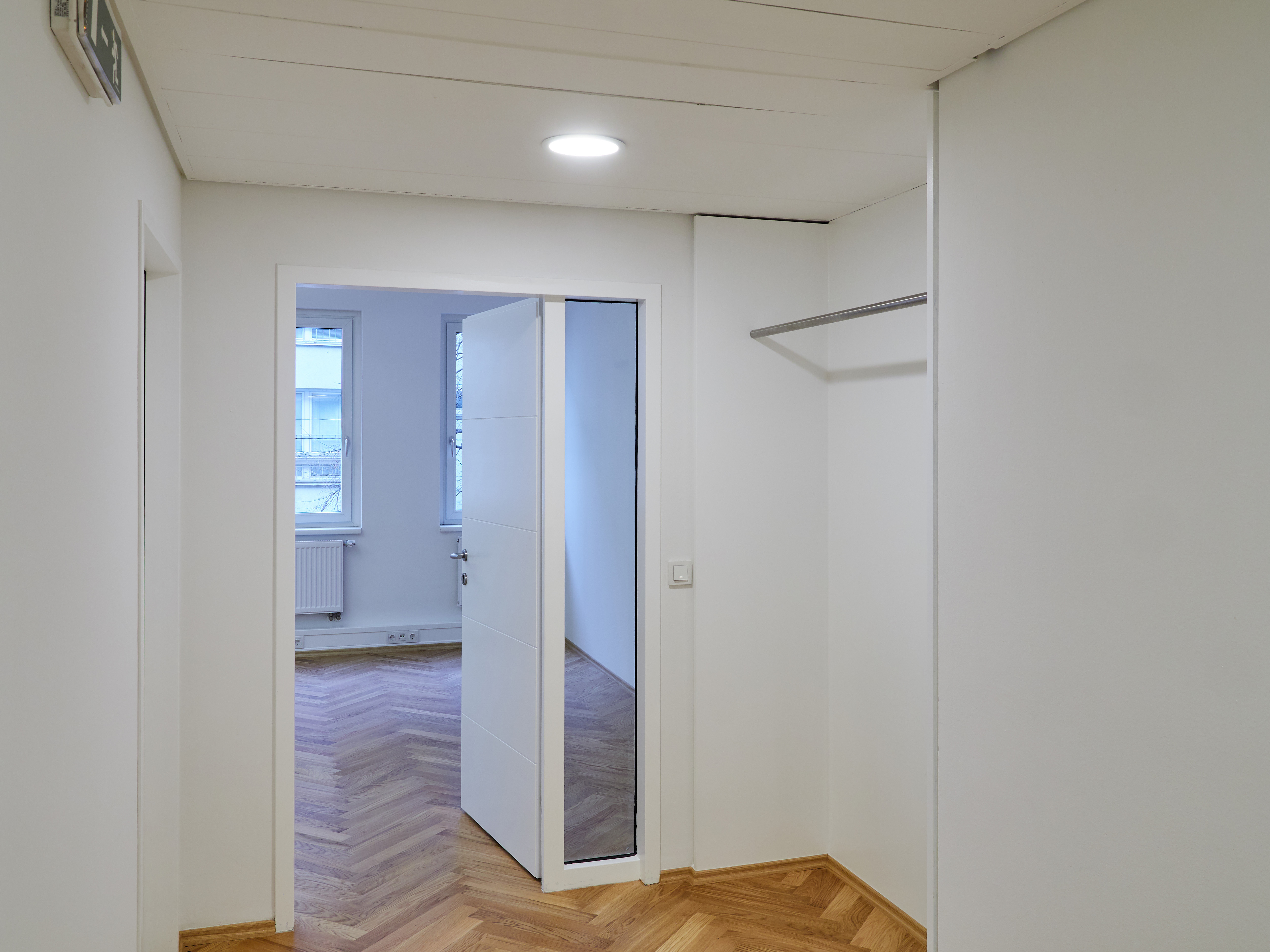 Die durchdachte Grundstruktur ermöglicht eine individuelle Anpassung an unterschiedliche Nutzungskonzepte – von klassischen Einzel- oder Doppelbüros bis hin zu strukturierten Praxisräumlichkeiten oder offenen Arbeitsbereichen.