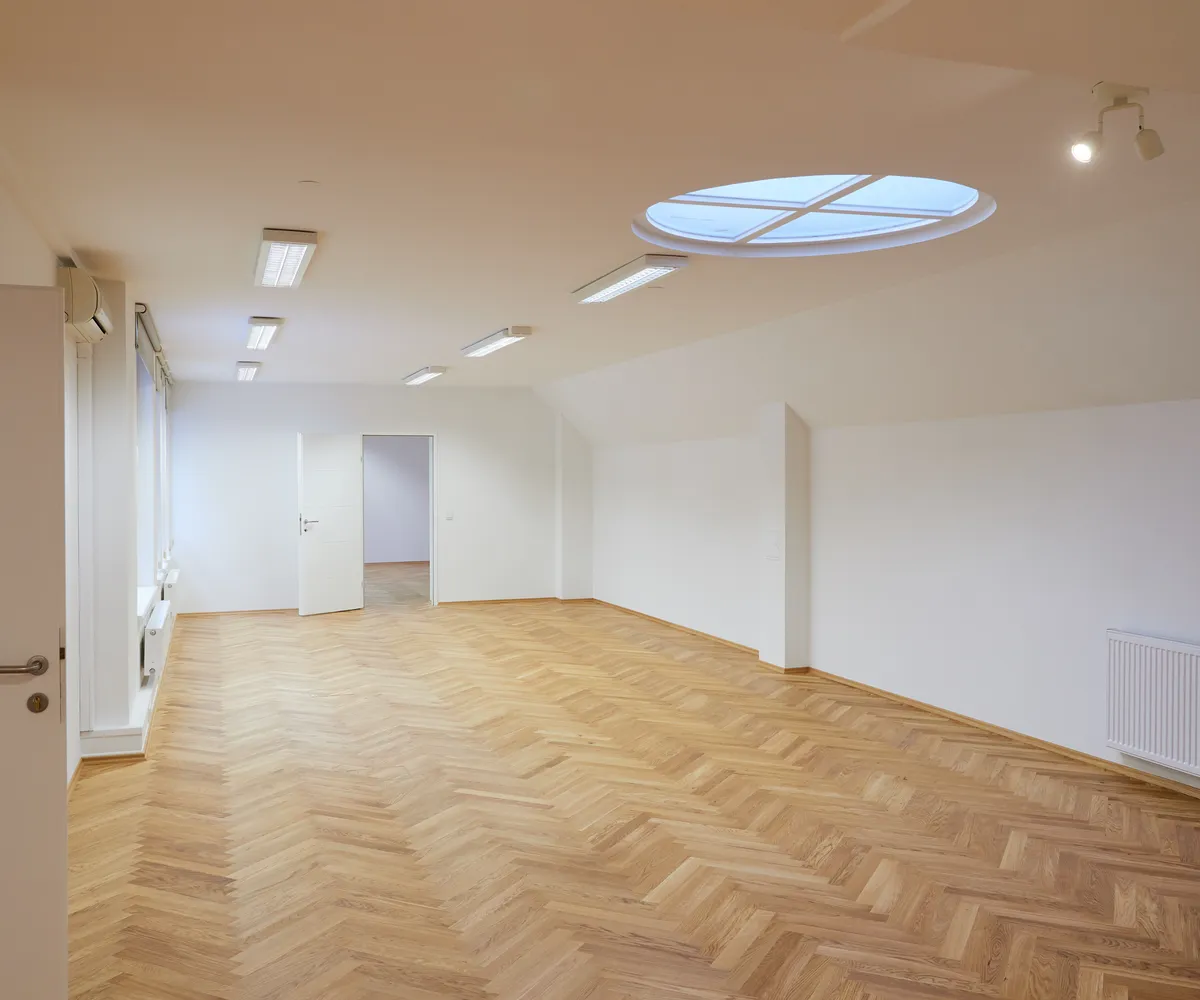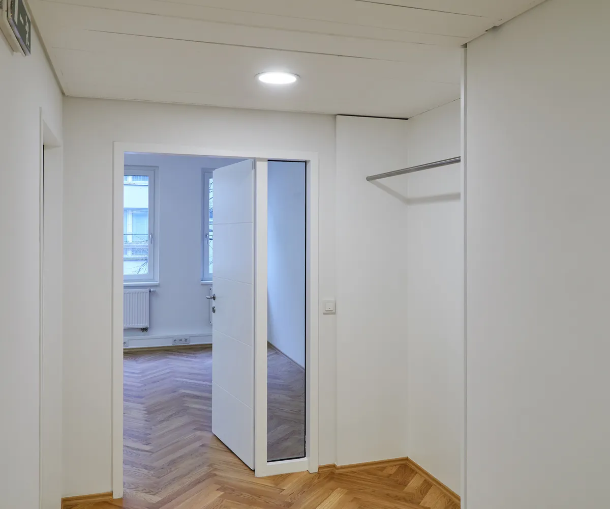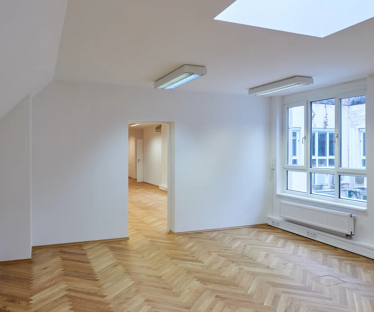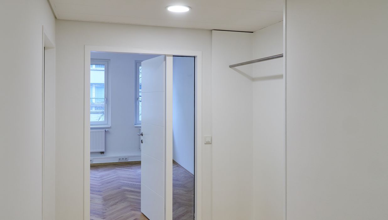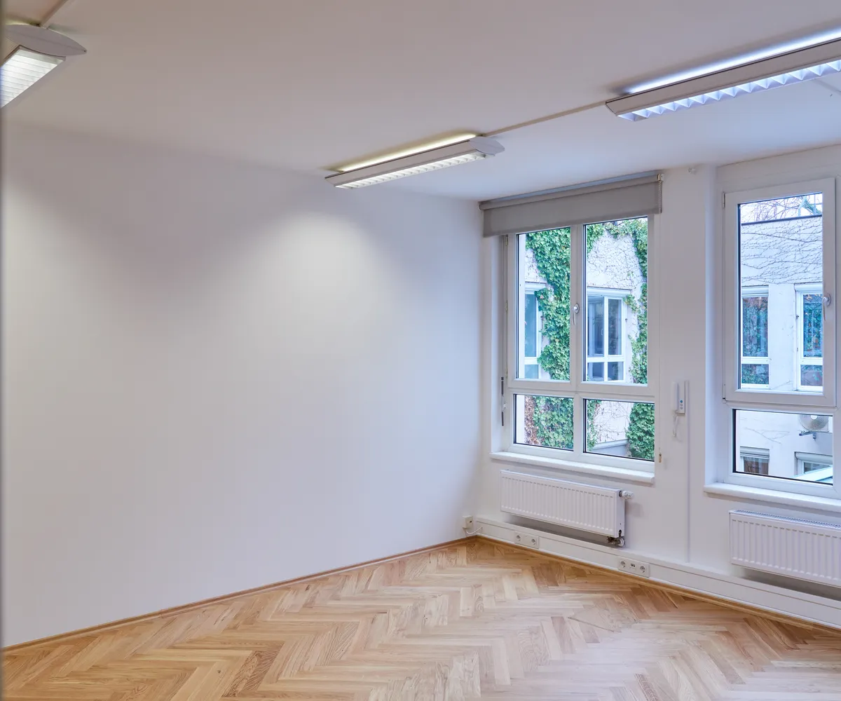 Die durchdachte Grundstruktur ermöglicht eine individuelle Anpassung an unterschiedliche Nutzungskonzepte – von klassischen Einzel- oder Doppelbüros bis hin zu strukturierten Praxisräumlichkeiten oder offenen Arbeitsbereichen.