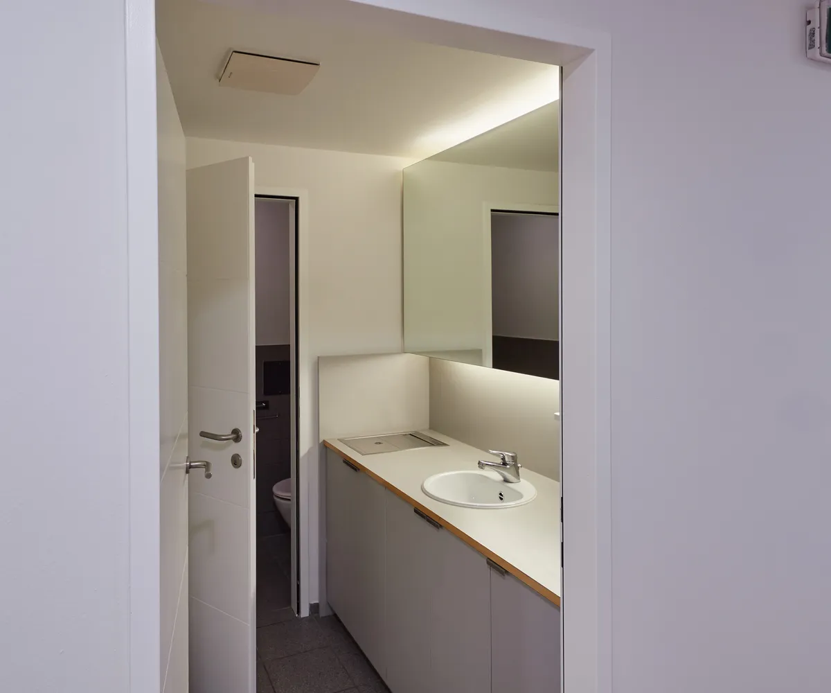 Die hellen und freundlich gestalteten Räume schaffen ein professionelles Arbeitsumfeld mit hoher Aufenthaltsqualität für Mitarbeiter und Kunden.