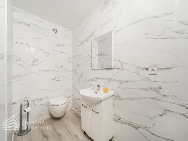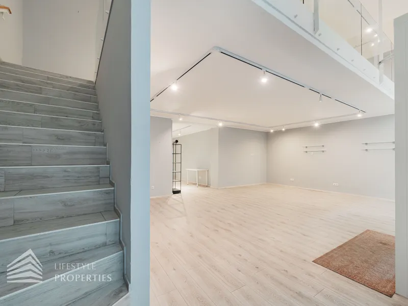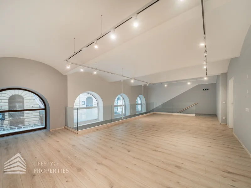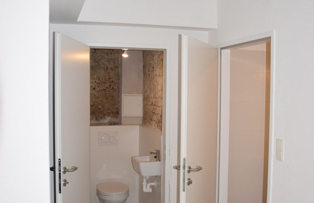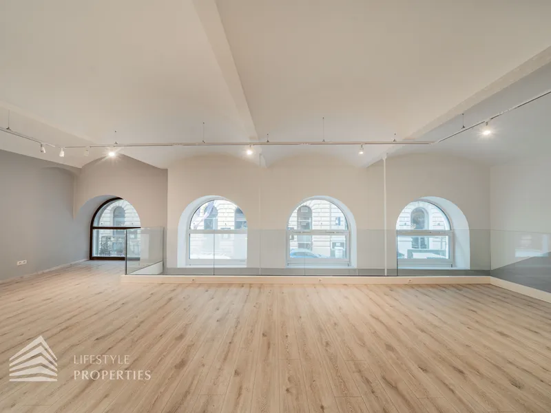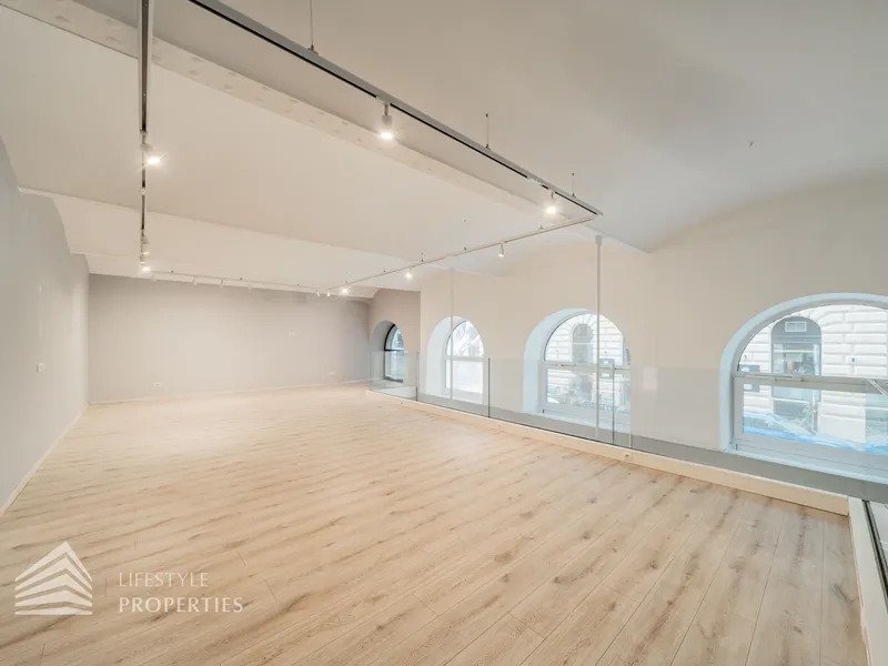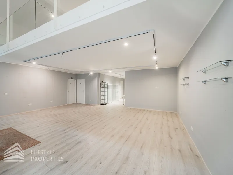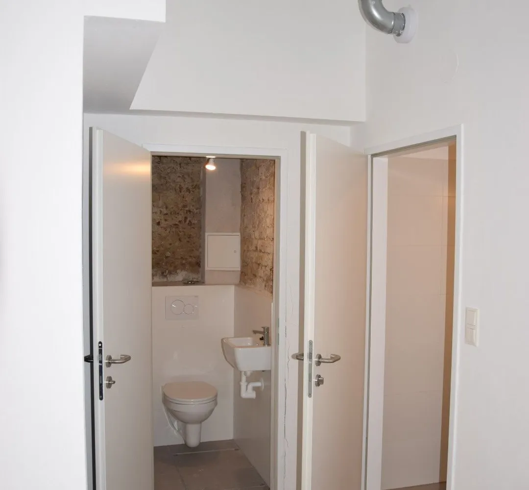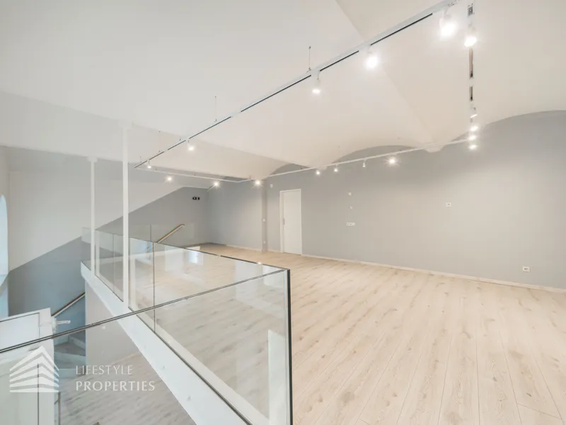 Durch die hohen Fensterfronten wird das Objekt auch mit Tageslicht versorgt und zusätzlich mit moderner Deckenbeleuchtung. Die Böden sind mit Estrich versehen, sodass jede Art von Bodenbelag möglich ist. Die moderne Belüftungsanlage mit Wärmetauscher sorgt für ein angenehmes Klima und wird durch eine Gasetagenheizung unterstützt. Bei der Sanierung wurden auch für eine Kitchenette die Anschlüsse installiert sowie ein Duschbad und ein separates WC bereits vorhanden sind.