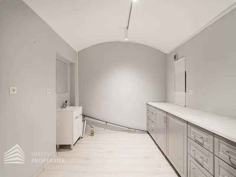Vom Strassenniveau aus sind über ein paar Stufen die offen gehaltenen Räumlichkeiten, die durch das Gewölbe und den Ziegelsockel den Charakter des Altbaus unterstreichen, zu erreichen. Ein weitere Zugang ist über den Hauseingang und dem Untergeschoss vorhanden.