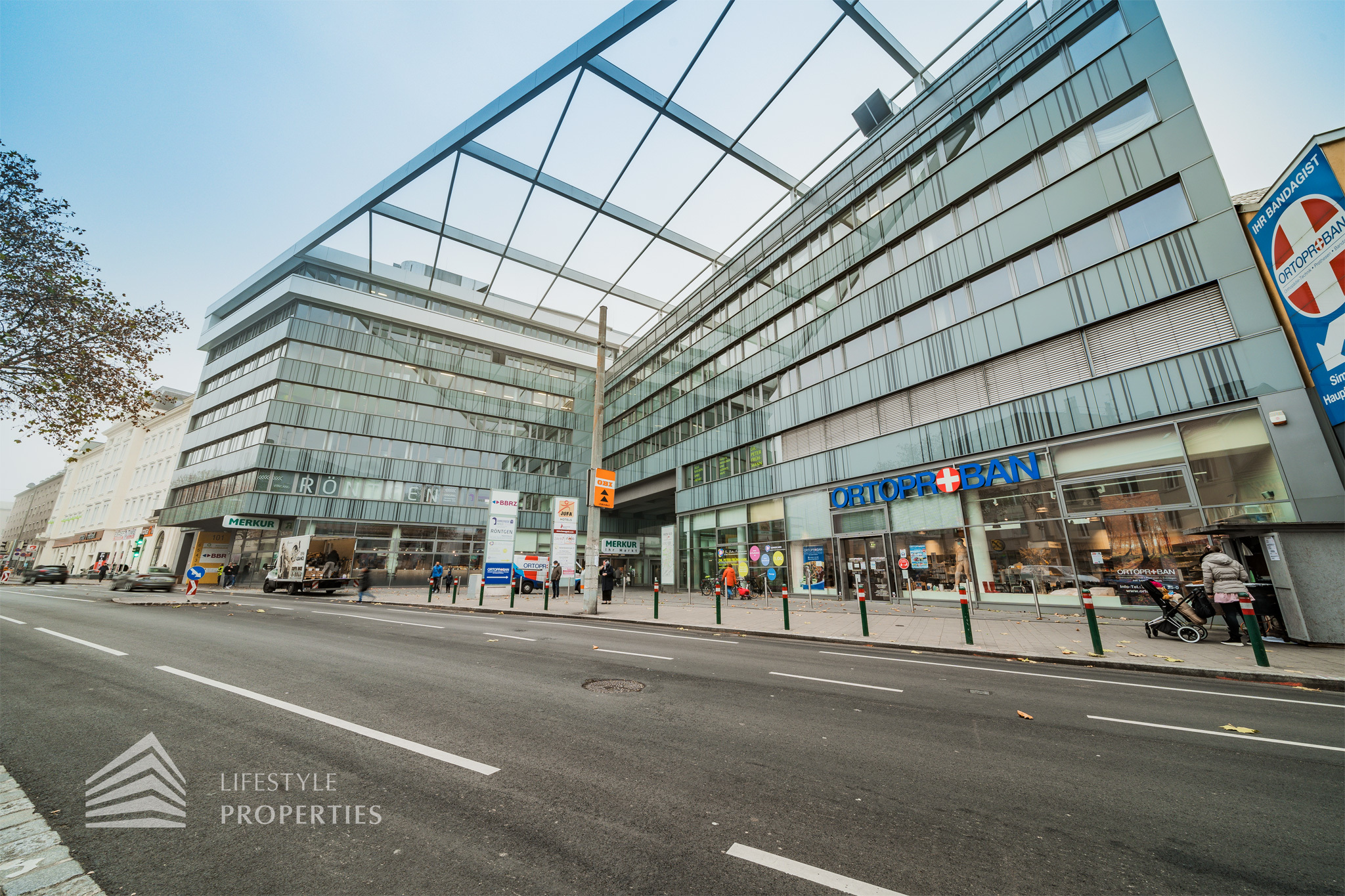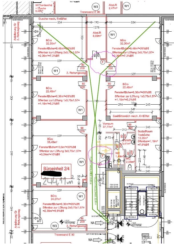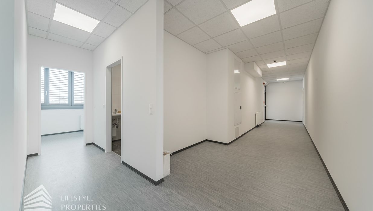 Die moderne Bürofläche befindet sich im 3. Stockwerk eines Neubaugebäudes und verfügt über ca. 244,11 m². Bei der Ausstattung wird auf moderne Technik und großem Komfort viel Wert gelegt. Dies beinhaltet zum Beispiel die unsichtbare Verkabelung im Boden sowie die Möglichkeit die Räume individuell zu klimatisieren. Sie können anhand der ersten sechs Fotos sehen, in welchem Stil das Objekt gestaltet wird (dabei handelt es sich um eine andere Bürofläche im selben Haus). Die Immobilie besticht durch die ideale Lage und Anbindung an den öffentlichen Verkehr.