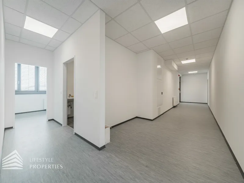 Die Gewerbeeinheit bietet eine klare, funktionale Gliederung mit vielseitigen Nutzungsmöglichkeiten und insgesamt 5 separat begehbaren Zimmern :