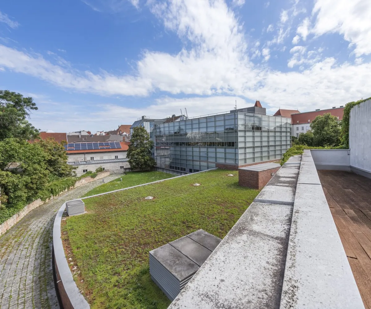 Die zentrale Lage beim Stadt- und Akademiepark und direkt neben der Fußgängerzone sowie die Vielfältigkeit der Liegenschaft selbst bietet optimale Arbeits- und Lebensbedingungen .