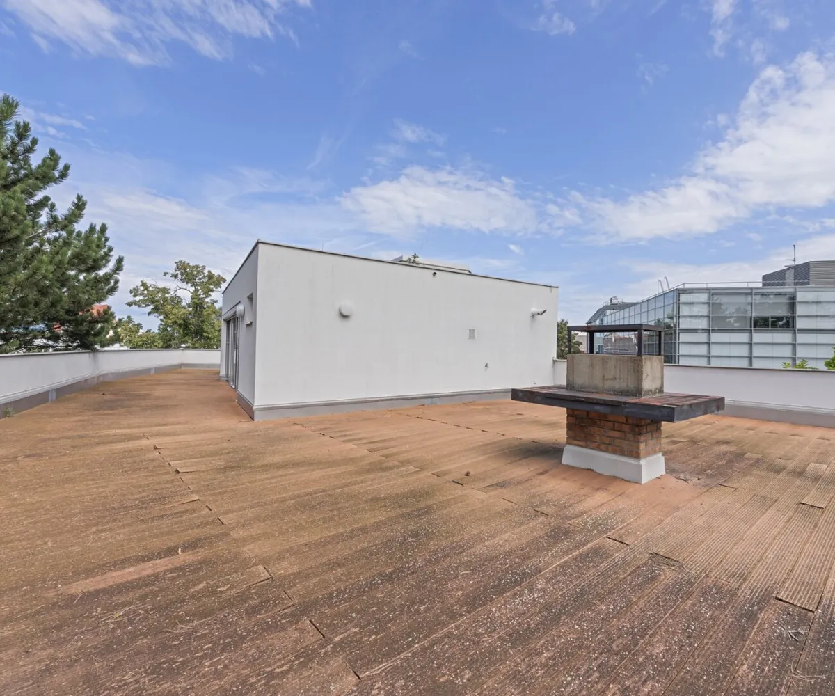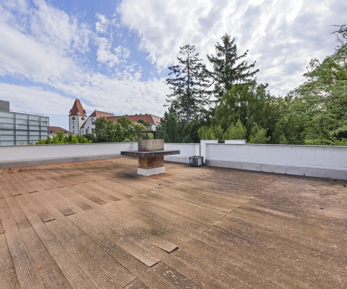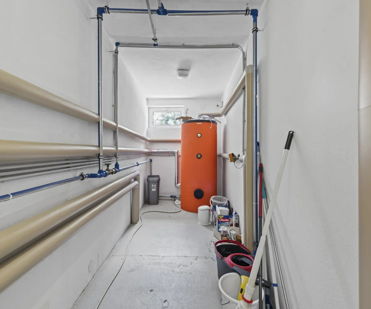 Im Dachgeschoß befindet sich der Heizraum , ein Badezimmer mit Dusche und Toilette, 3 Zimmer sowie der Ausgang auf die Traum-Terrasse mit Weitblick .