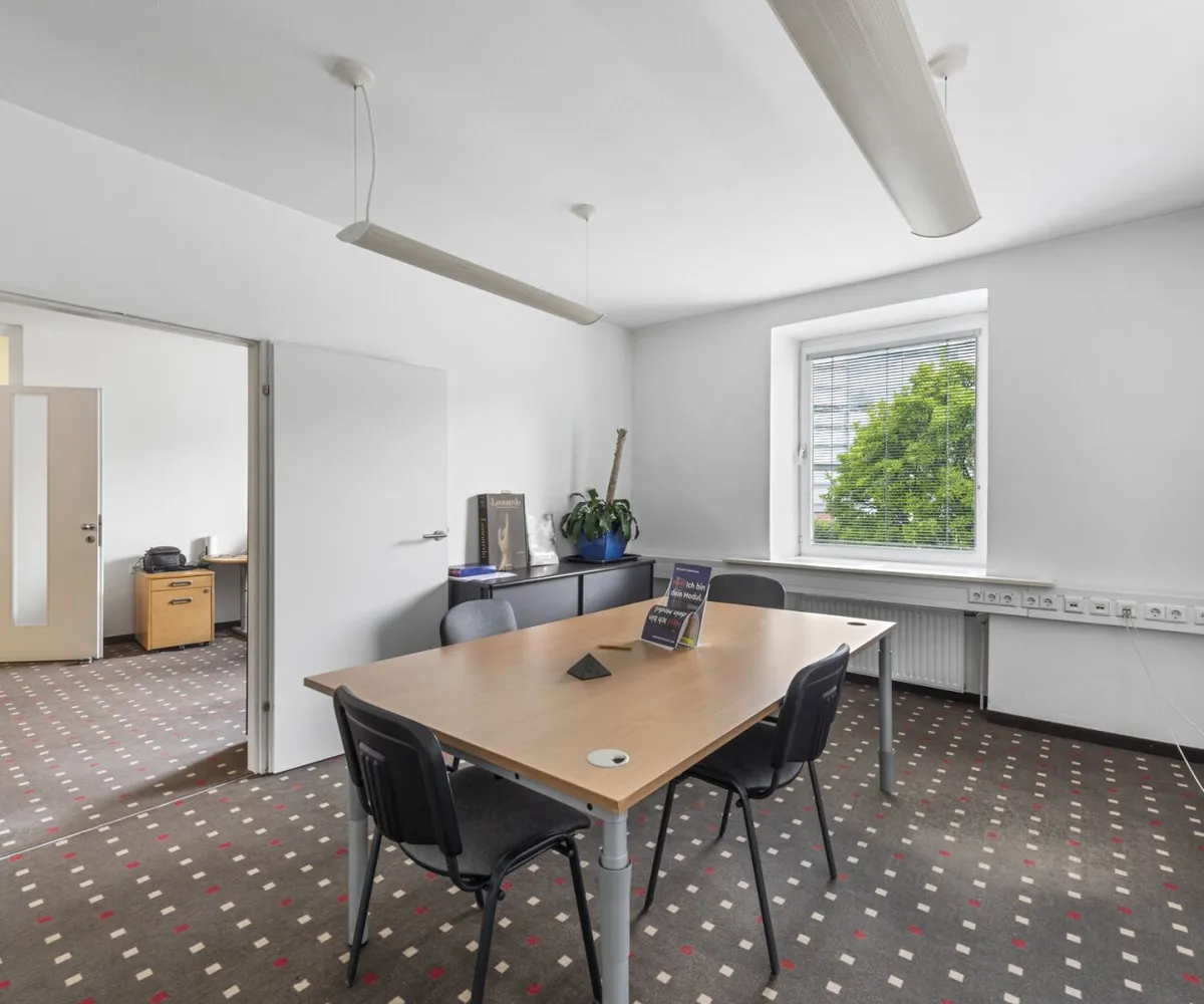 Über das Entrée im Erdgeschoß gelangt man zum Sekretariat , das zwei vollwertige Arbeitsplätze bietet, sowie zum Wartebereich und Serverraum . Des Weiteren bietet diese Ebene 2 Büros , ein Kunden-WC und 2 großzügige Besprechungsräume .