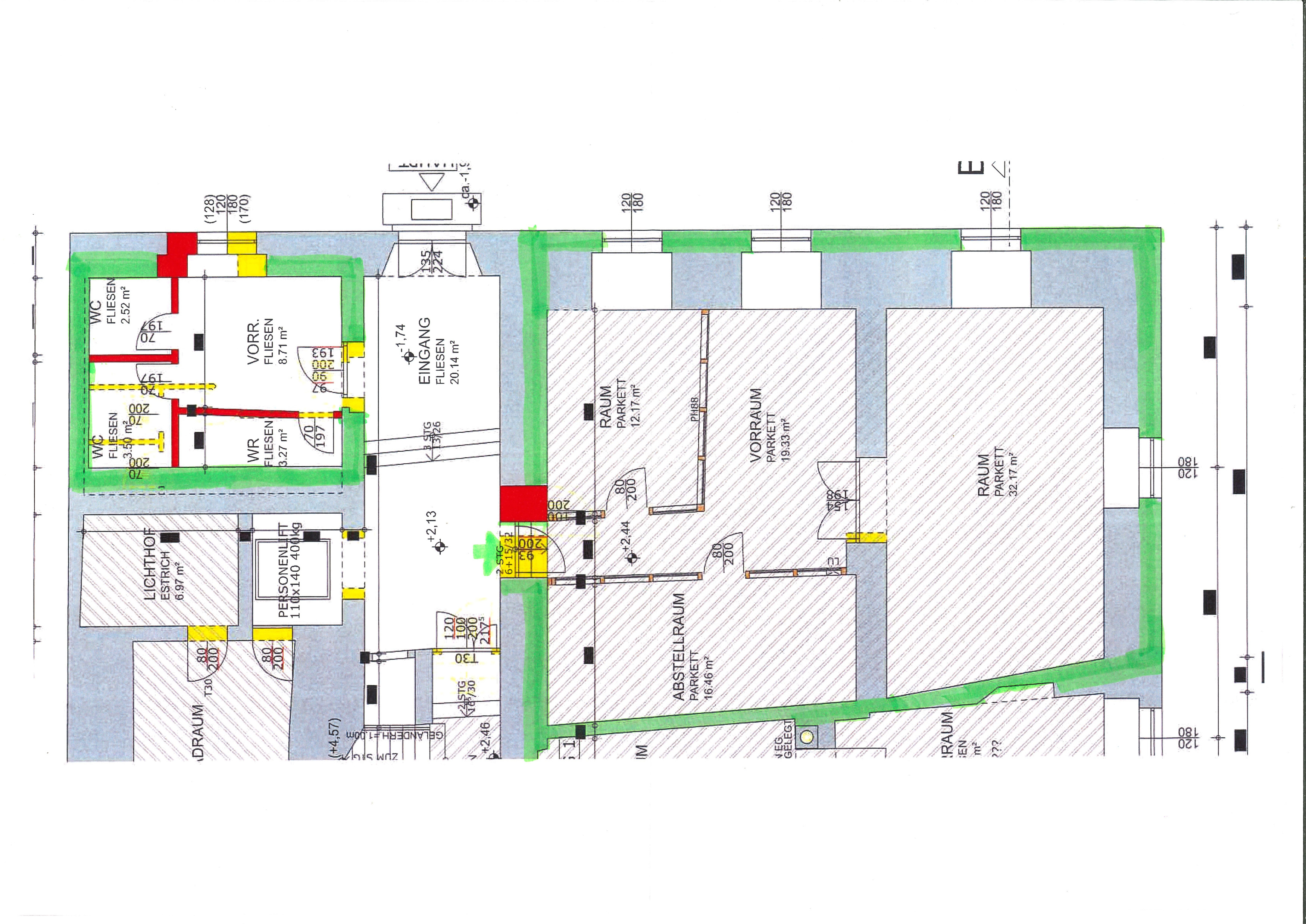 * Nebenräume für Büromieter getrennte WC für Damen und Herren und kl. Abstellraum mit ca. 18 m²