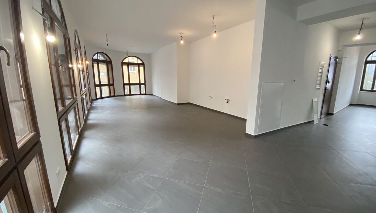 Auf ca. 133 m² (ca. 120 m² Hauptfläche / 13 m² Nebenräume) bietet dieses Objekt ideale Voraussetzungen für Konzepte, die eine starke visuelle Präsenz und hohe Passantenfrequenz voraussetzen. Die großzügigen Rundbogen-Schaufenster garantieren maximale Aufmerksamkeit im Ortskern.