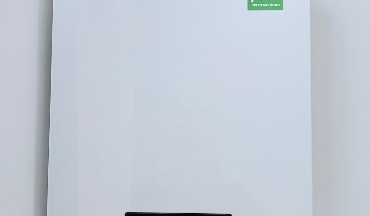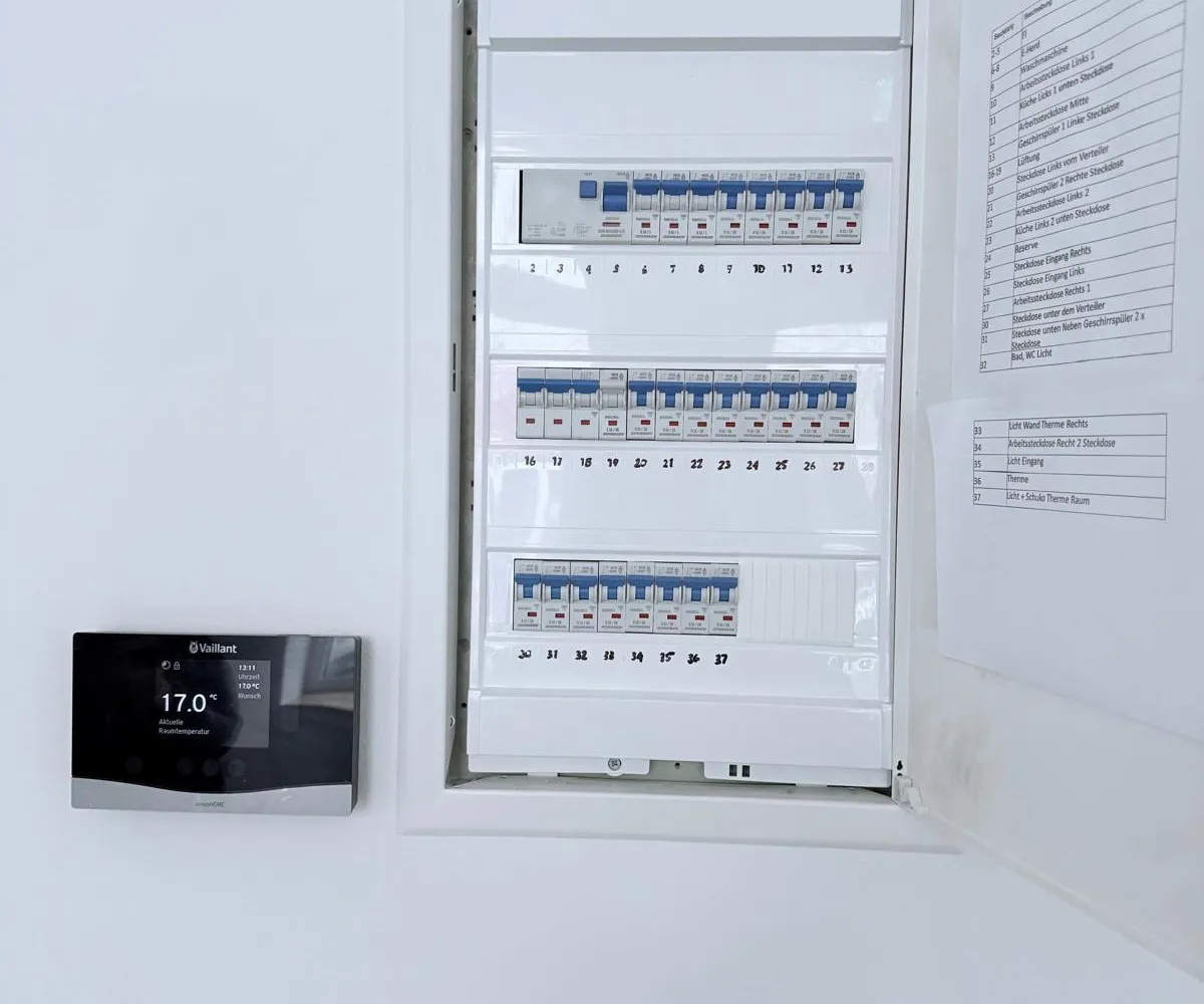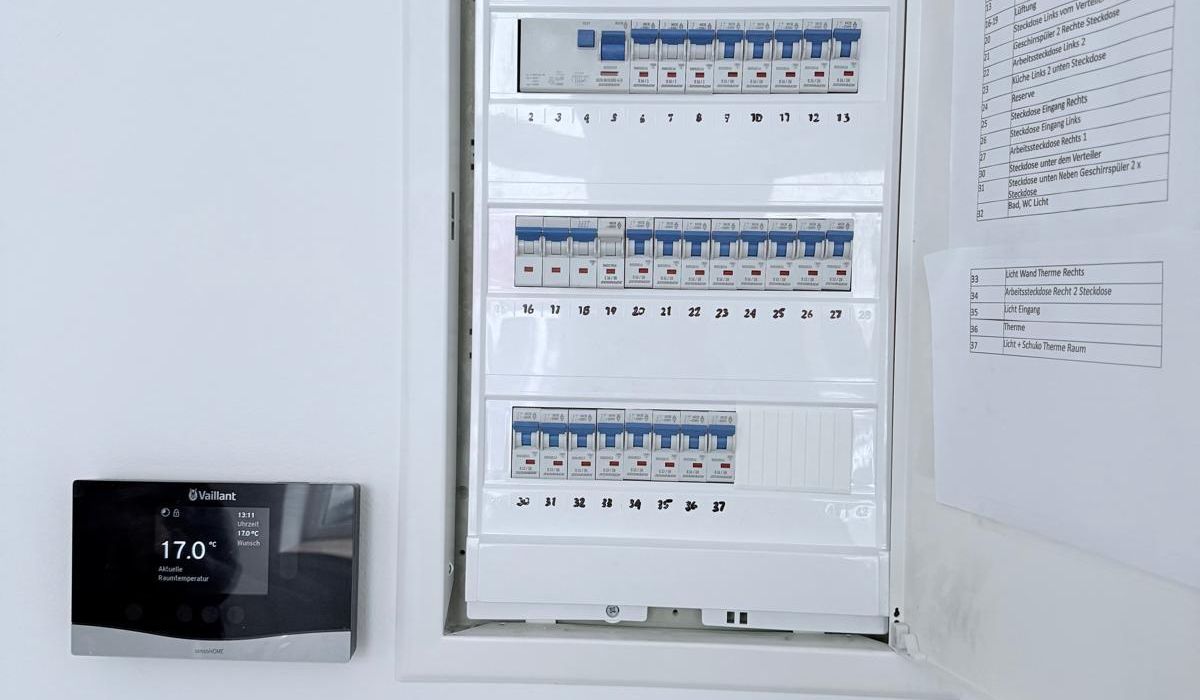 Beheizt wird es mittels einer Gasetagenheizung, und zwar durch eine kamingebundene Vaillant-Therme!