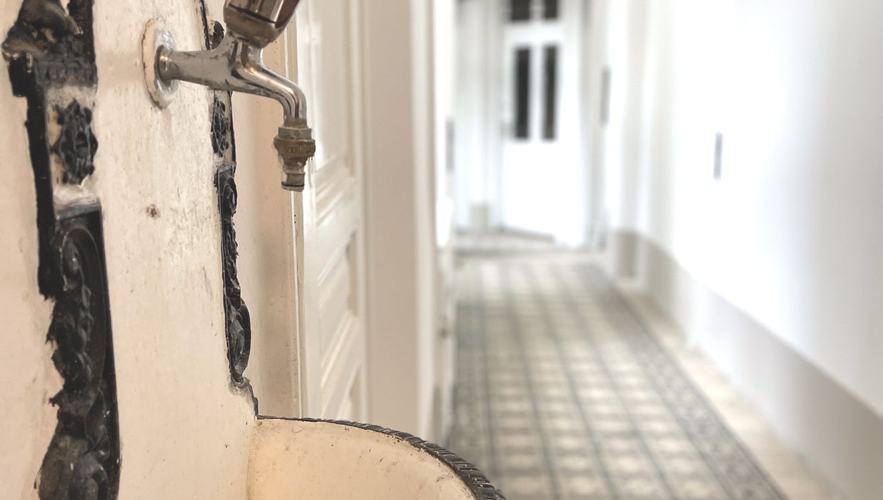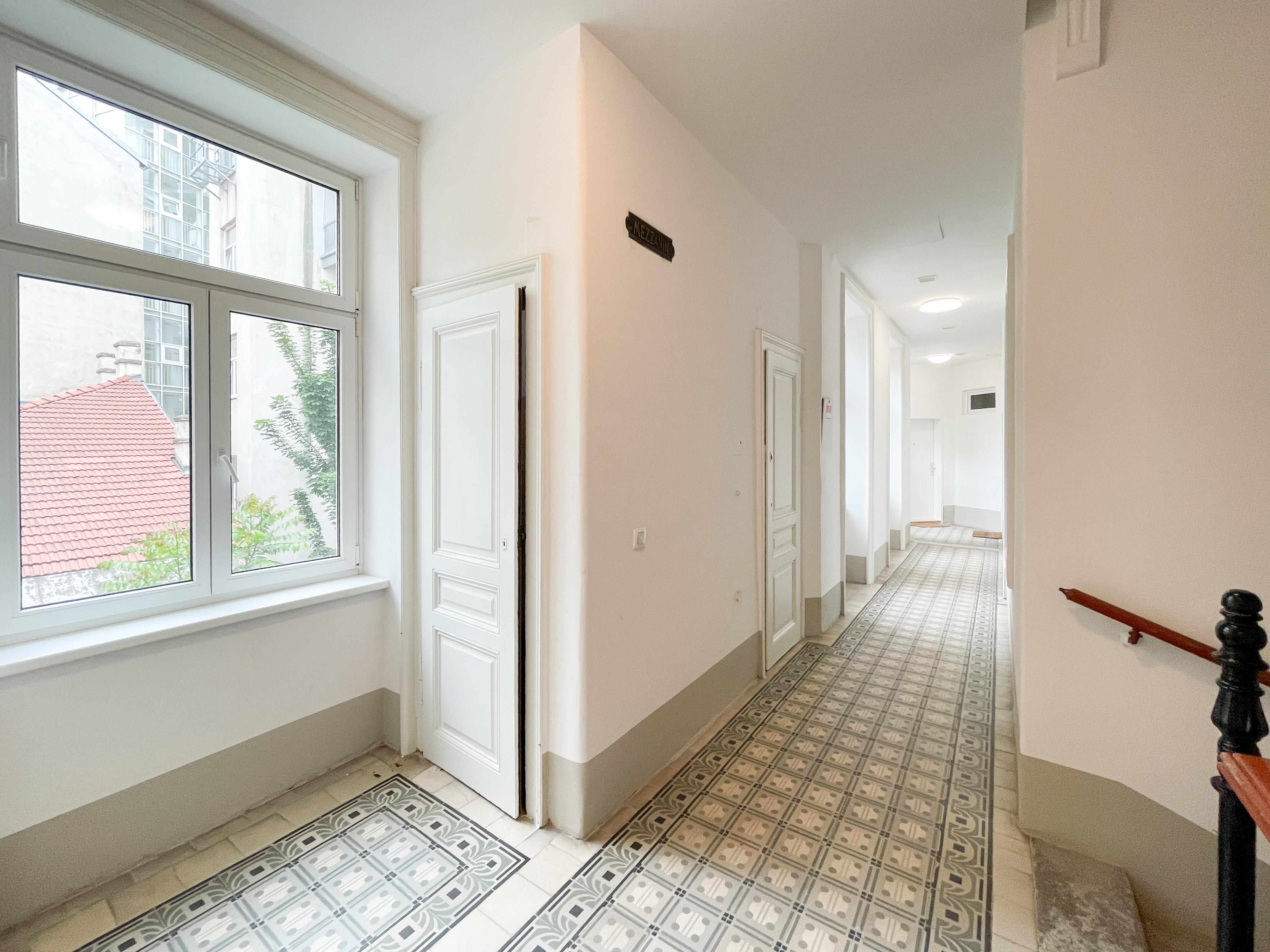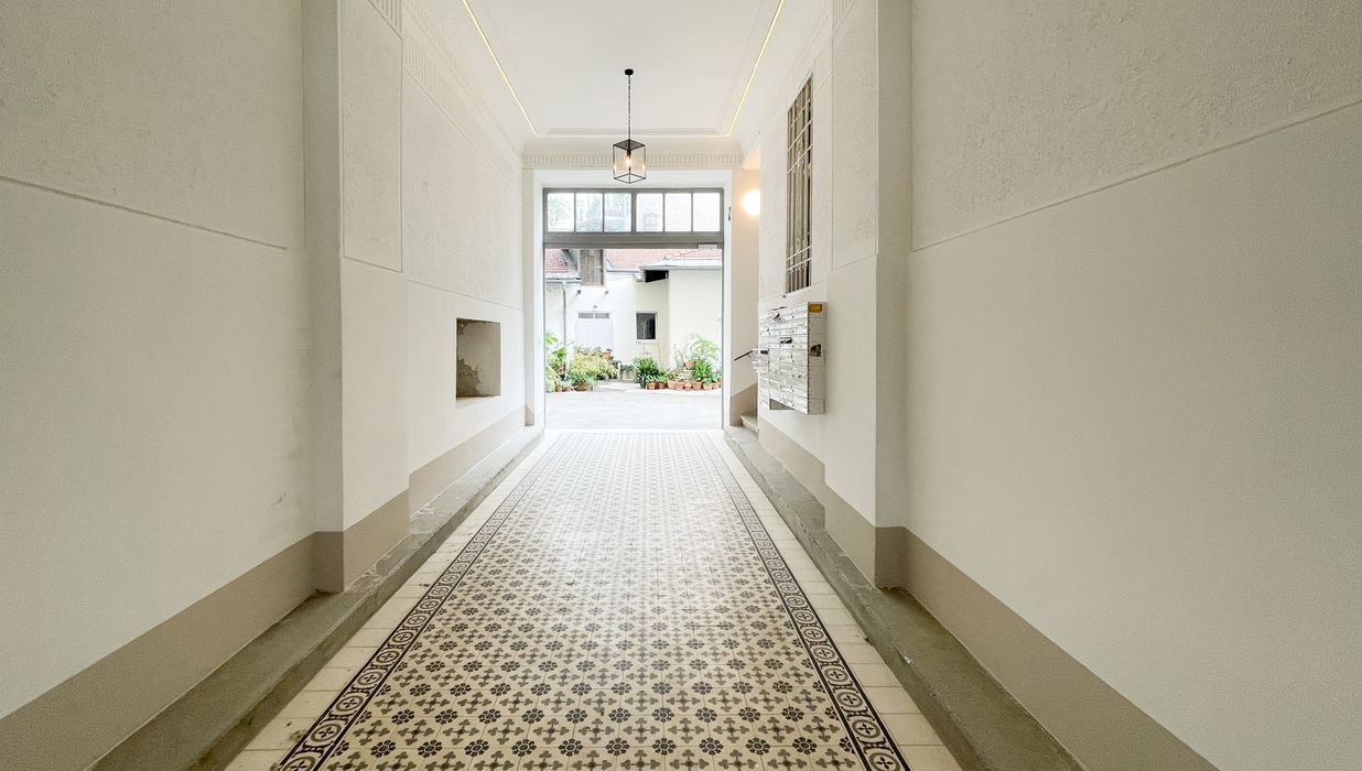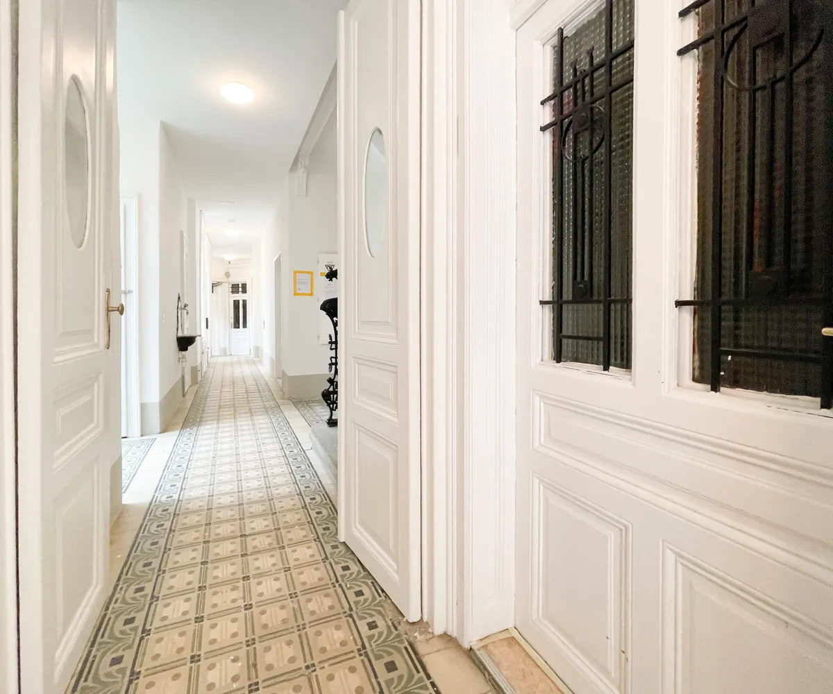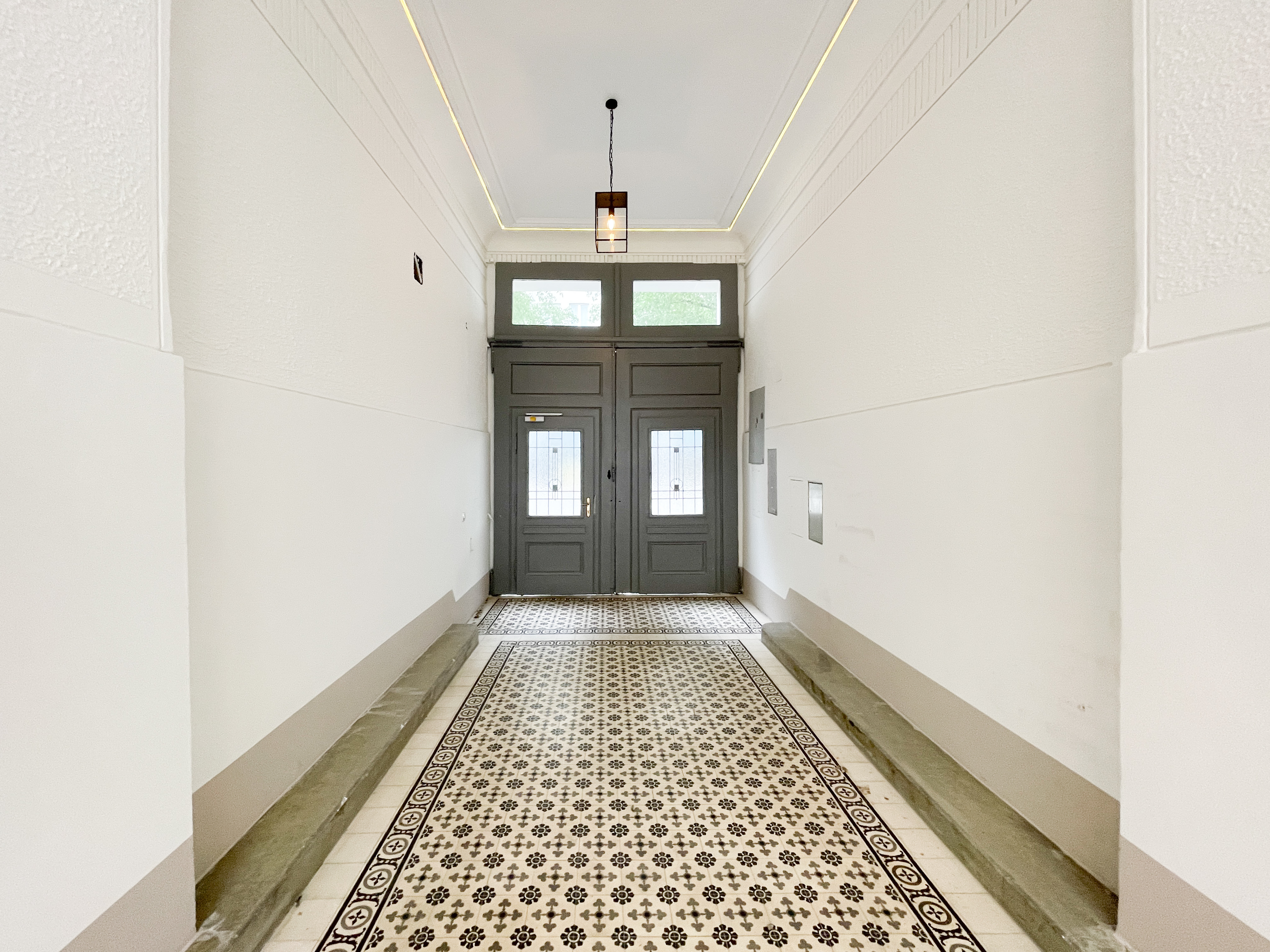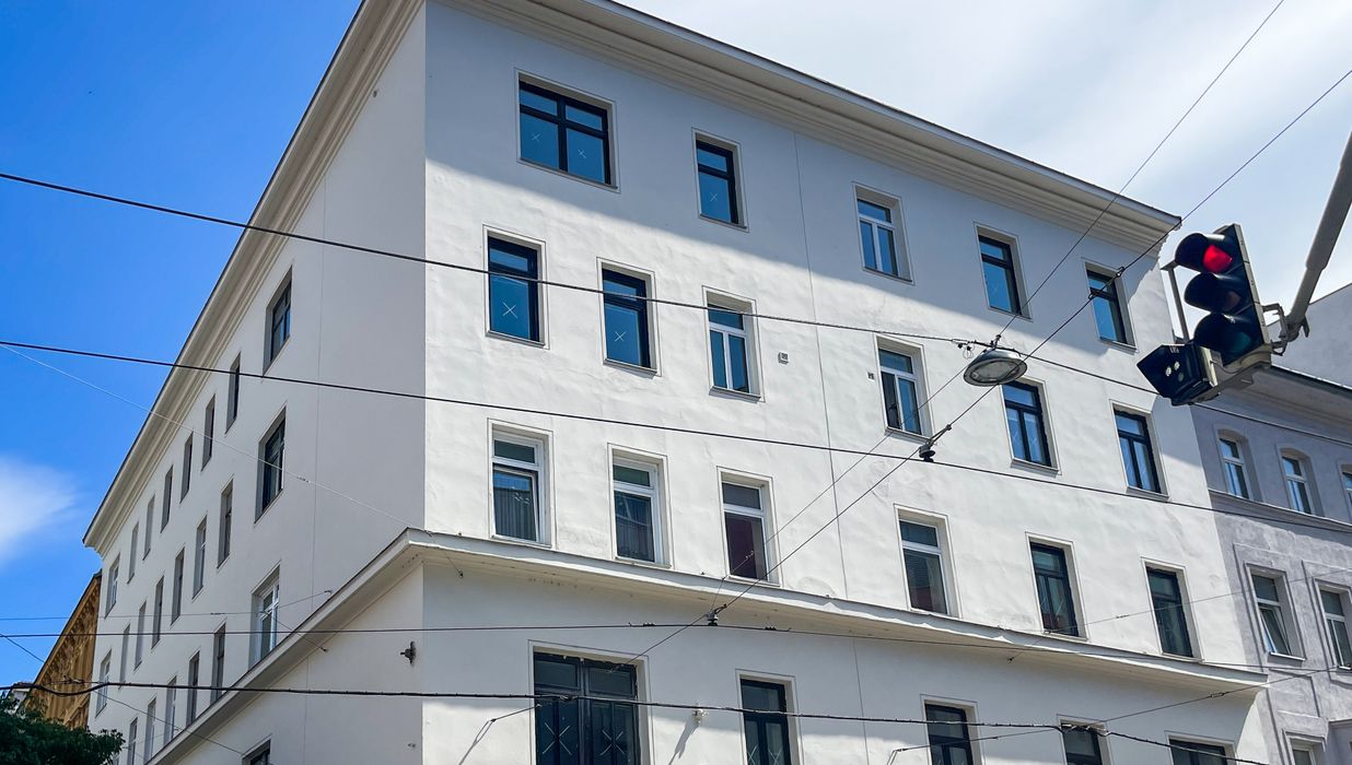 Das Gebäude selbst ist ein gepflegter Altbau, der kürzlich renoviert wurde und mit einer frisch gestalteten Fassade überzeugt.