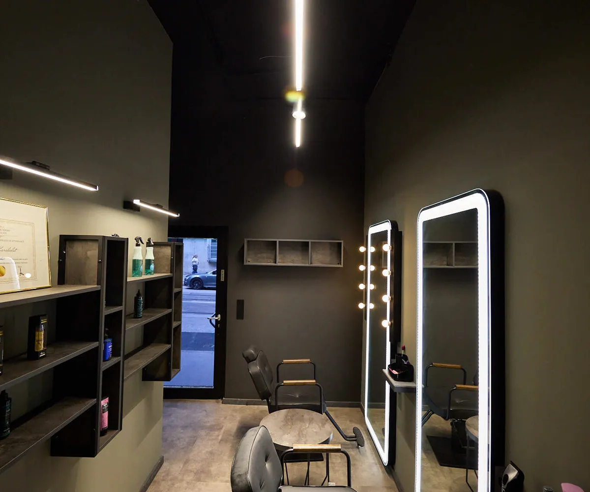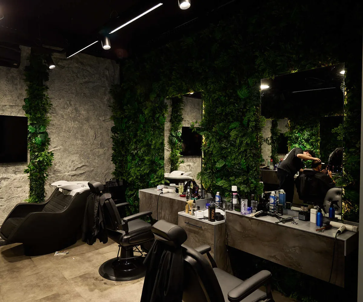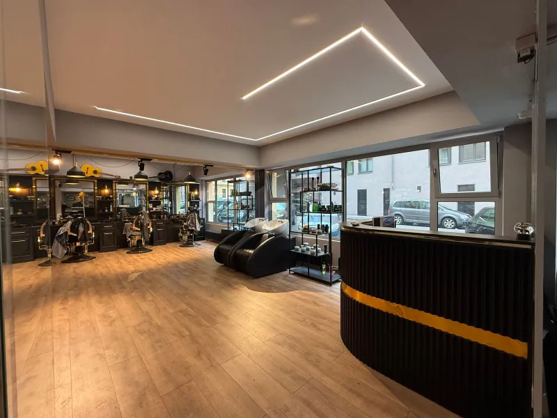 Das Geschäftslokal wird derzeit als moderner Barber Shop betrieben und wurde vor Kurzem umfassend und stilvoll renoviert. Das Interieur überzeugt durch ein zeitgemäßes Design mit Wohlfühlcharakter – inklusive integrierter Bar sowie einer kleinen Grünoase, die eine angenehme Atmosphäre für Kunden schafft.