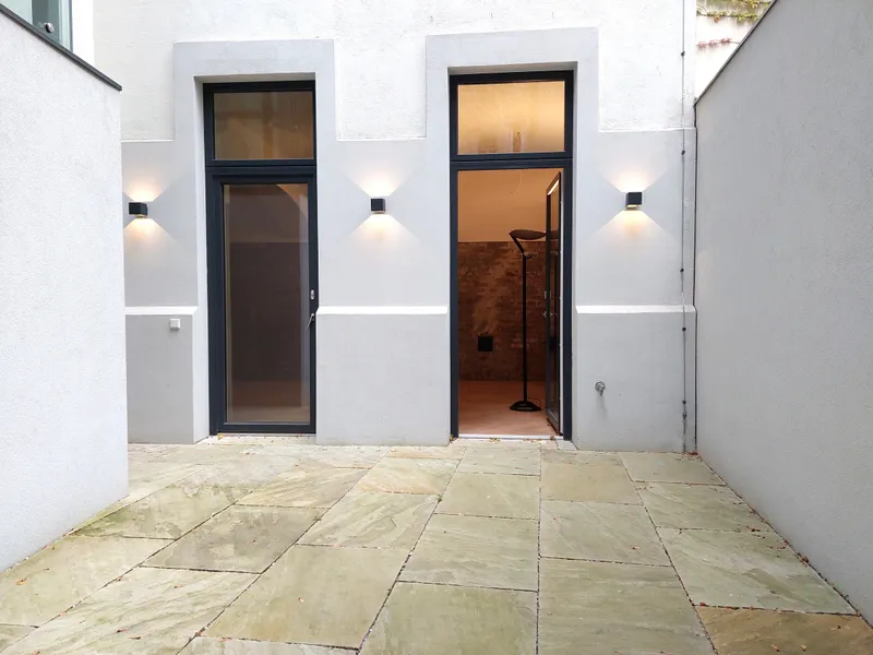 Das Atelier besitzt 2 Eingänge sowie einen Ausgang in den ca. 27 m² großen Innenhof.