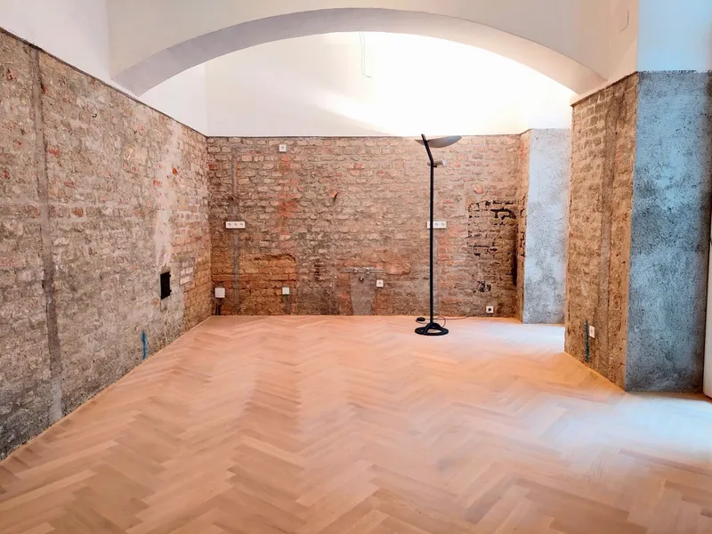 Das Atelier wurde von Grund auf saniert. Die moderne Ausstattung, aber auch die Optik des Ateliers, mit den frei gelegten Ziegelwänden und der Gewölbedecke, verleihen diesem einen ganz besonderen Charme.
