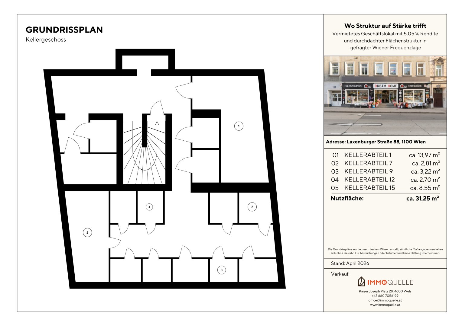 Das Objekt ist derzeit bis zum 31.07.2033 befristet vermietet und erwirtschaftet eine jährliche Rendite von ca. 5,05 %. Damit bietet sich eine solide Einstiegsmöglichkeit in den Wiener Gewerbeimmobilienmarkt mit laufenden Einnahmen und überschaubarem Risiko.