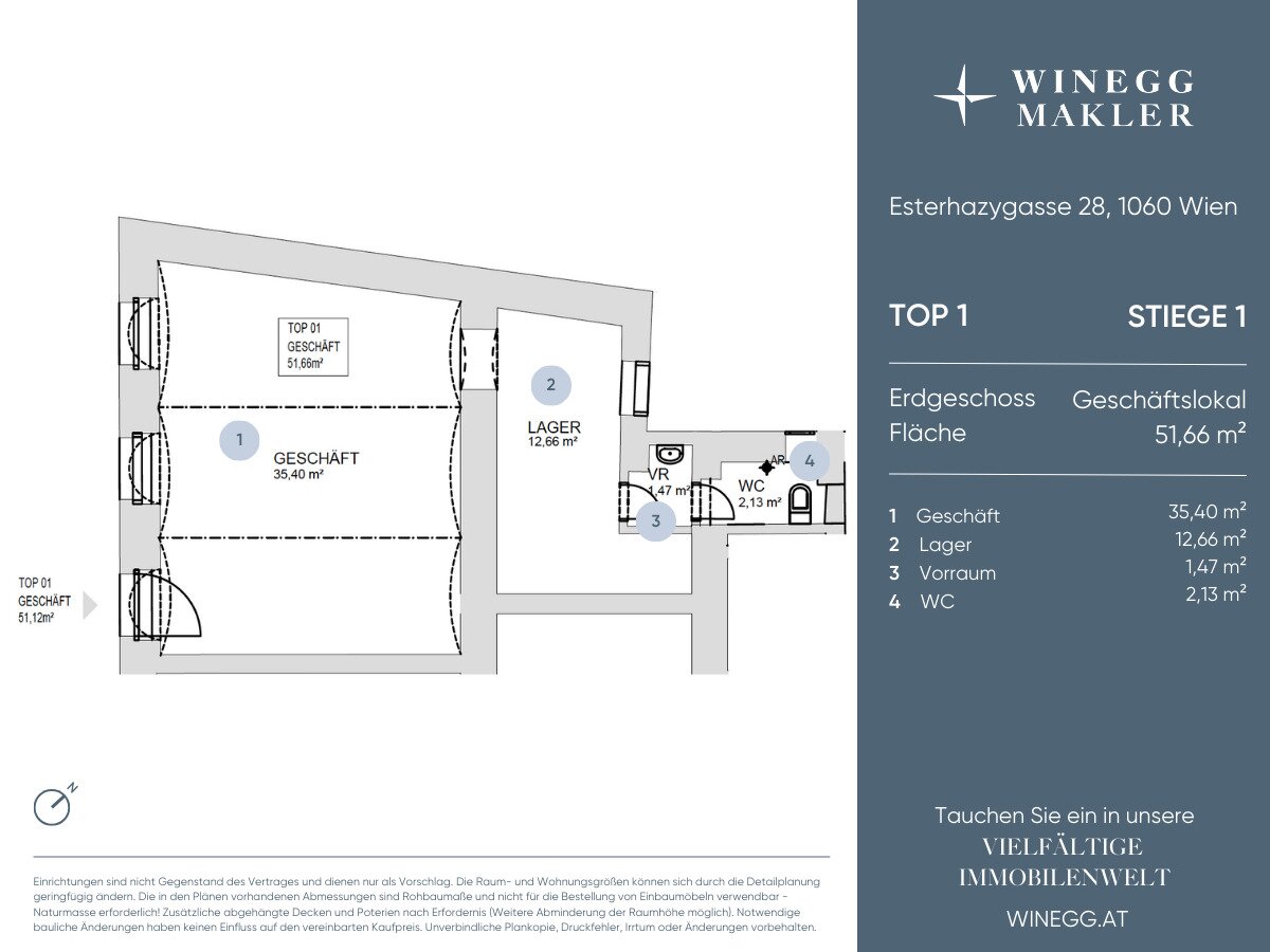 Das bis Mai 2024 vermietete Geschäftslokal (Frisörsalon) befindet sich im Erdgeschoß und verfügt über eine Nutzfläche von ca. 51,66 m².